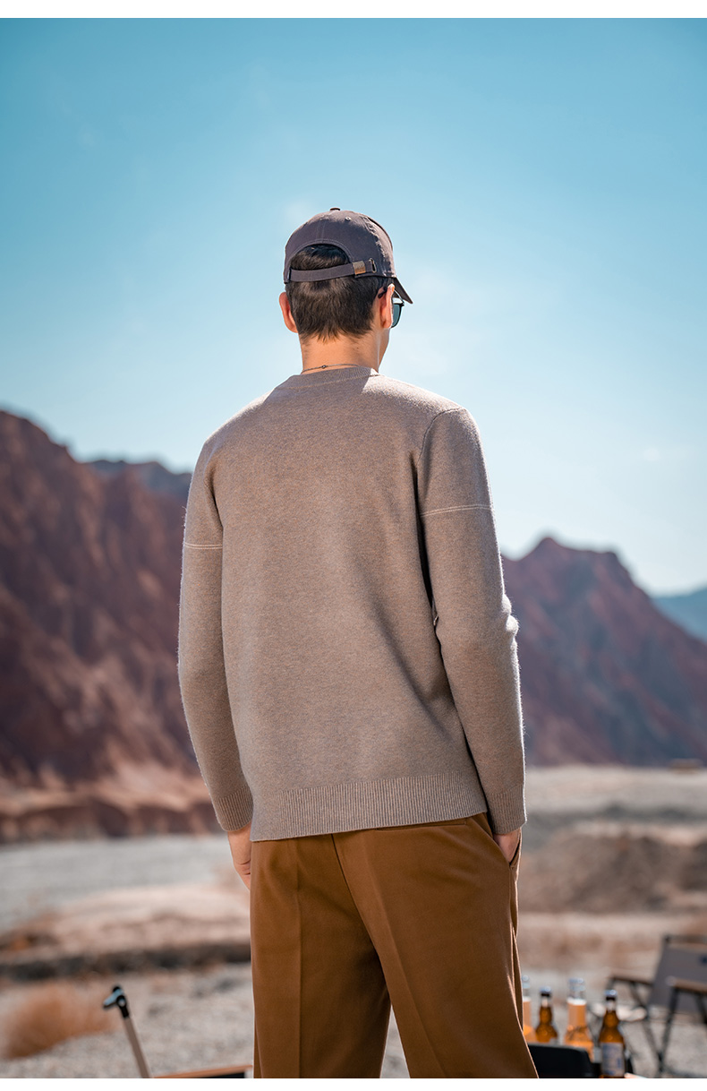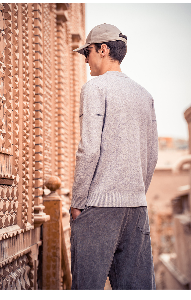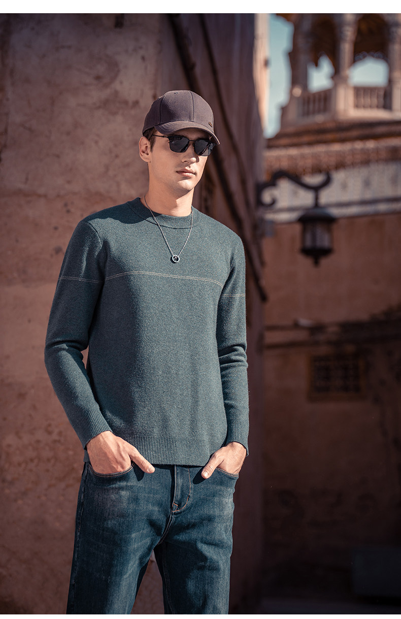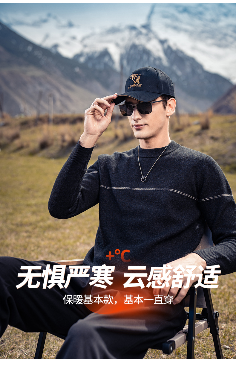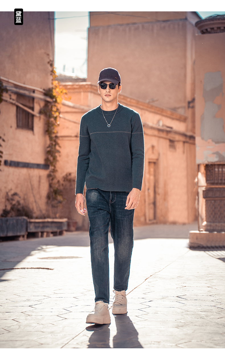 英爵倫 高級感線條提花 男士針織衫秋冬季毛衣青年線衣內搭打底衫