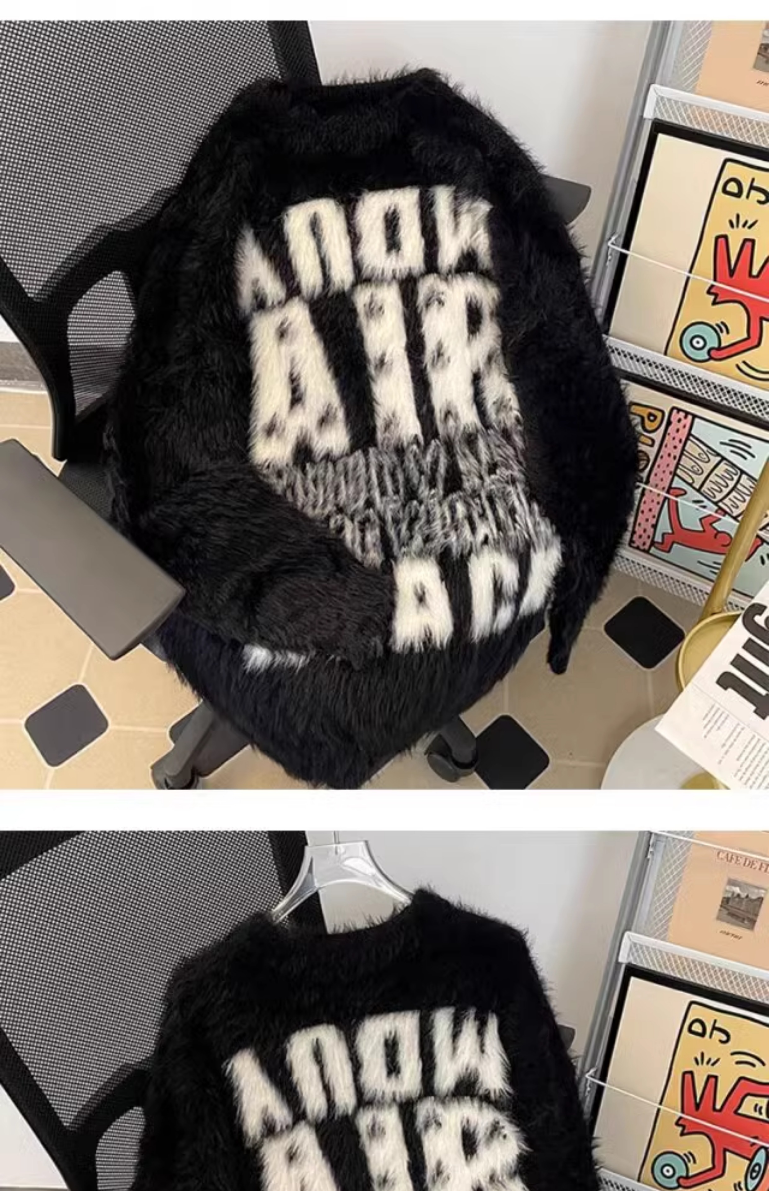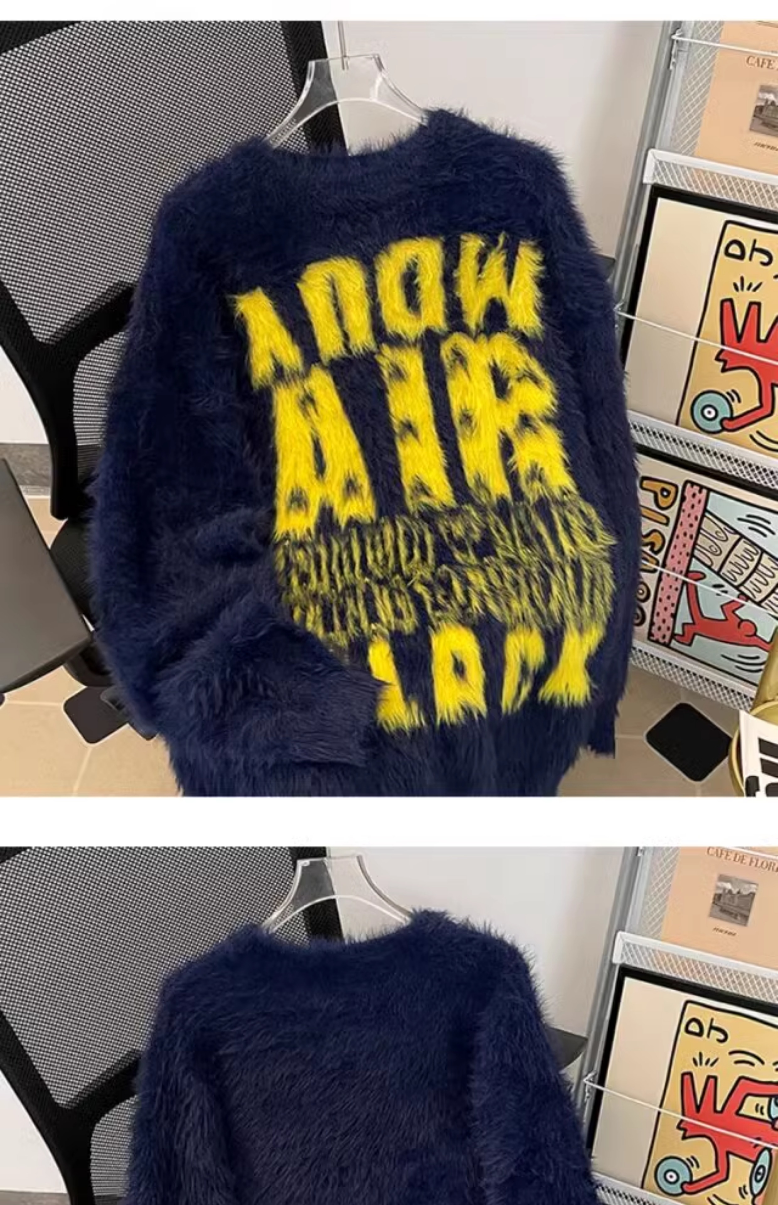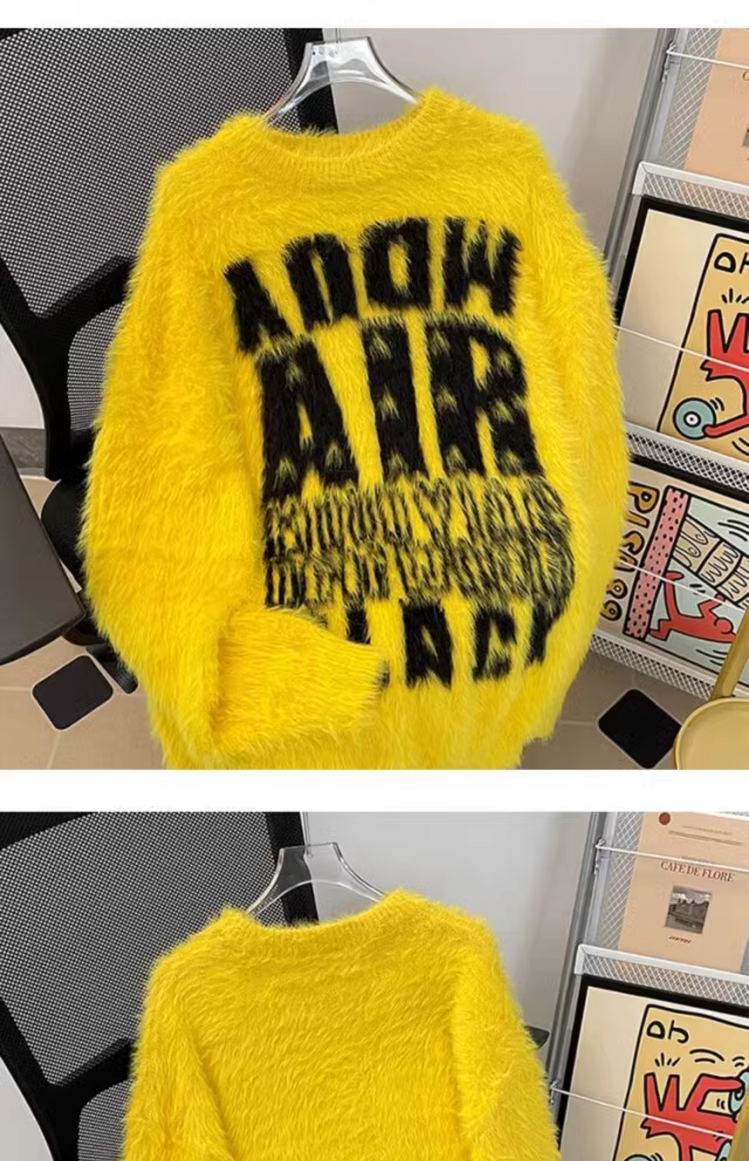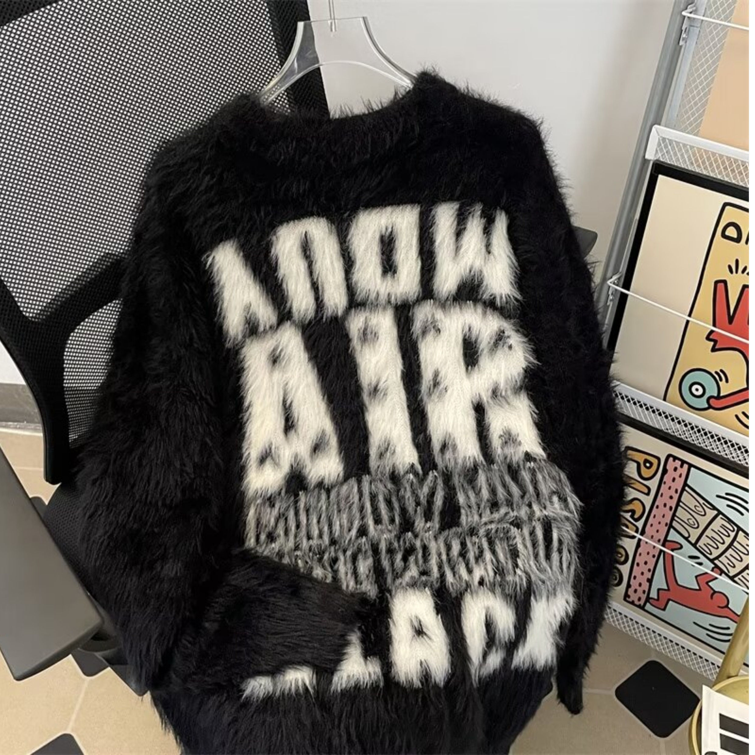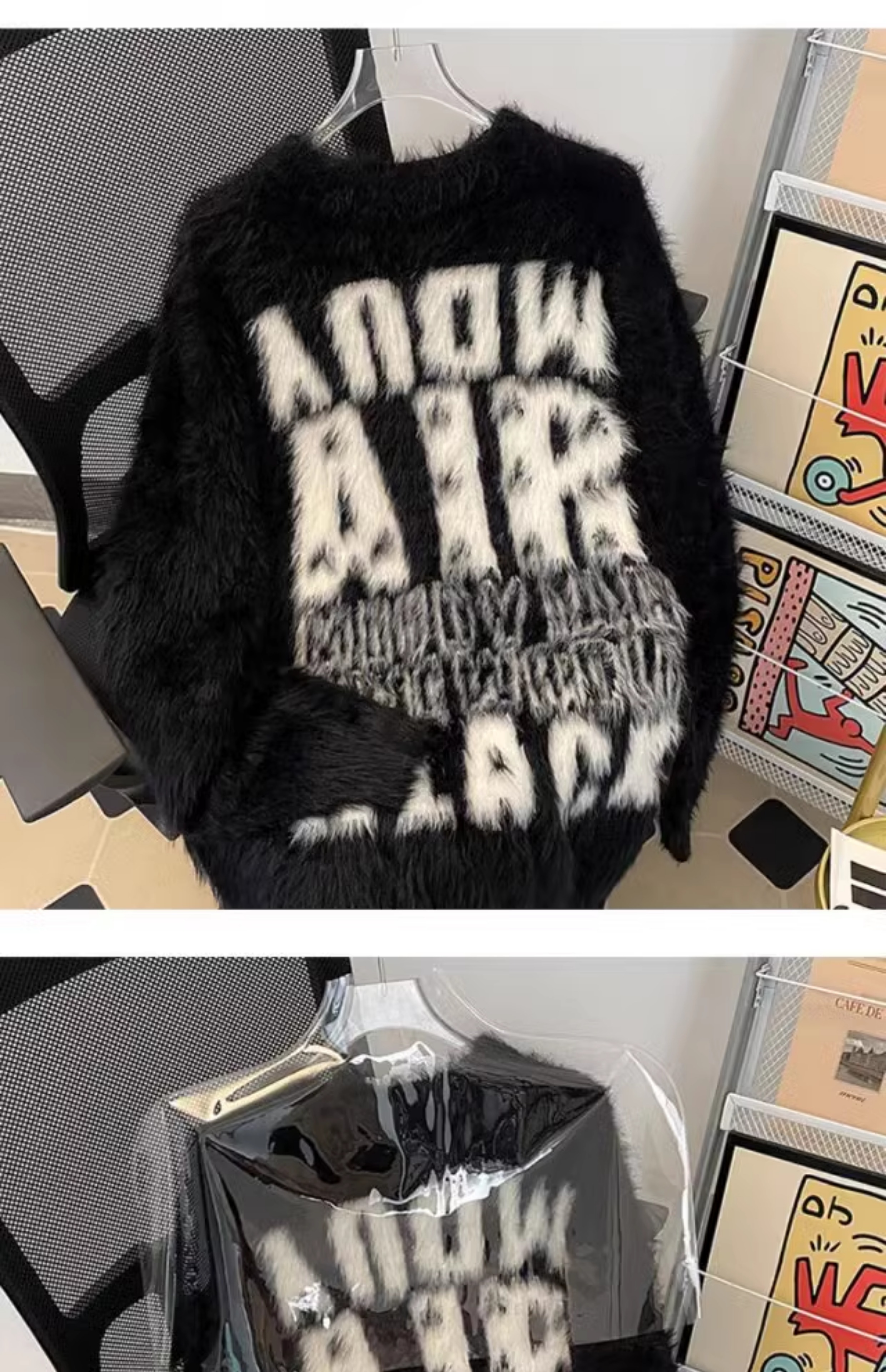 美式字母提花水貂絨毛衣男女寬松圓領學院風情侶潮牌針織打底衫