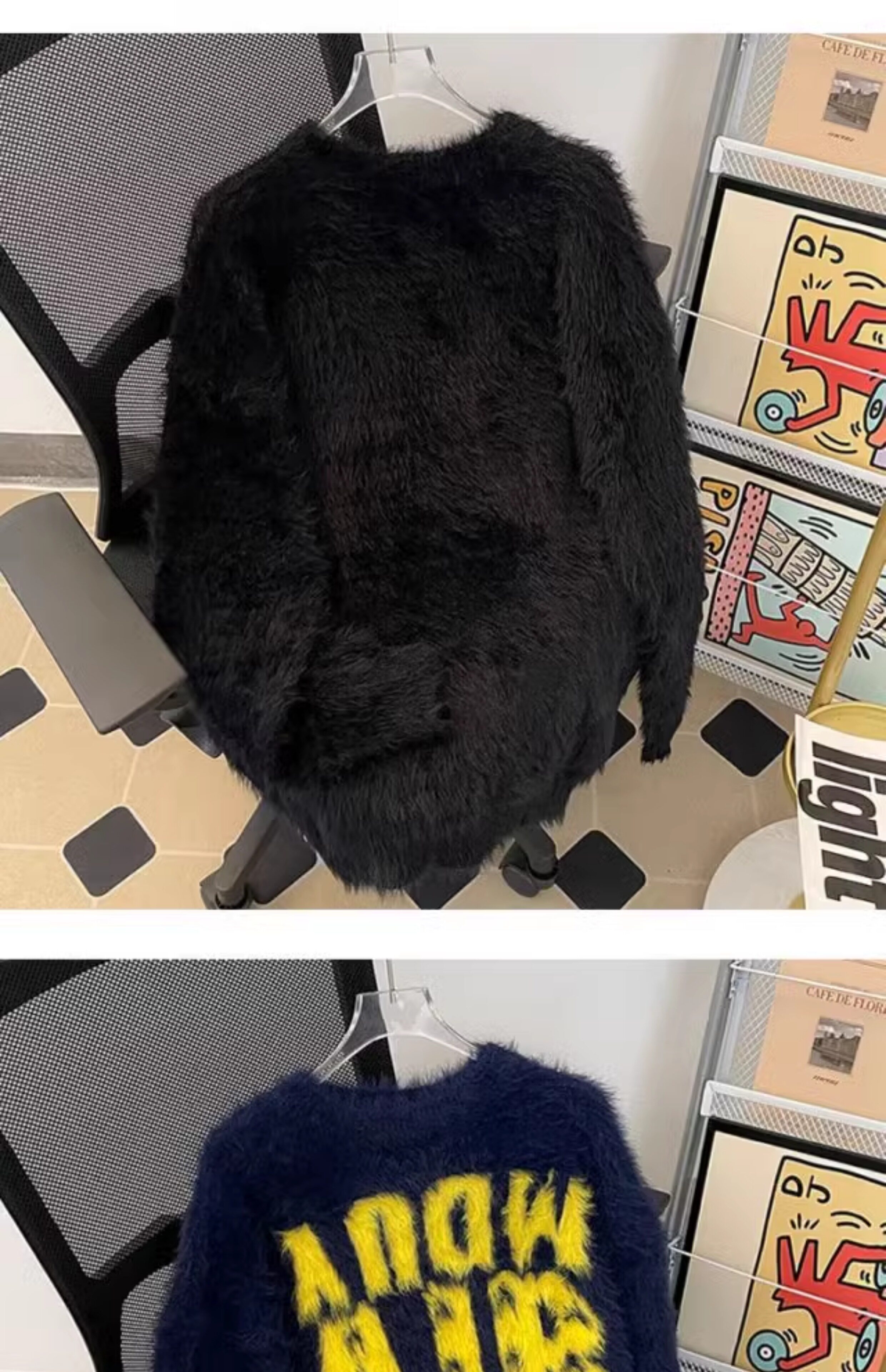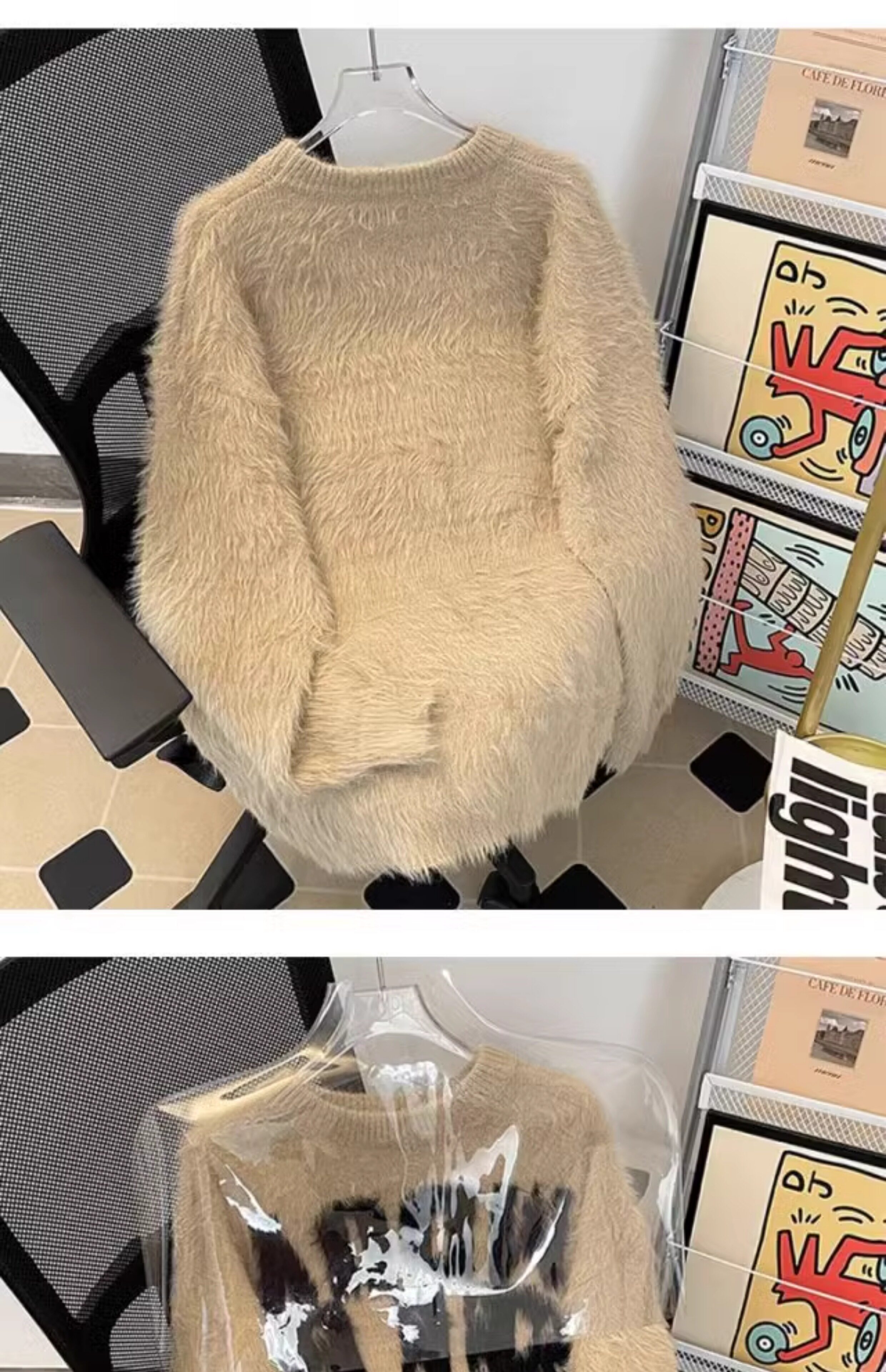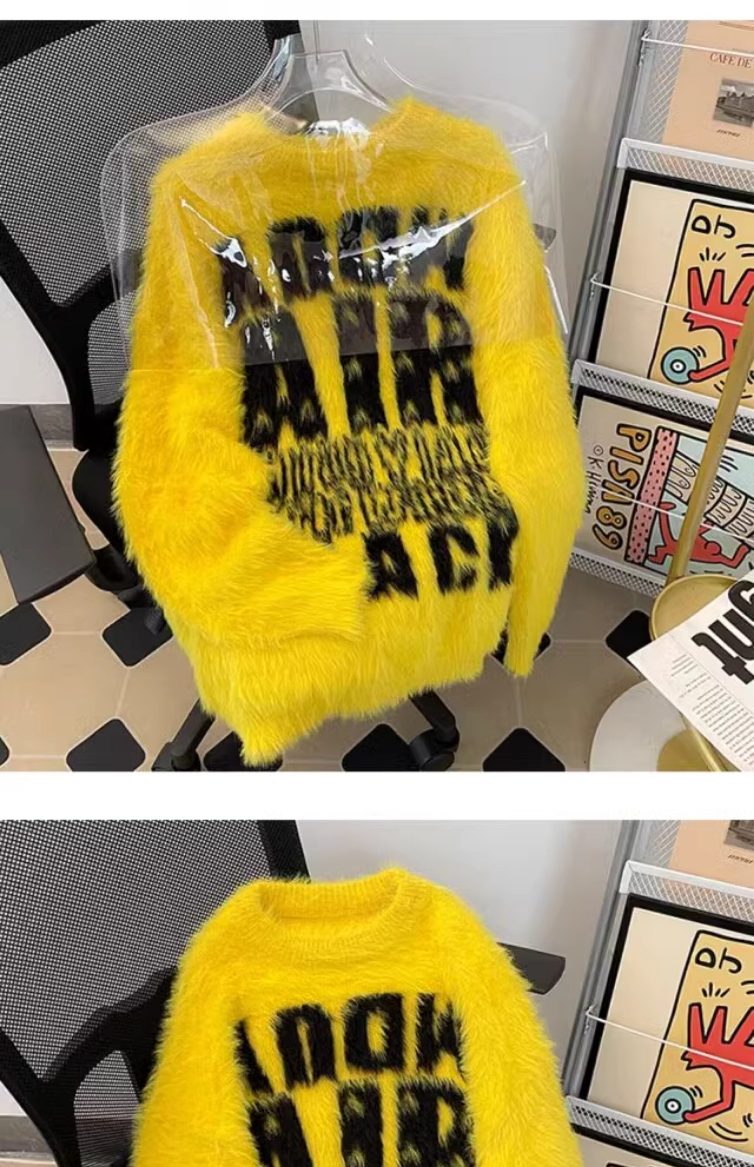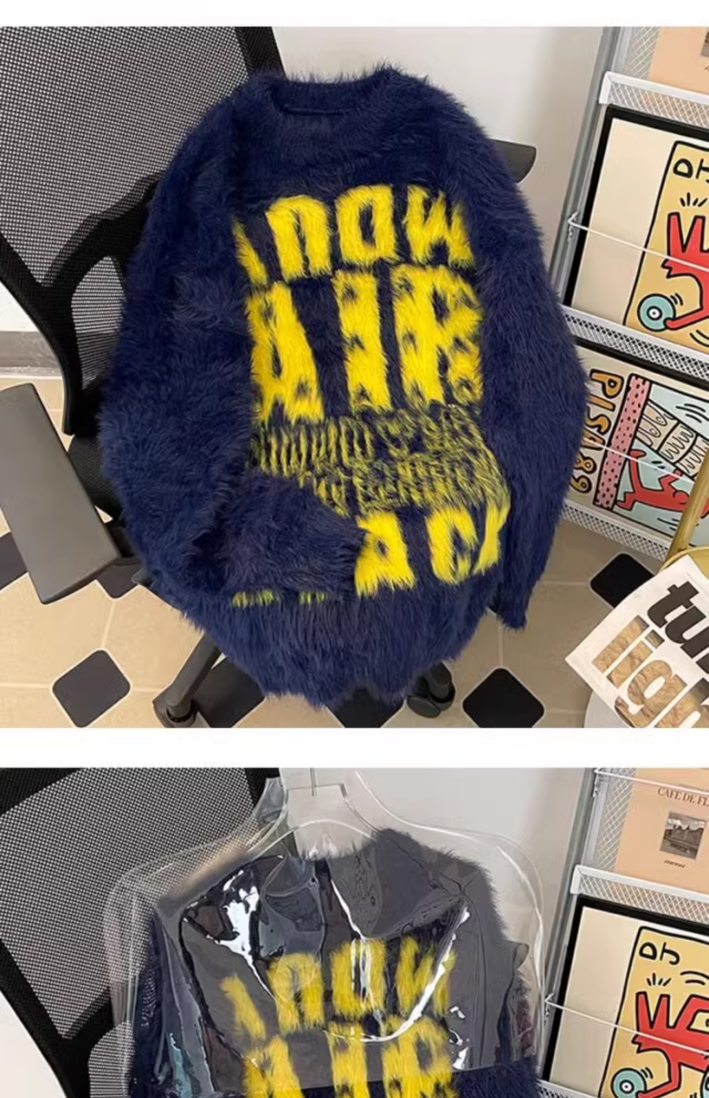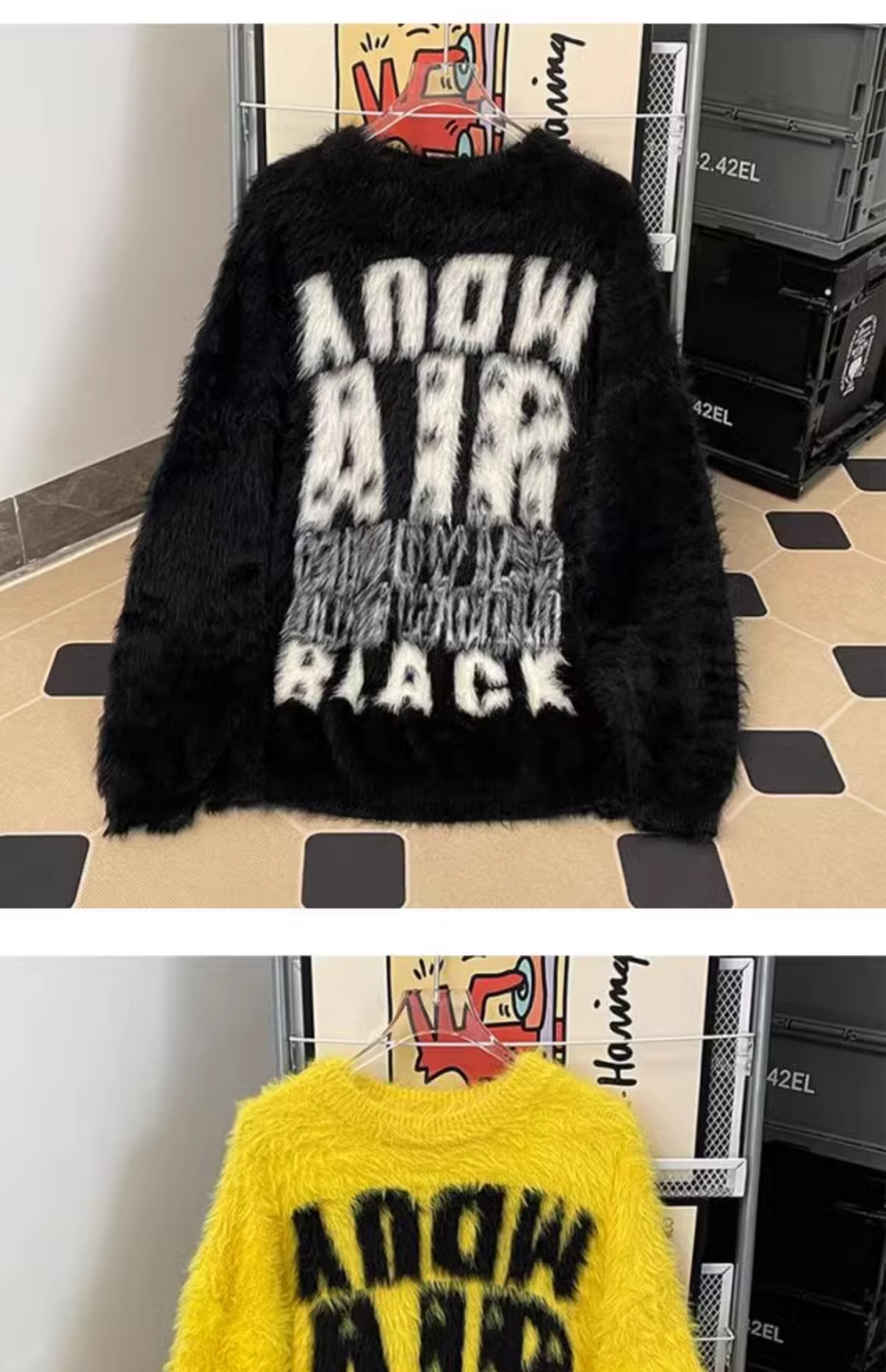 美式字母提花水貂絨毛衣男女寬松圓領學院風情侶潮牌針織打底衫