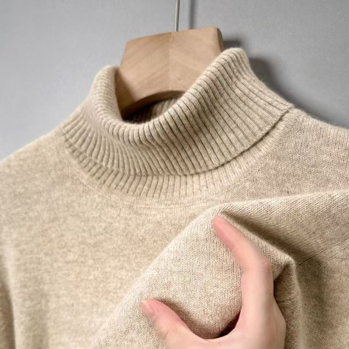 中年仿羊毛衫男羊毛保暖半高領秋冬裝仿羊絨衫針織打底毛衣