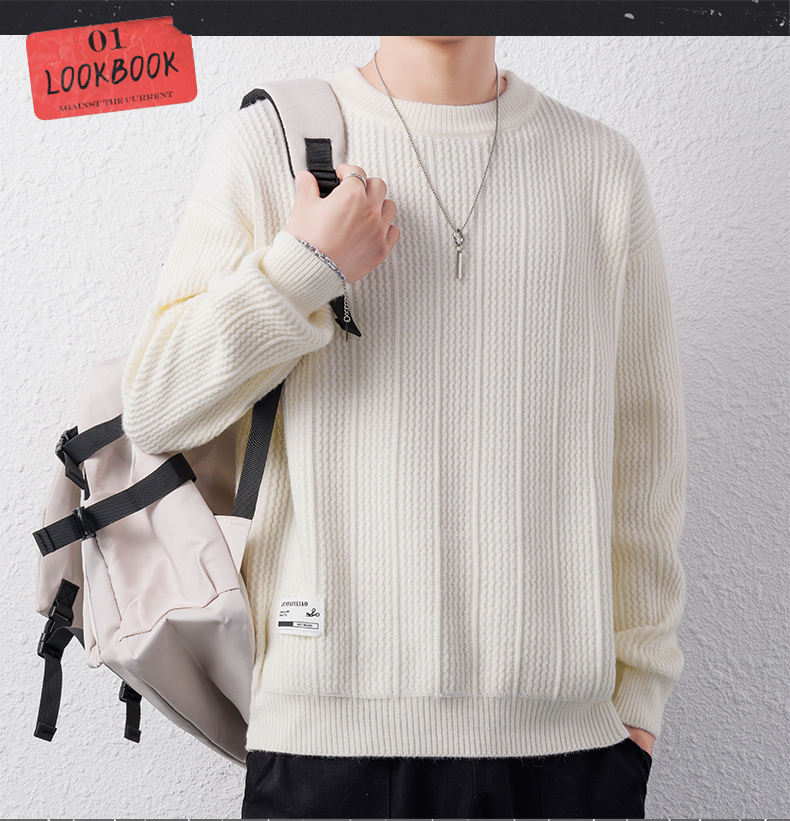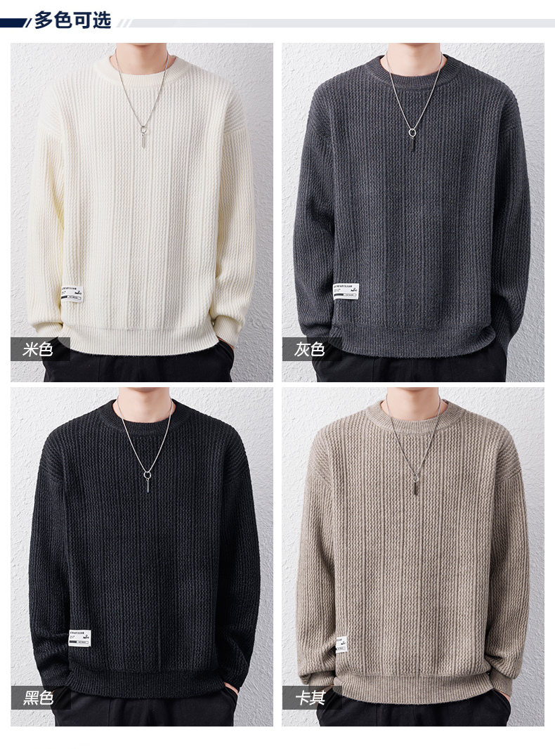 圓領毛衣男冬季2025新款加厚針織衫寬松大碼打底衫潮流保暖毛線衣