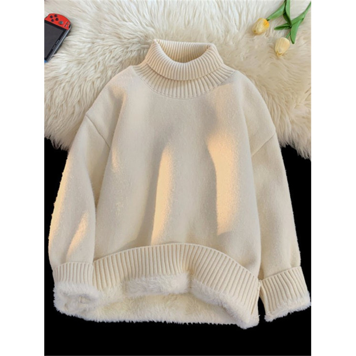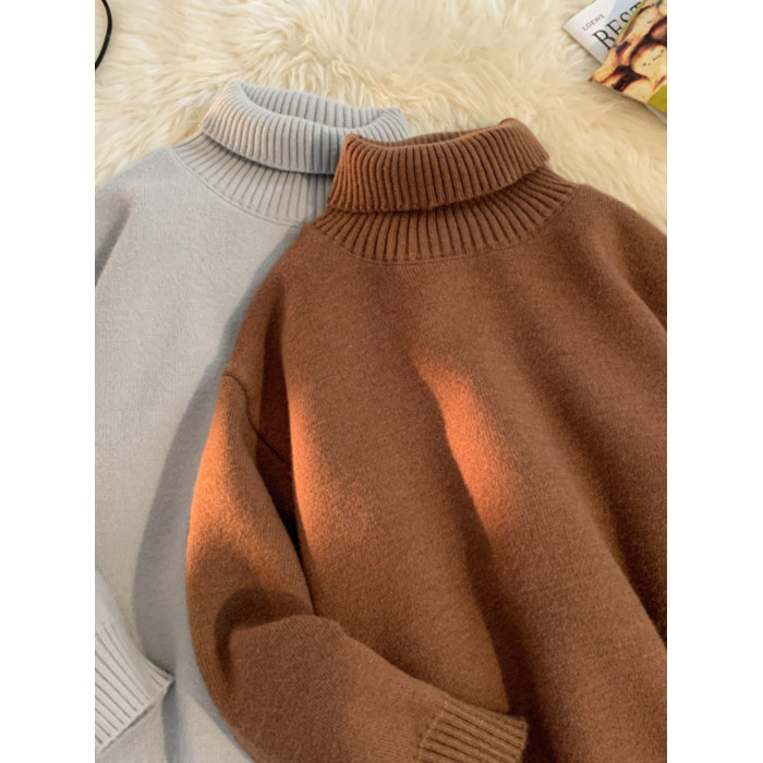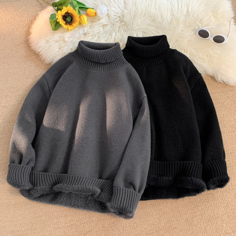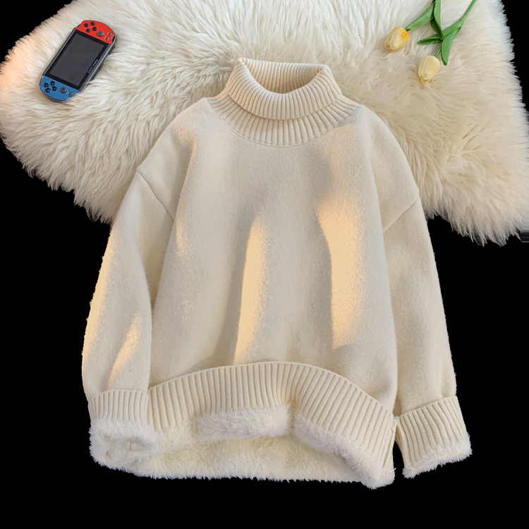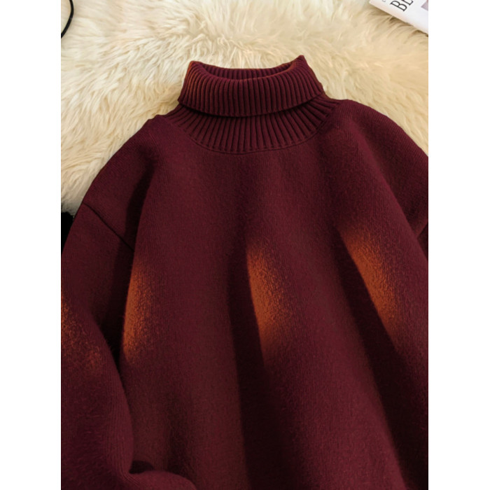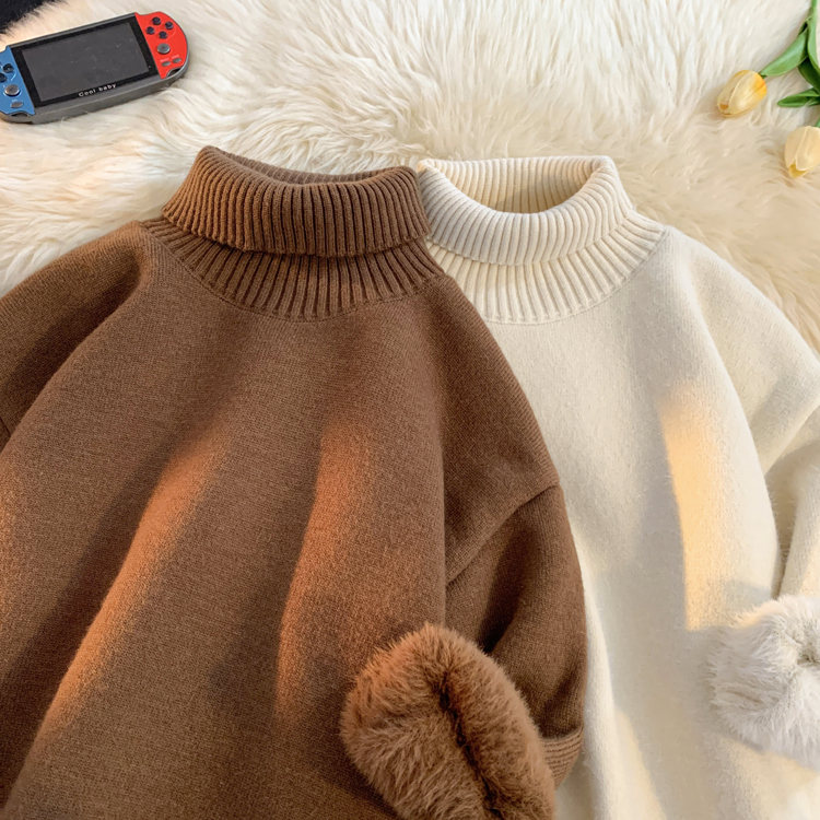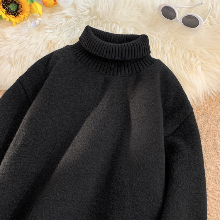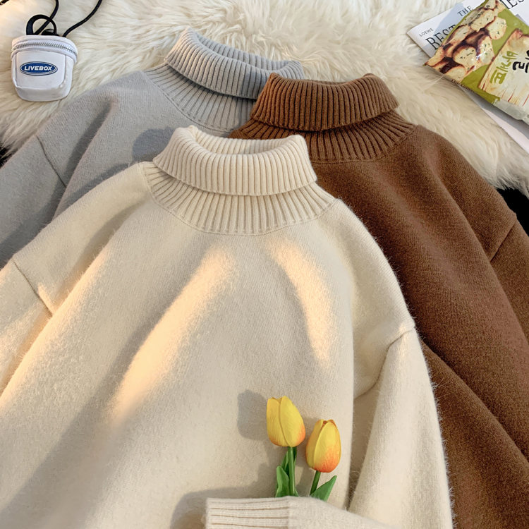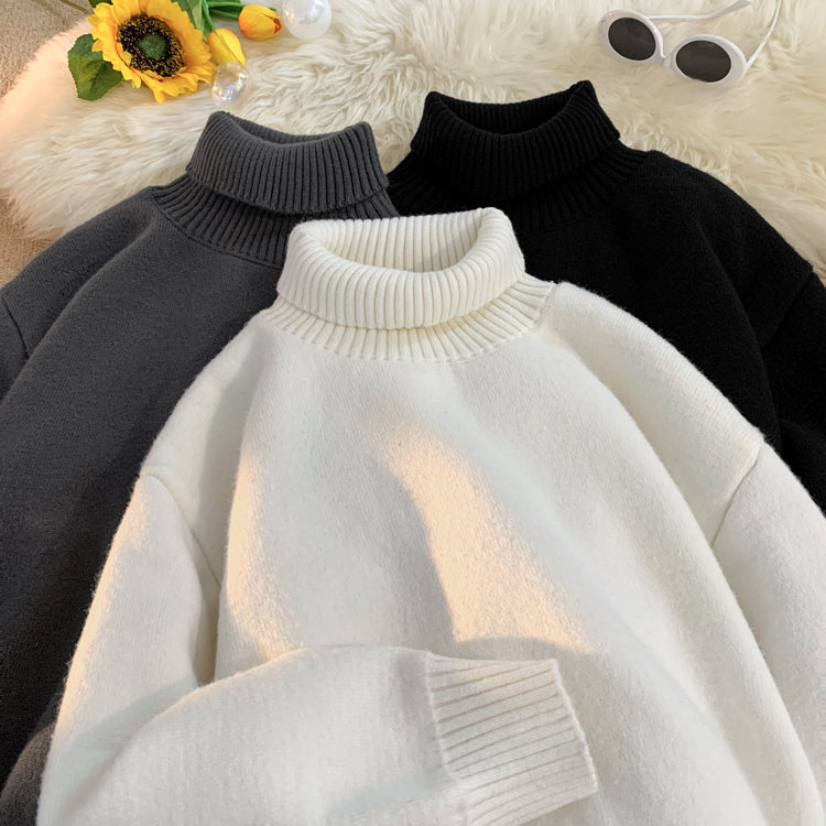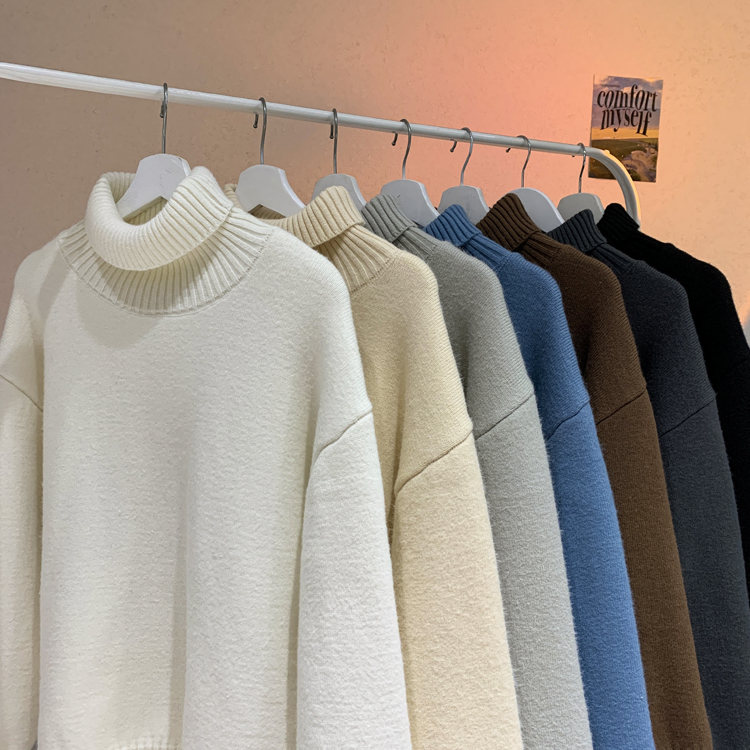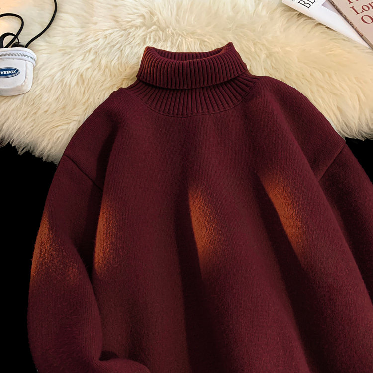 秋冬純色高領毛衣男加絨加厚寬松簡約翻領針織衫保暖內搭長袖潮流