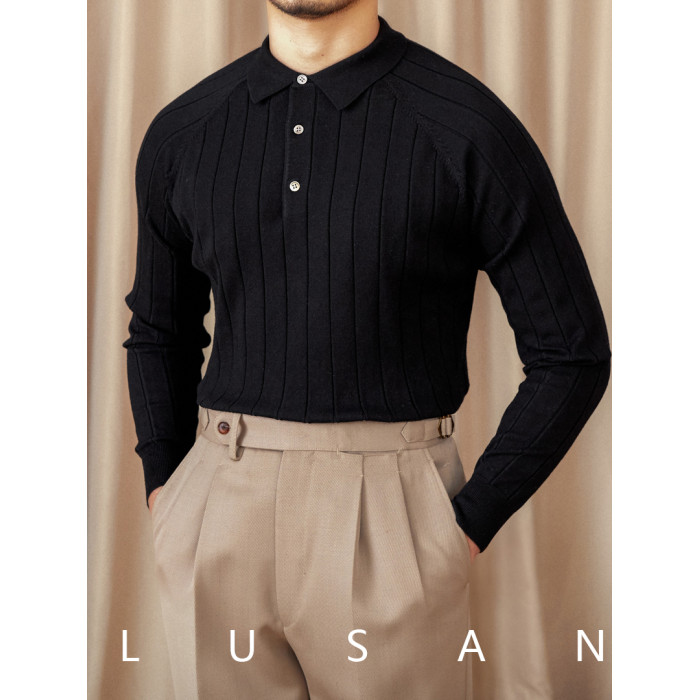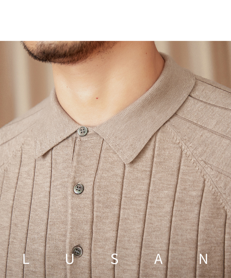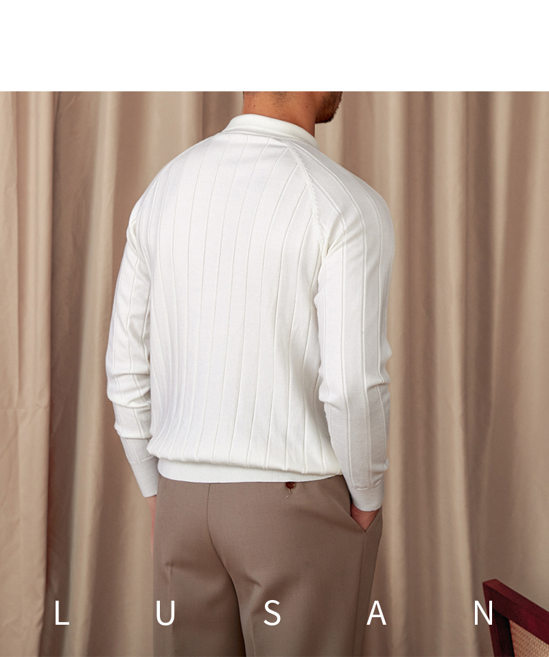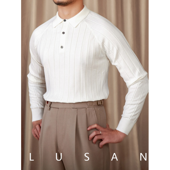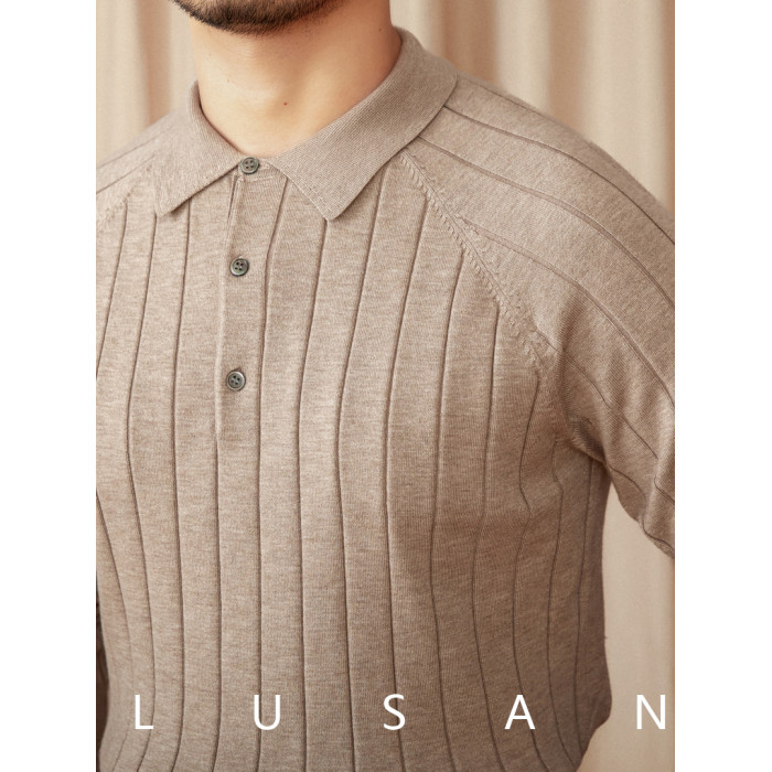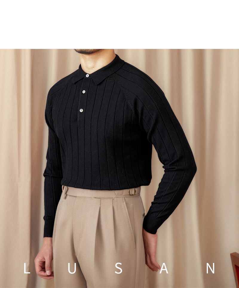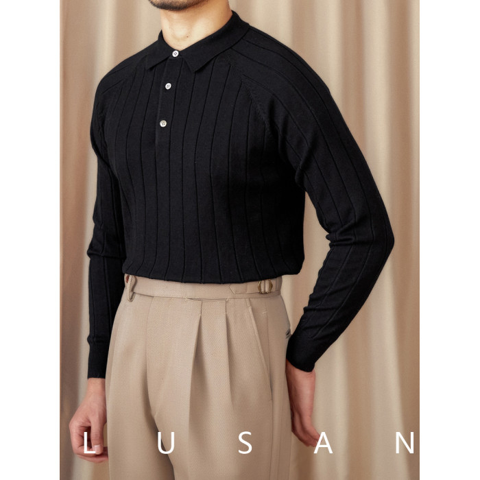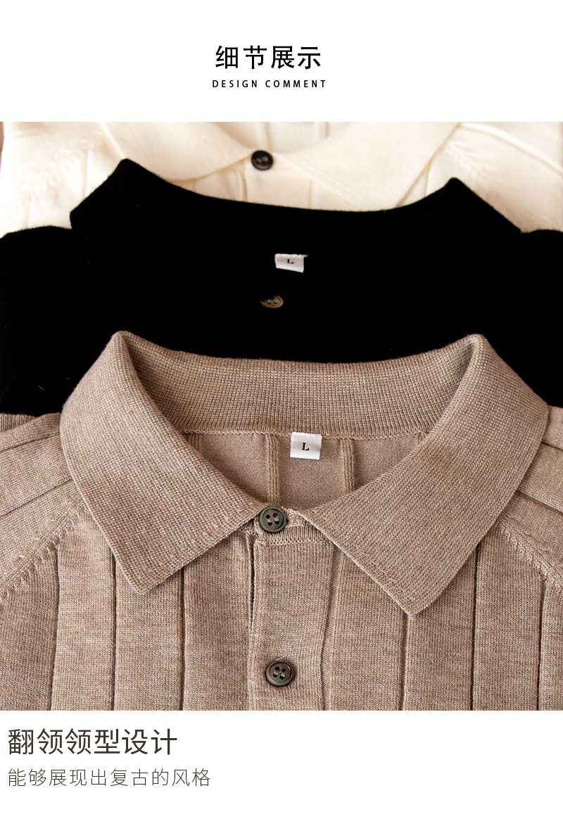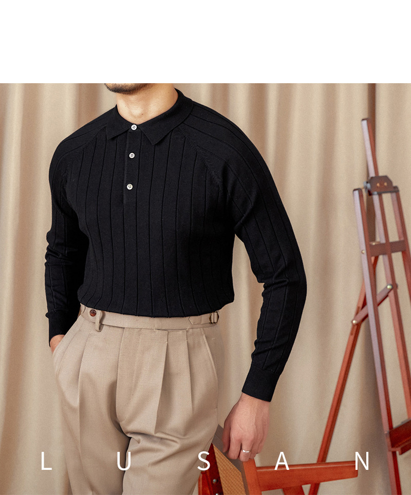 鹿三先生秋冬英倫修身翻領長袖POLO薄款羊毛+桑蠶絲打底針織衫男