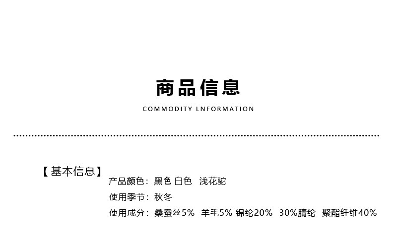 | 材質成分 | 聚酯纖維40% 聚丙烯腈纖維(腈綸)30% 聚醯胺纖維(錦綸)20% 羊毛5% 桑蠶絲5% |
