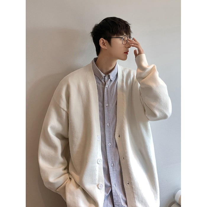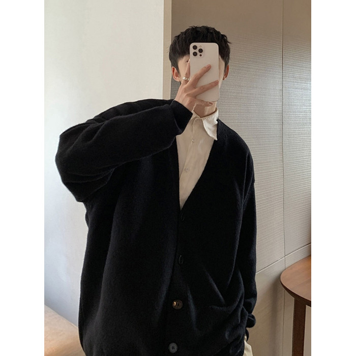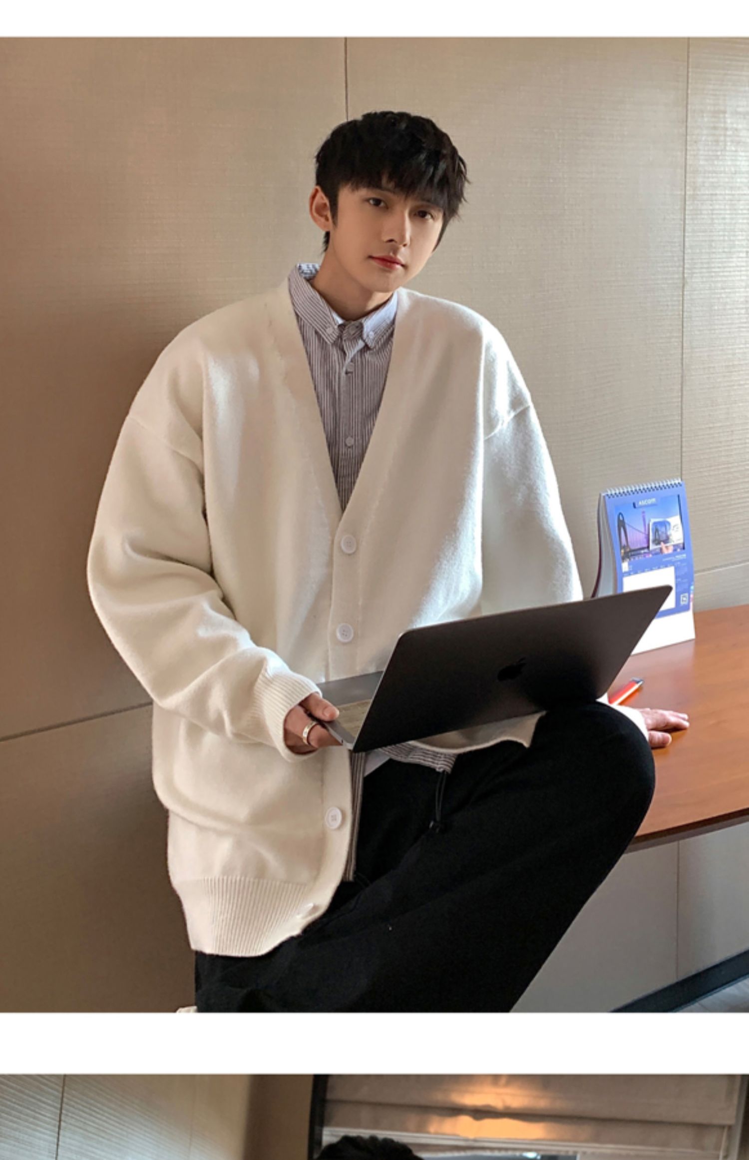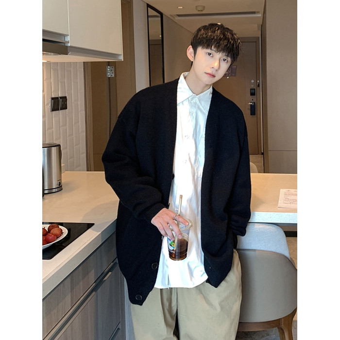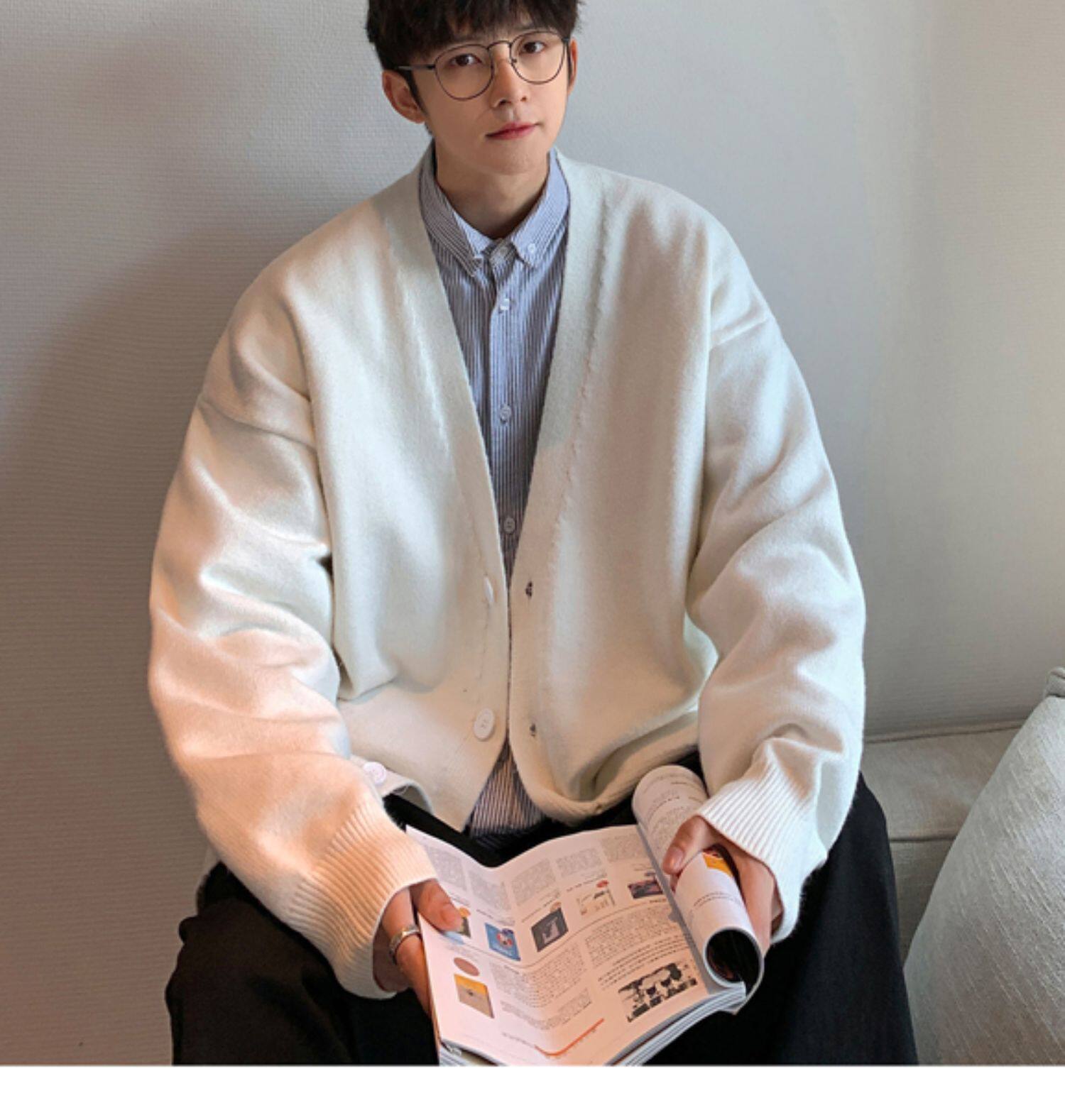 開衫毛衣男士秋冬韓版潮流寬松純色學院風針織衫ins潮牌百搭外套