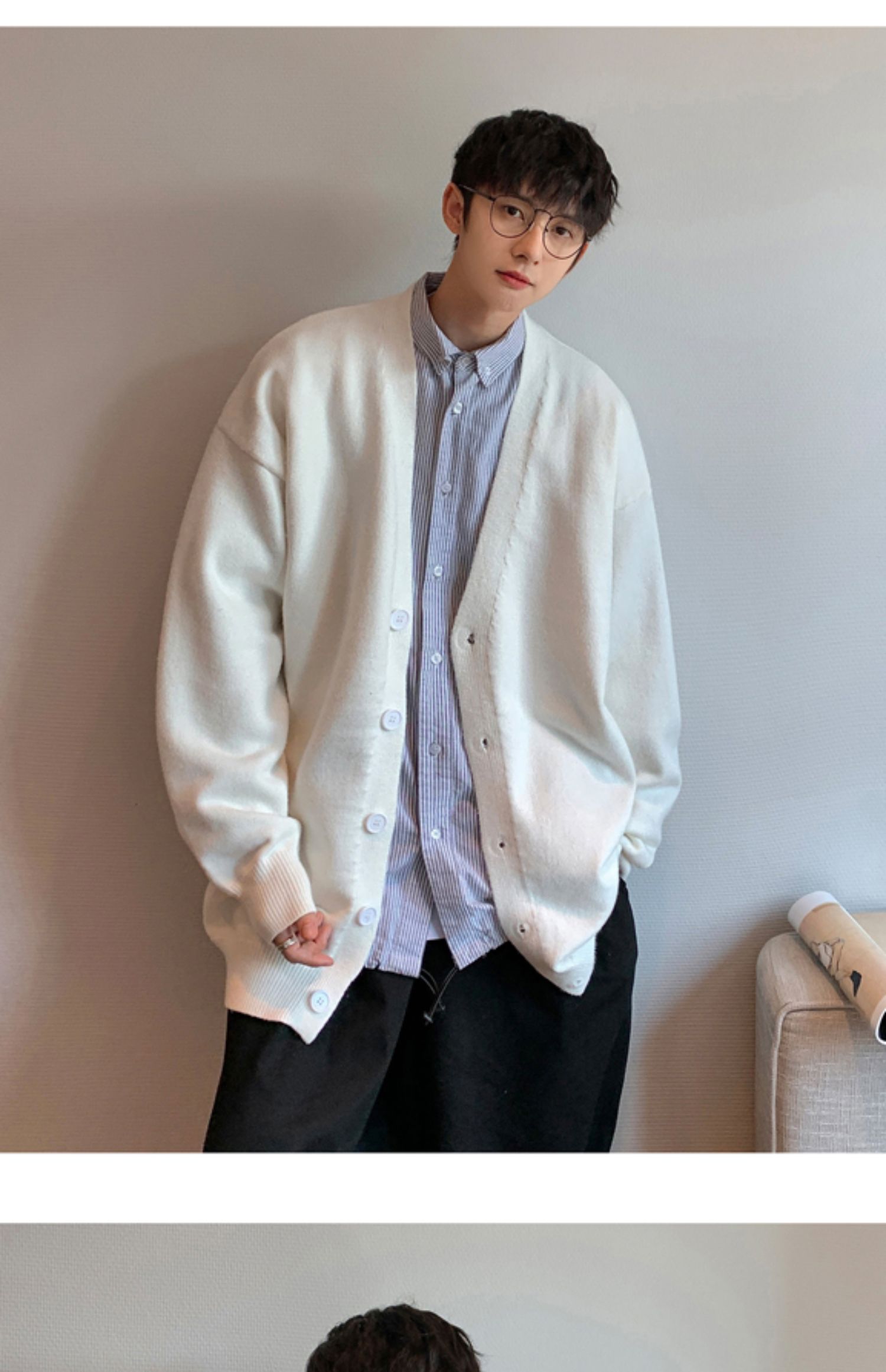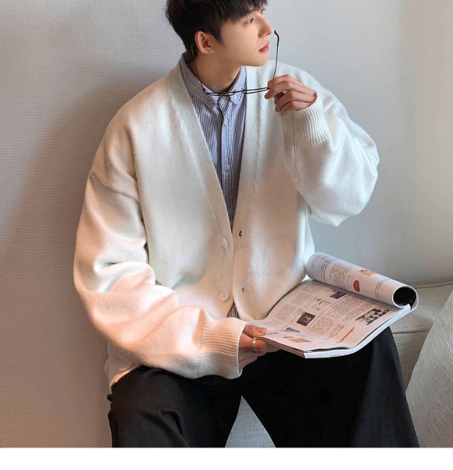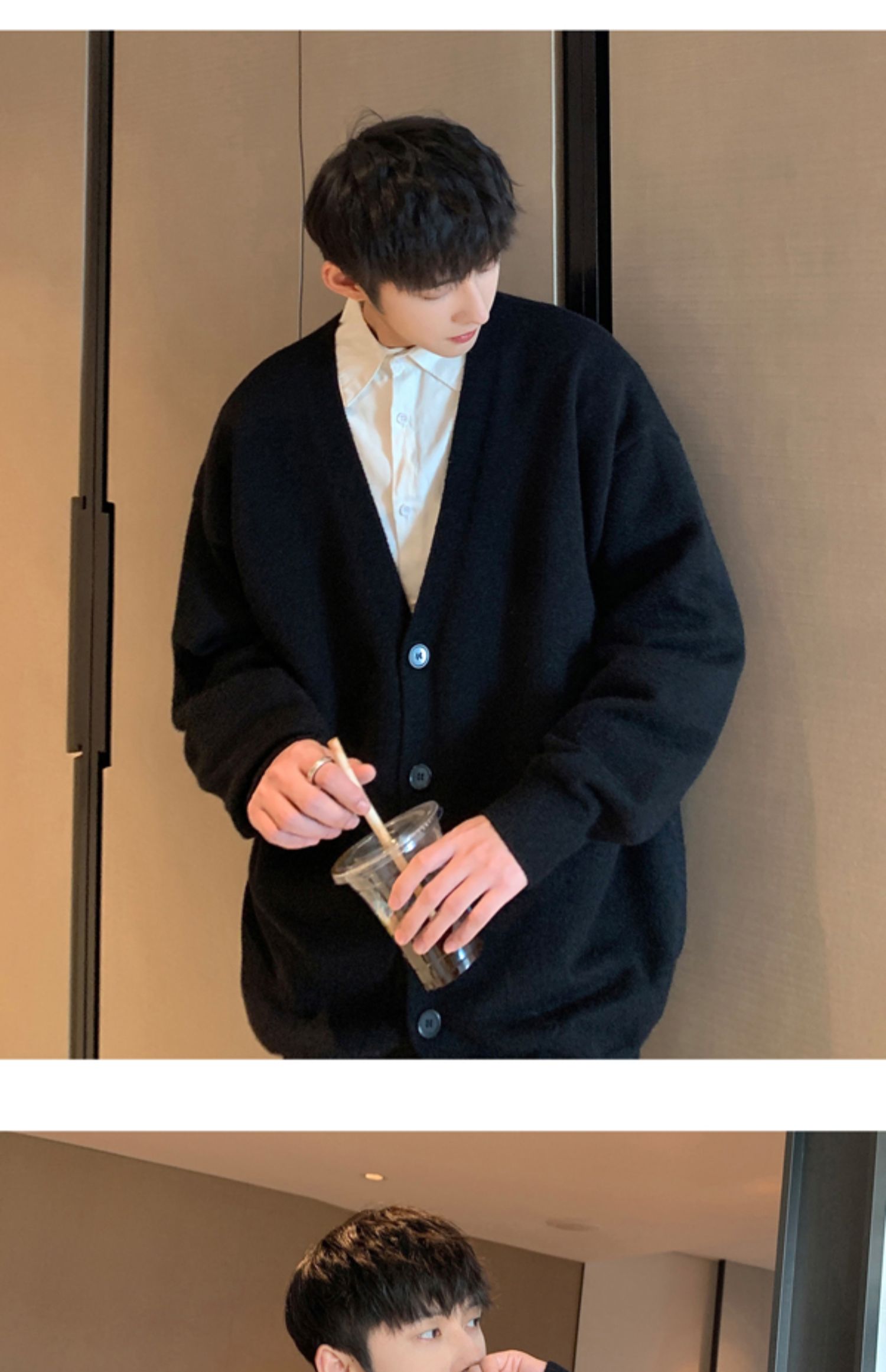 開衫毛衣男士秋冬韓版潮流寬松純色學院風針織衫ins潮牌百搭外套