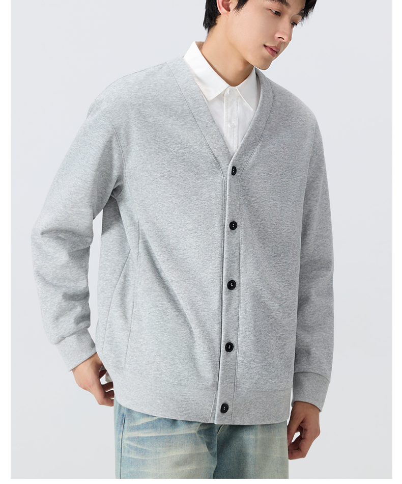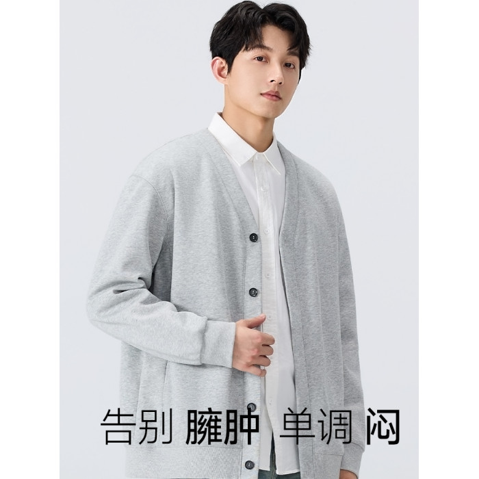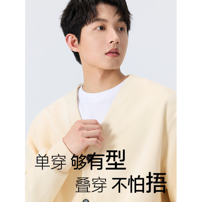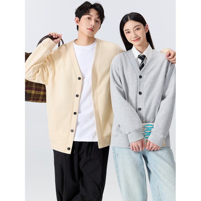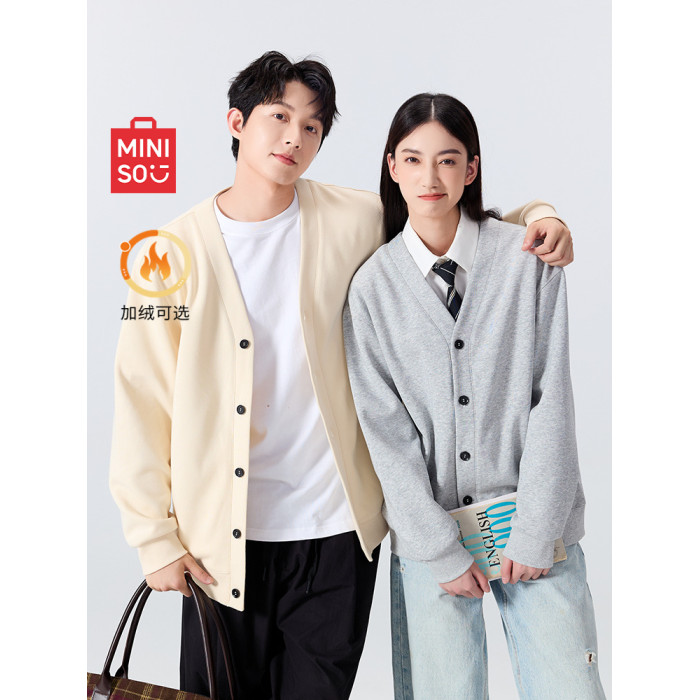 名創優品V領針織開衫外套男秋冬加絨情侶衣服學院風衛衣毛衣長袖Y