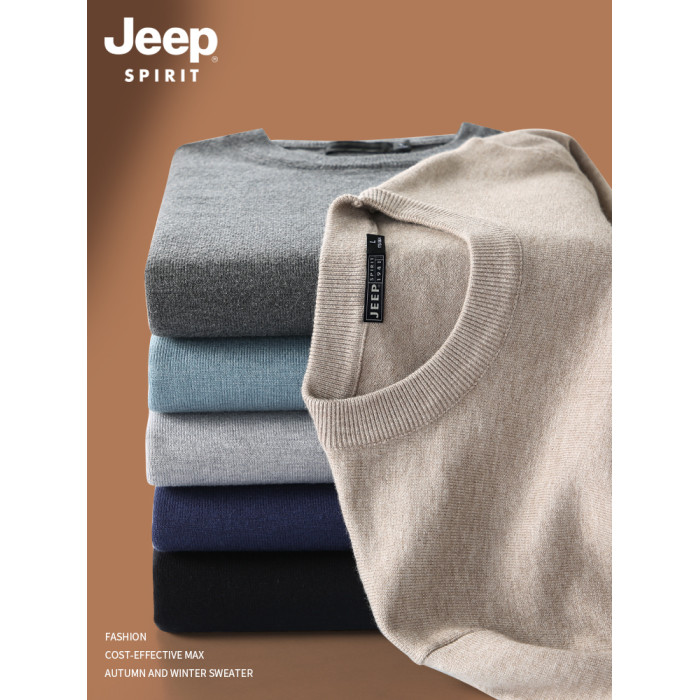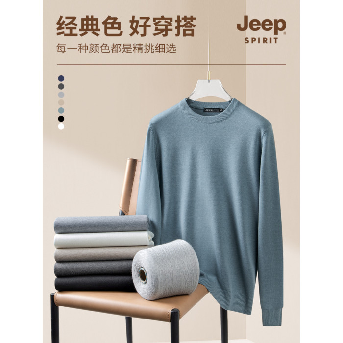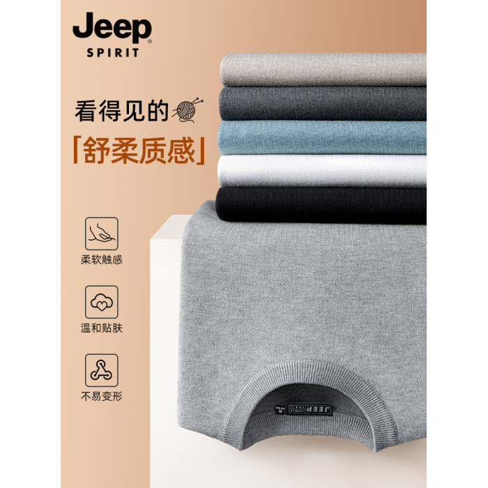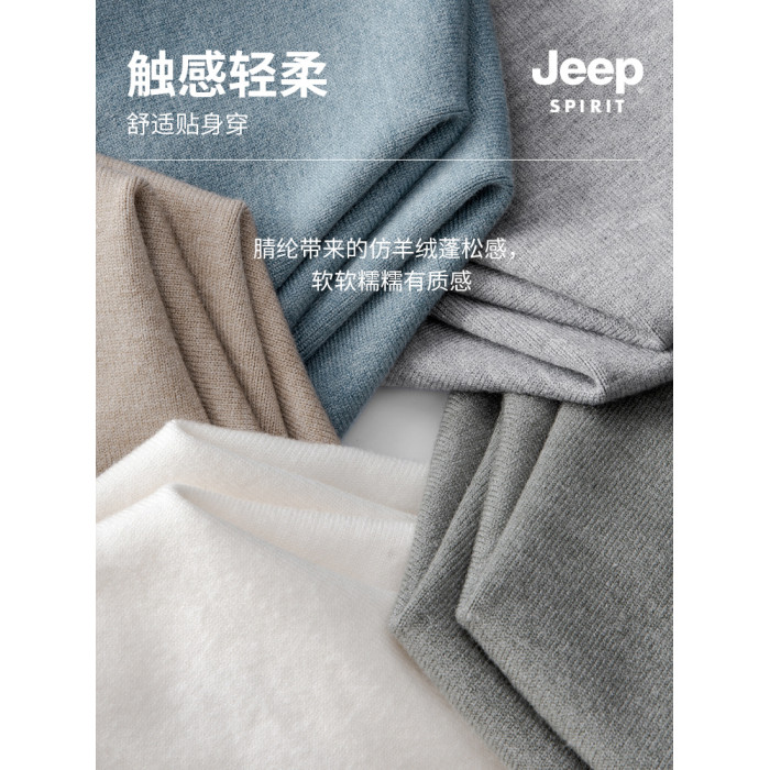 吉普毛衣男士秋冬季圓領套頭純色內搭2025新款加絨加厚打底針織衫