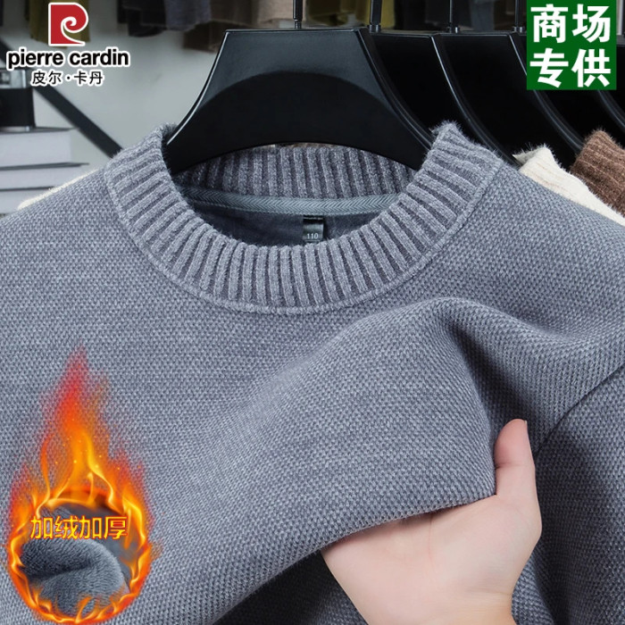 皮爾卡丹冬季新款男士雪貂絨衛衣加絨加厚高領毛衣保暖針織打底衫