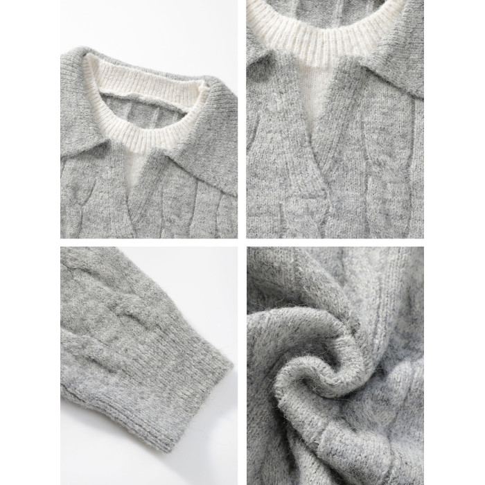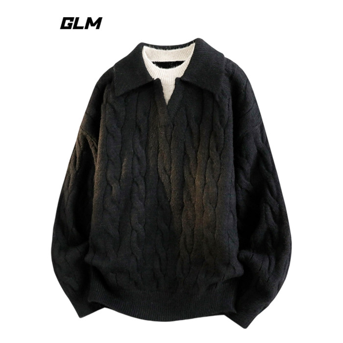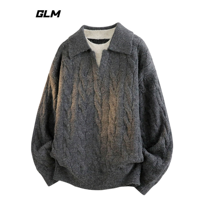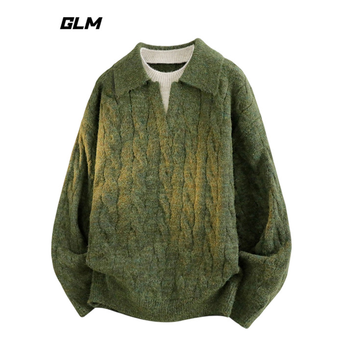 【敖瑞鵬代言】GLM官方法式復古麻花針織衫翻領毛衣男款冬季上衣