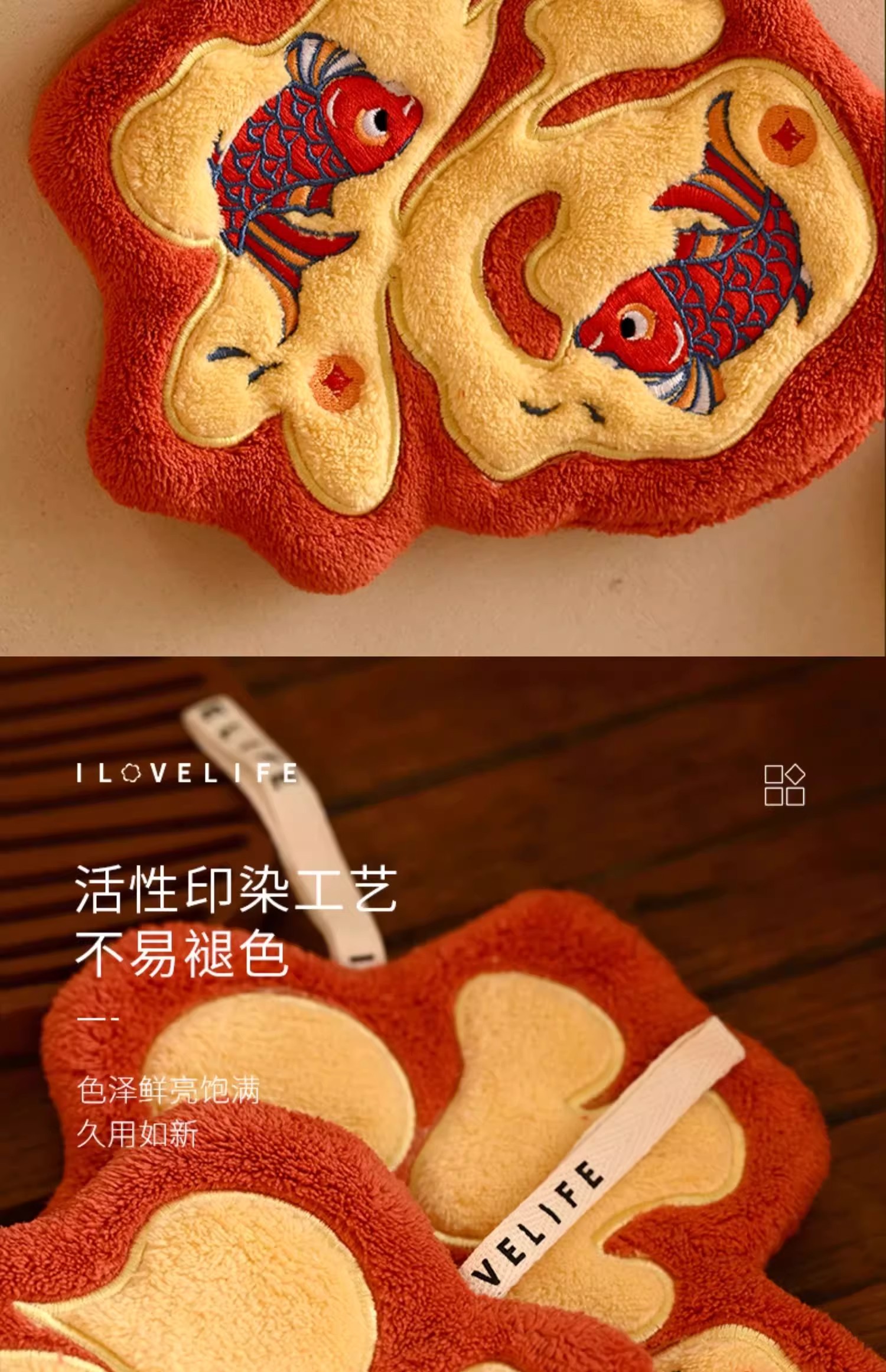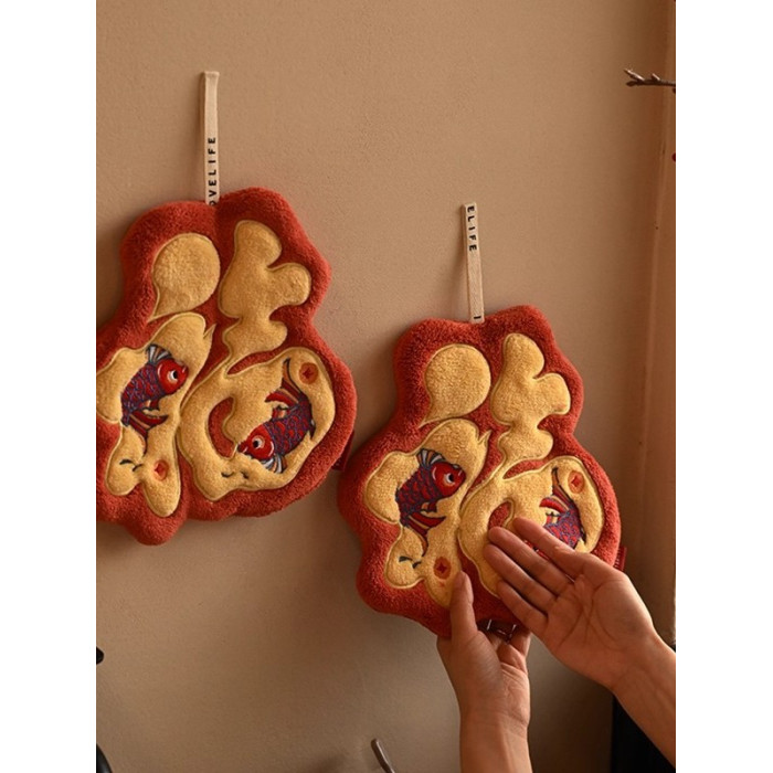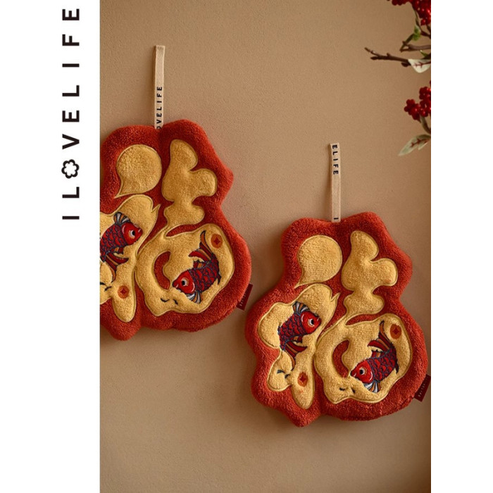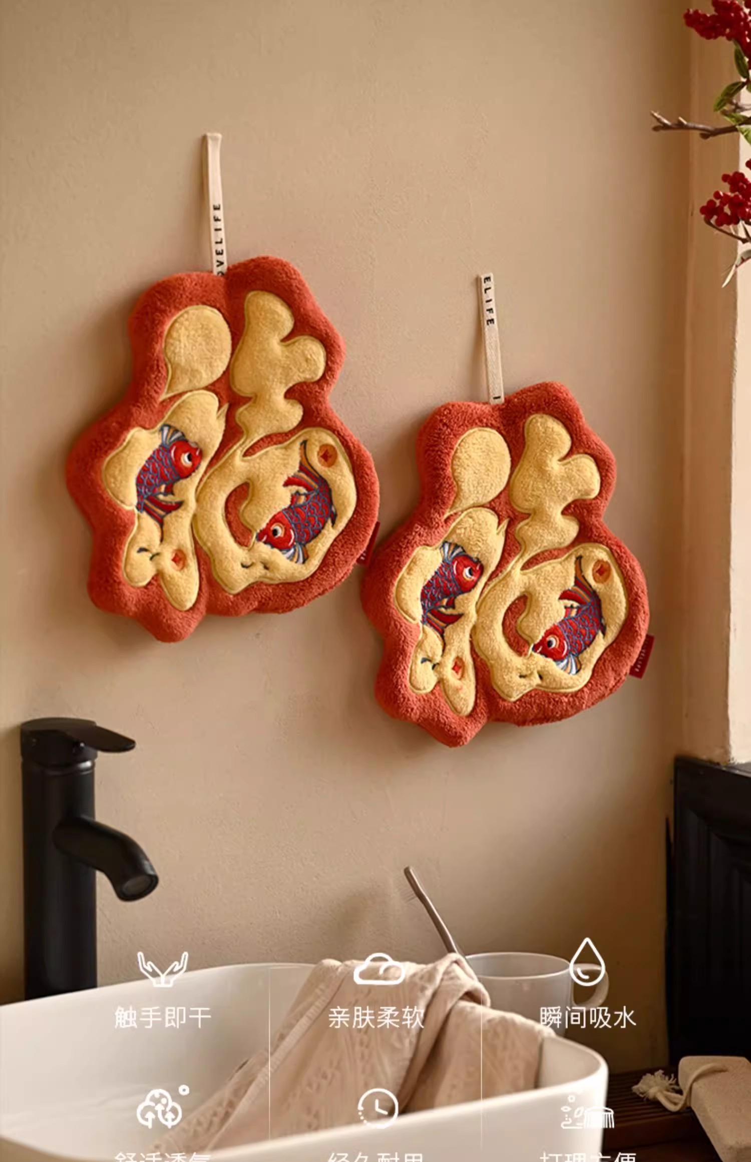新年福字衛生間擦手巾掛式廚房超強吸水加厚速乾珊瑚絨春節擦手布