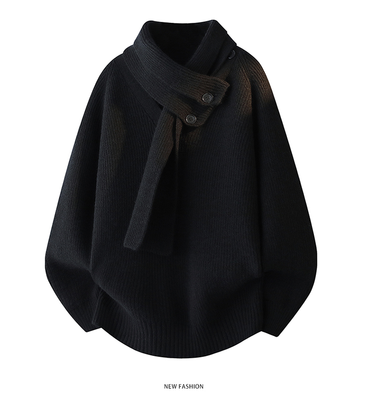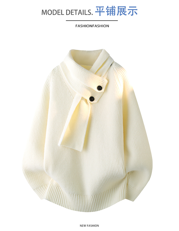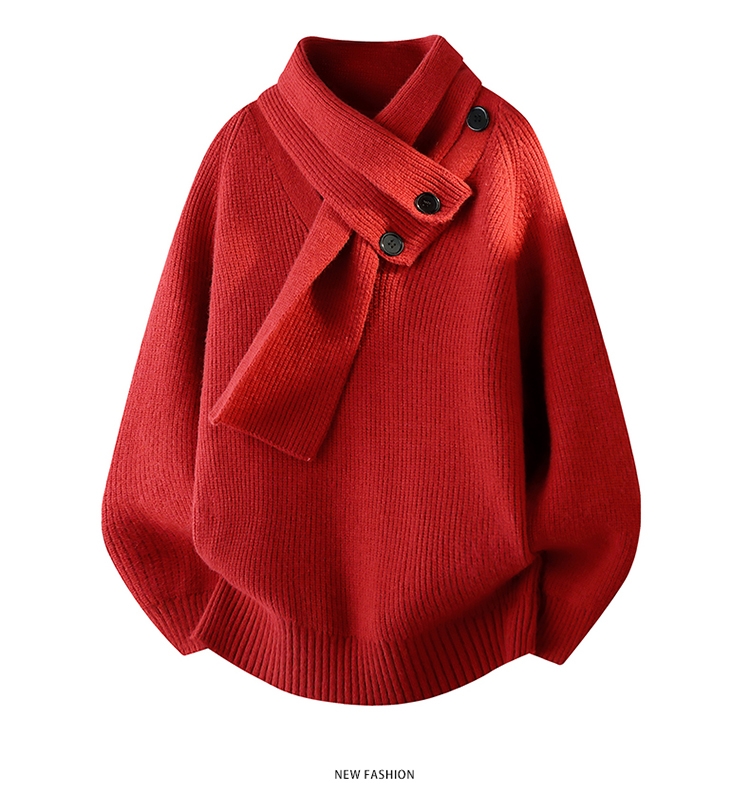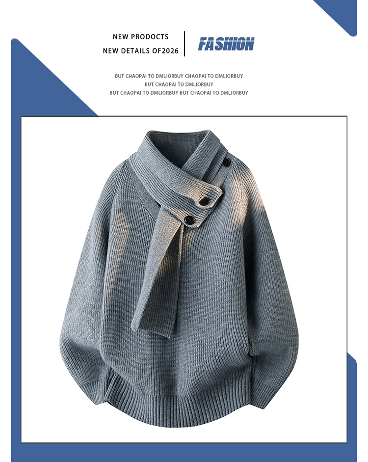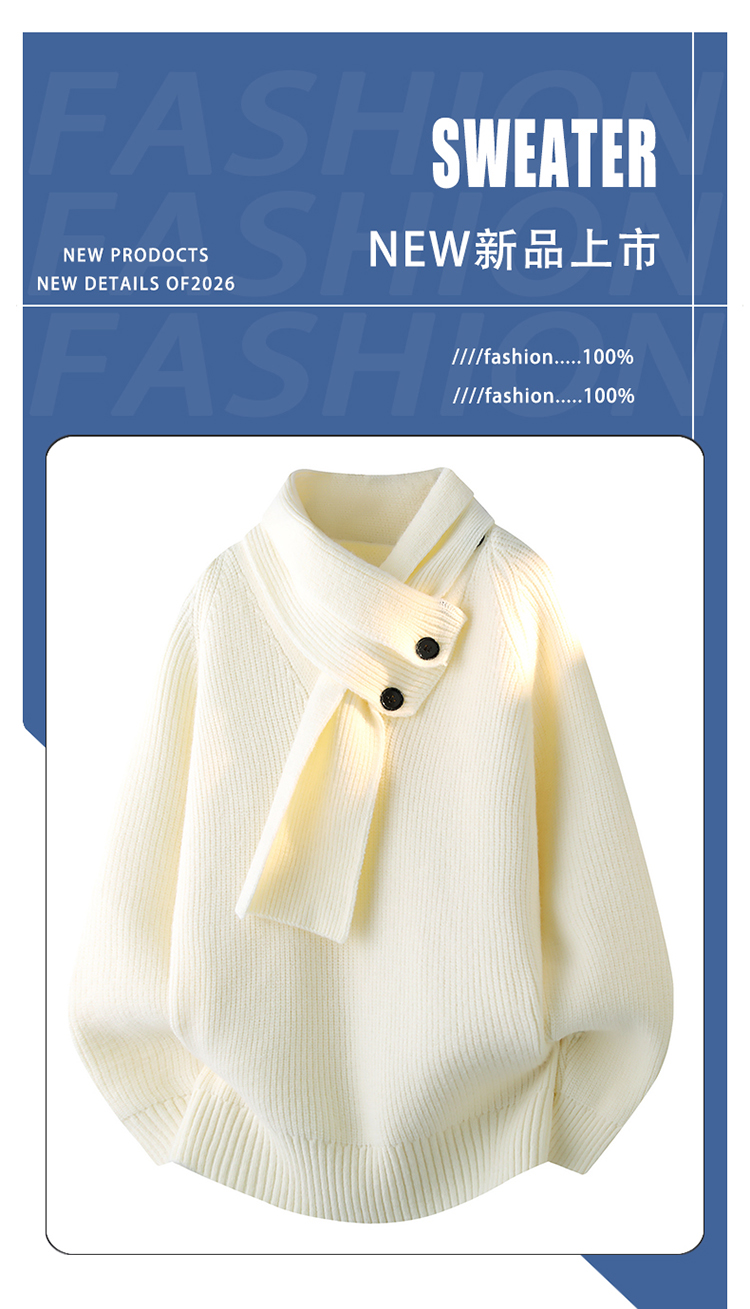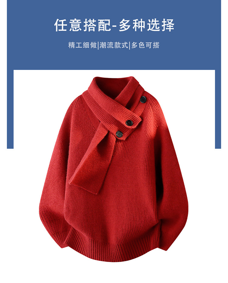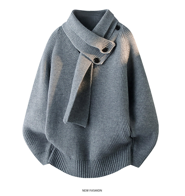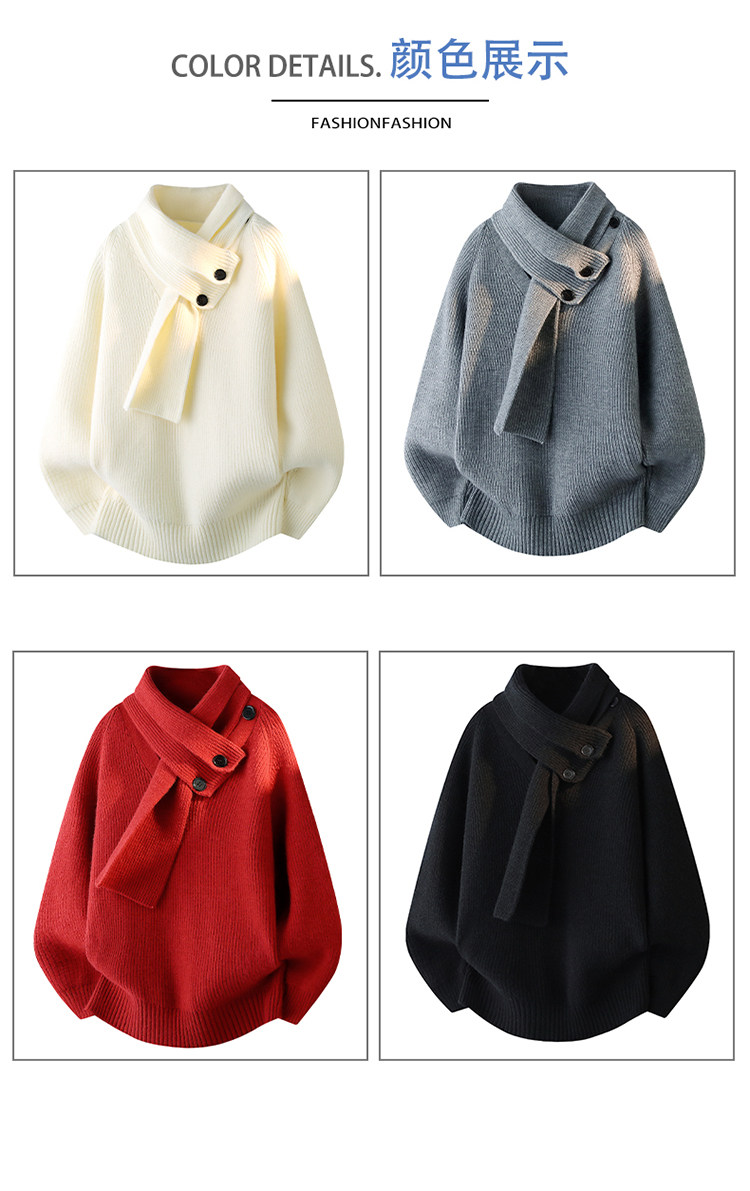 WASSUP ISSUE設計感圍巾領毛衣男款秋冬季潮牌慵懶風針織衫百搭男