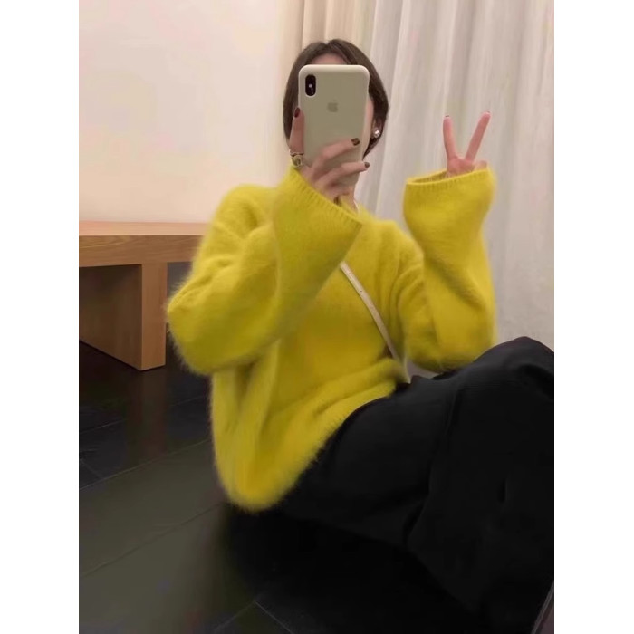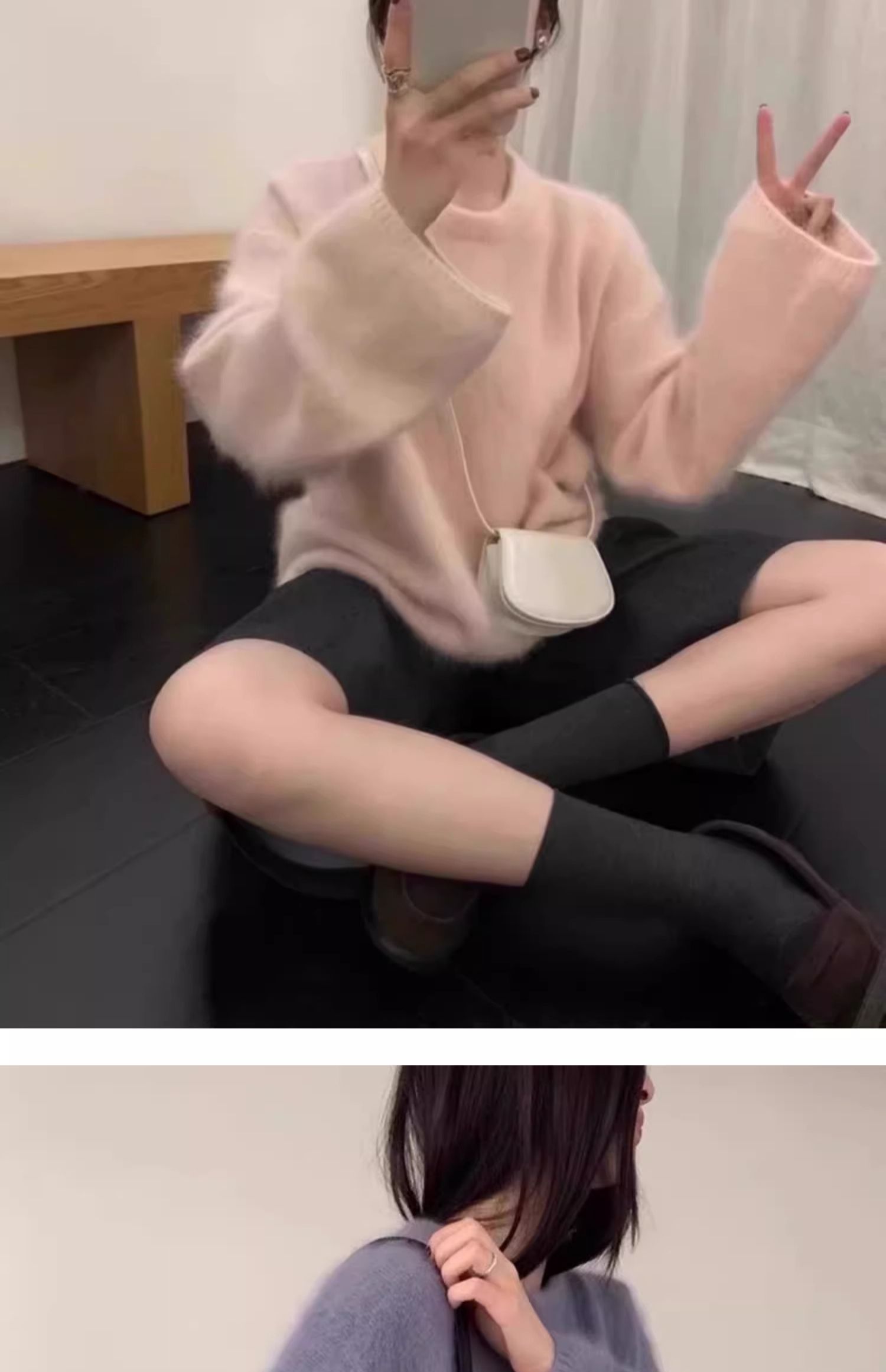 奶fufu慵懶紫色仿水貂絨毛衣冬季女2025新款寬松超好看內搭針織衫