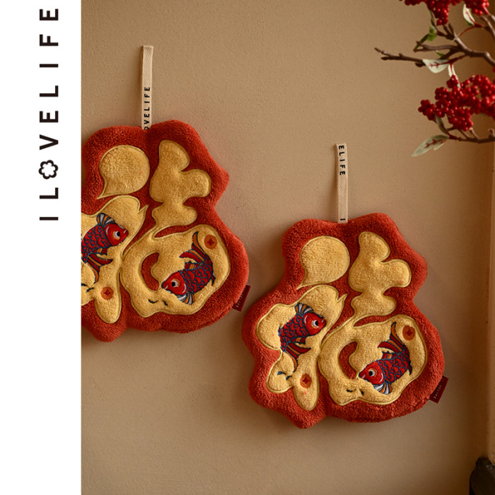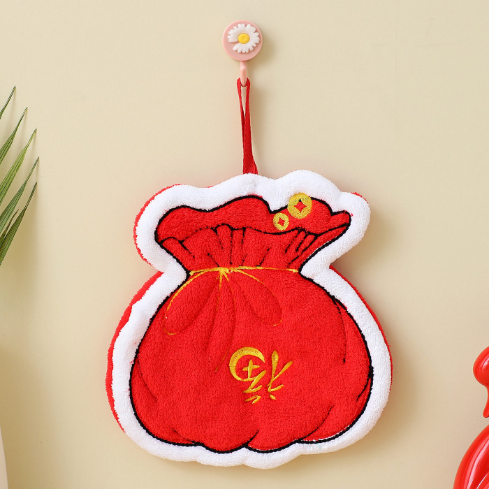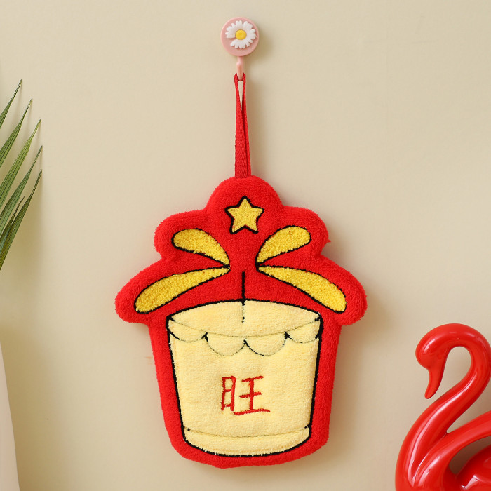 新年福字擦手巾掛式廚房衛生間超強吸水加厚速乾珊瑚絨春節擦手布