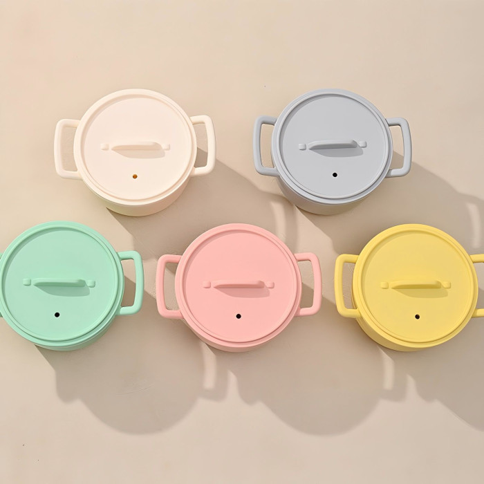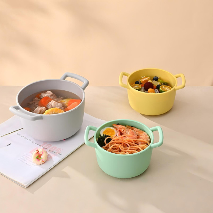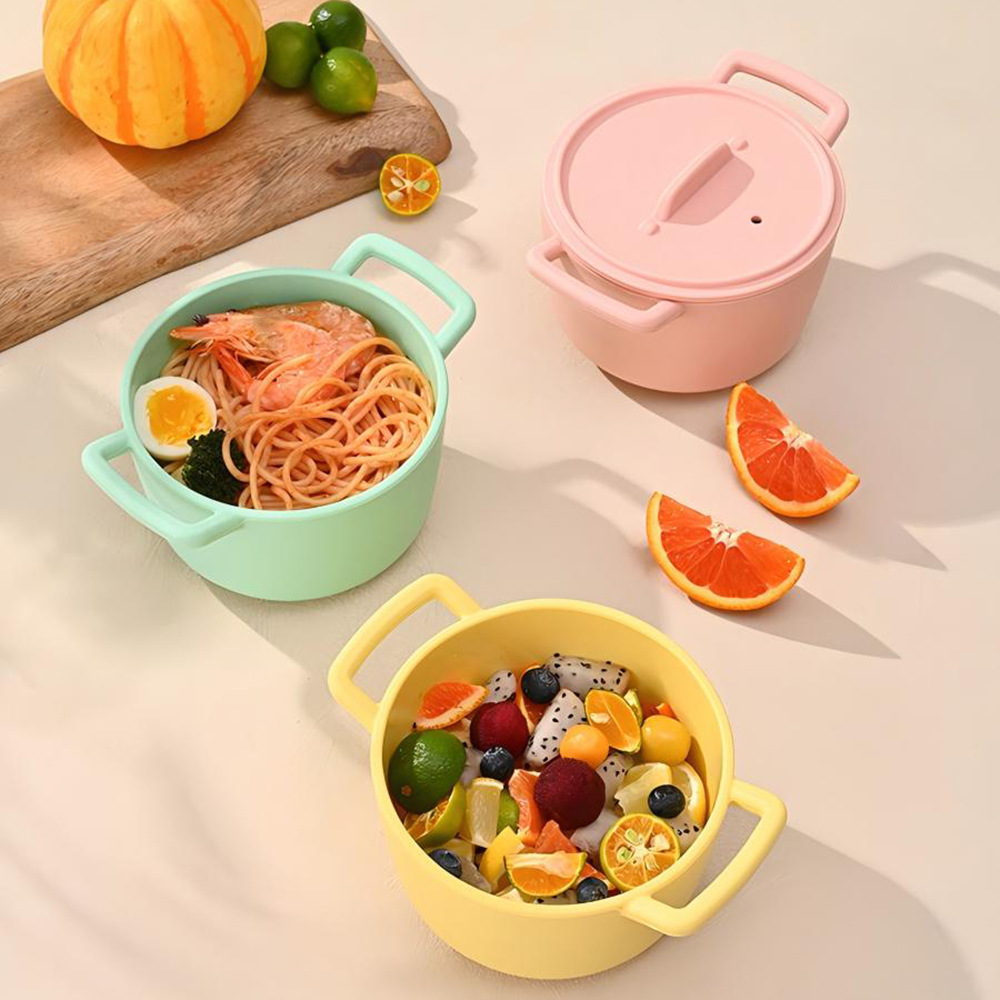 矽膠帶蓋雙耳蒸鍋耐高溫飯菜器皿便當盒飯盒湯碗泡麵碗螺螄粉碗