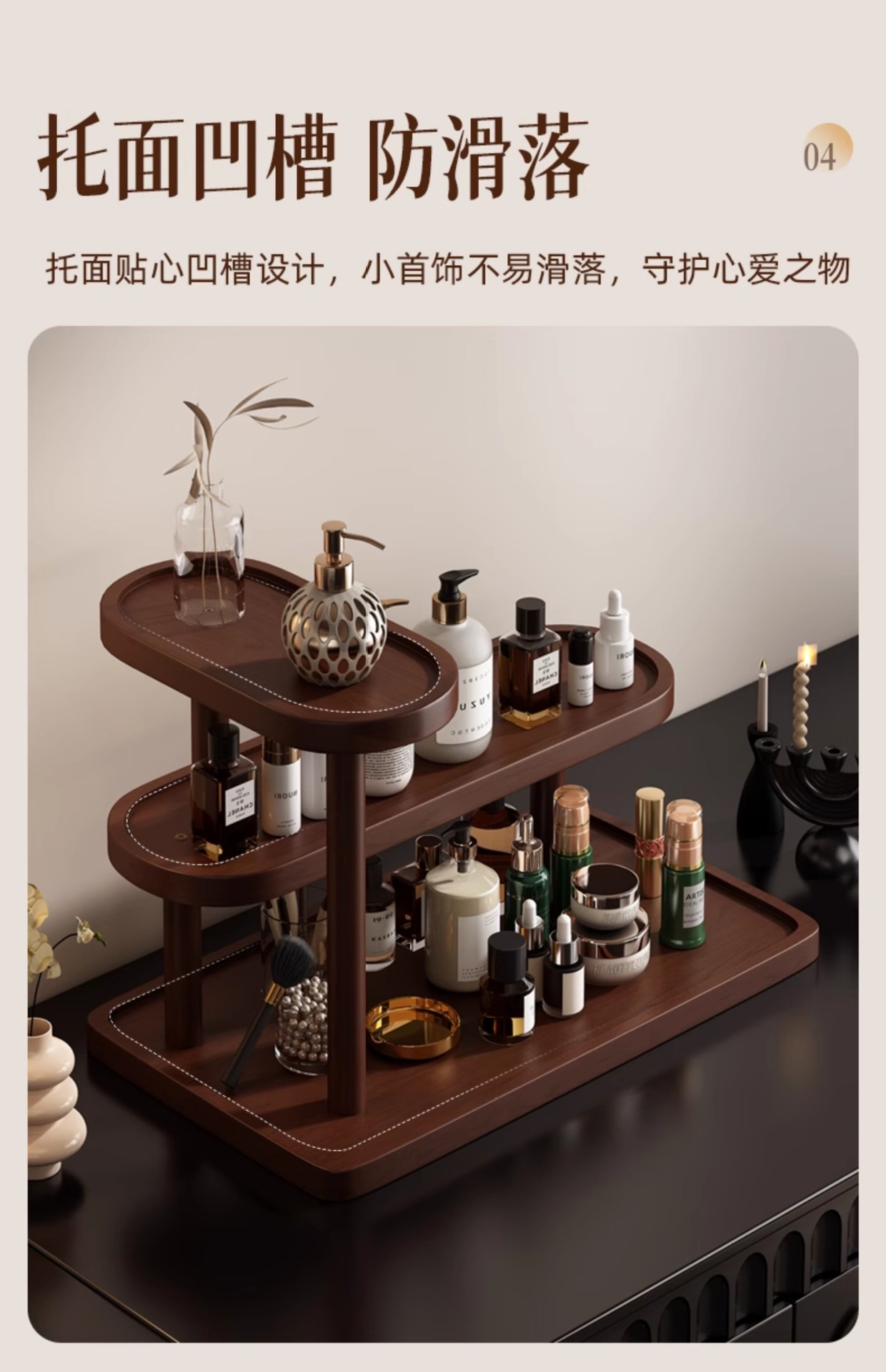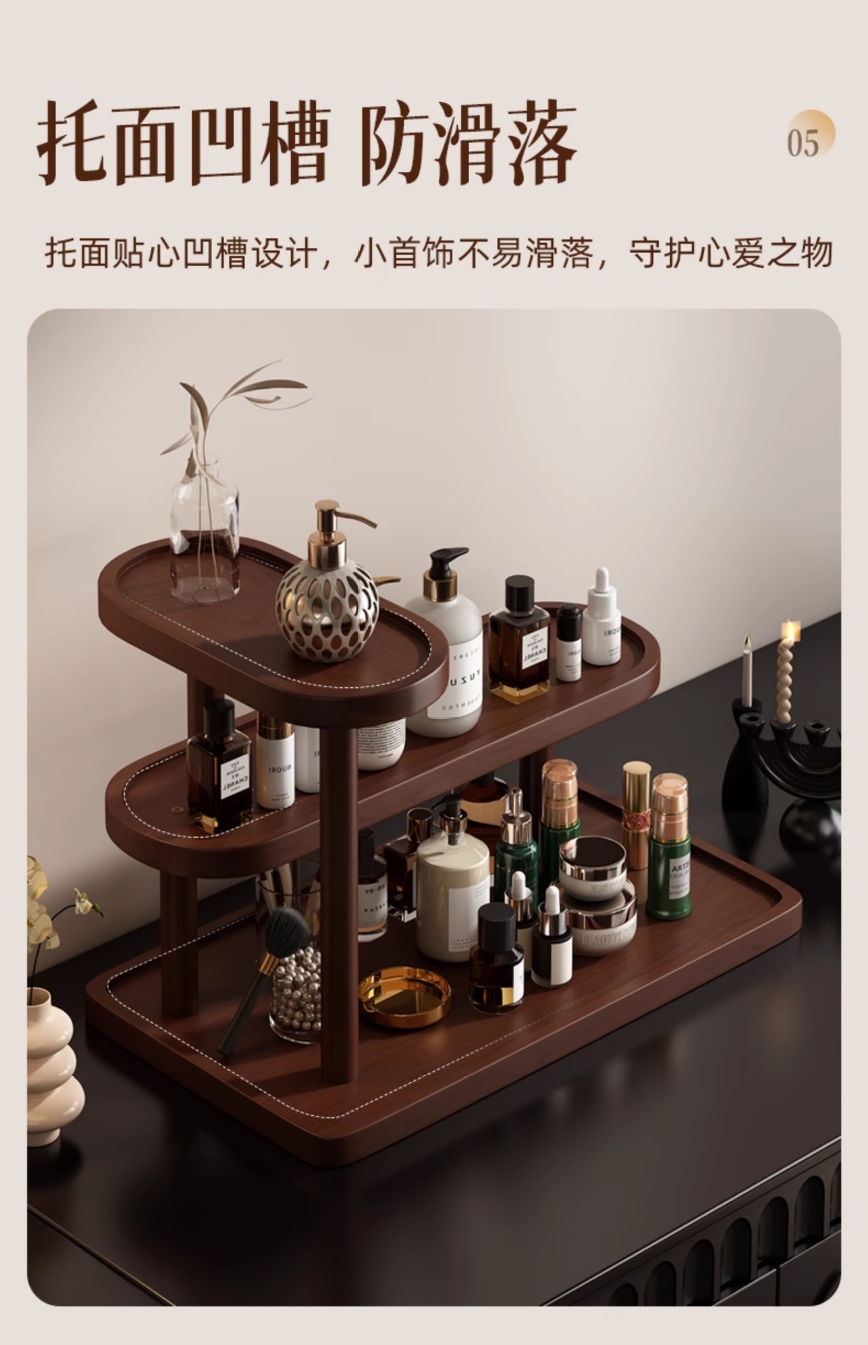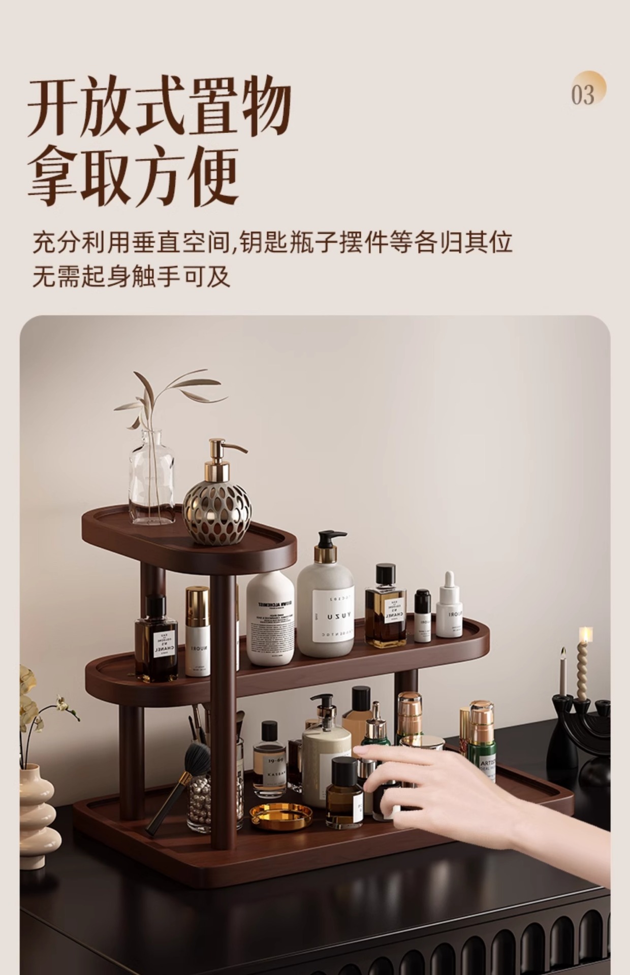 復古實木桌面梳妝台護膚品置物架多層口紅香水化妝品收納整理架