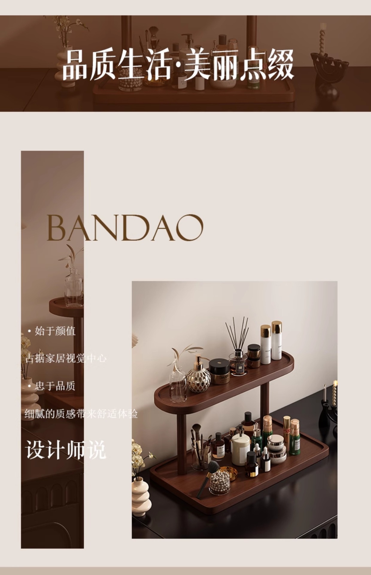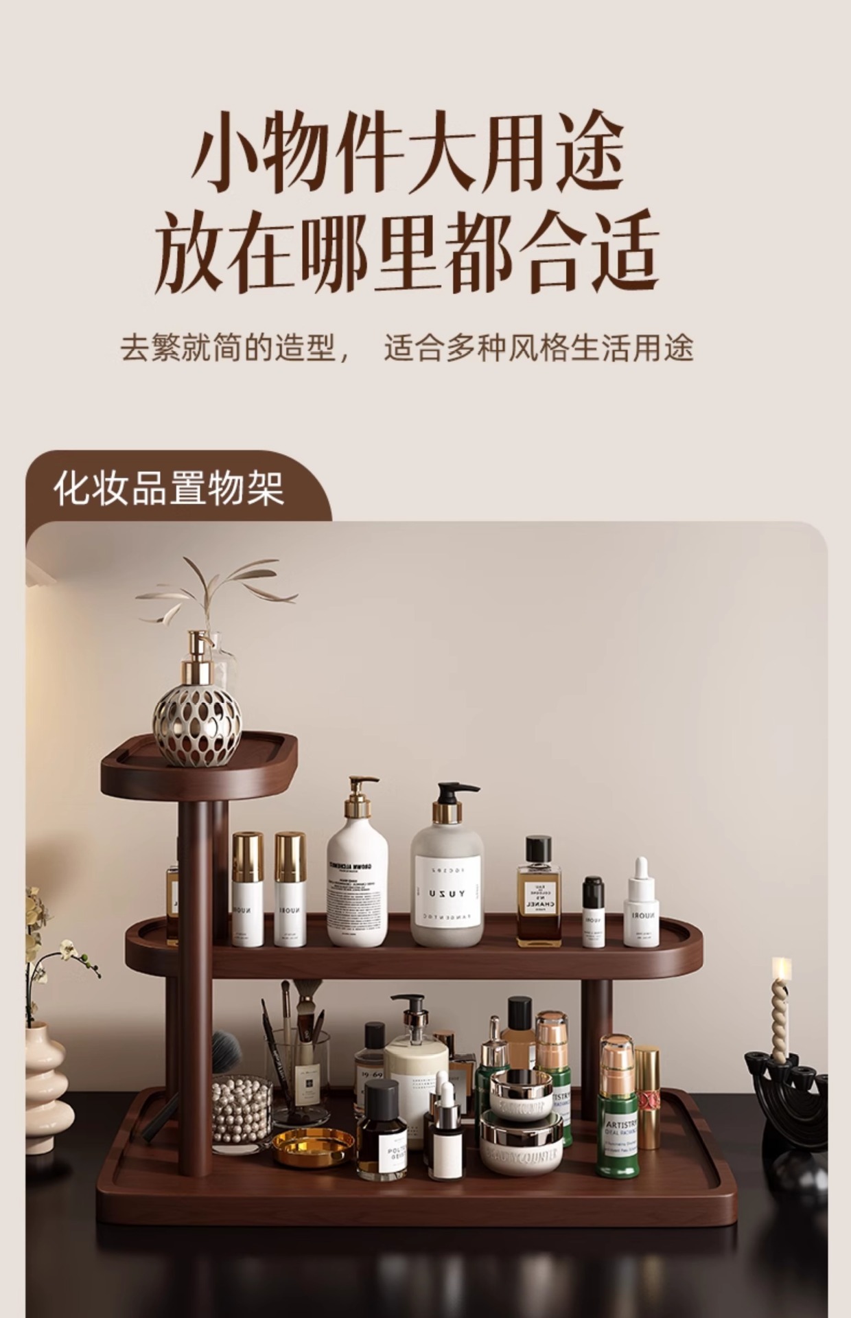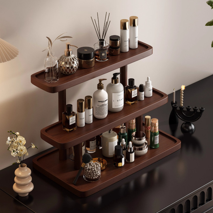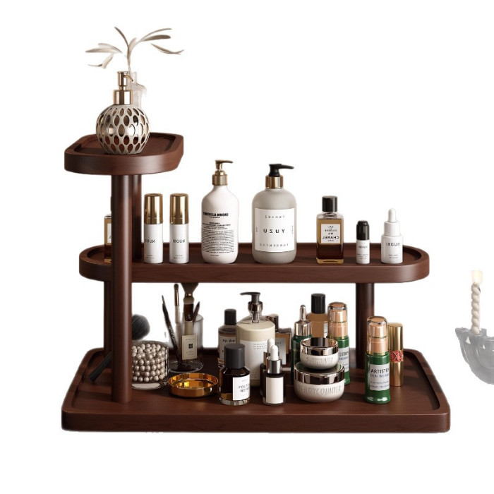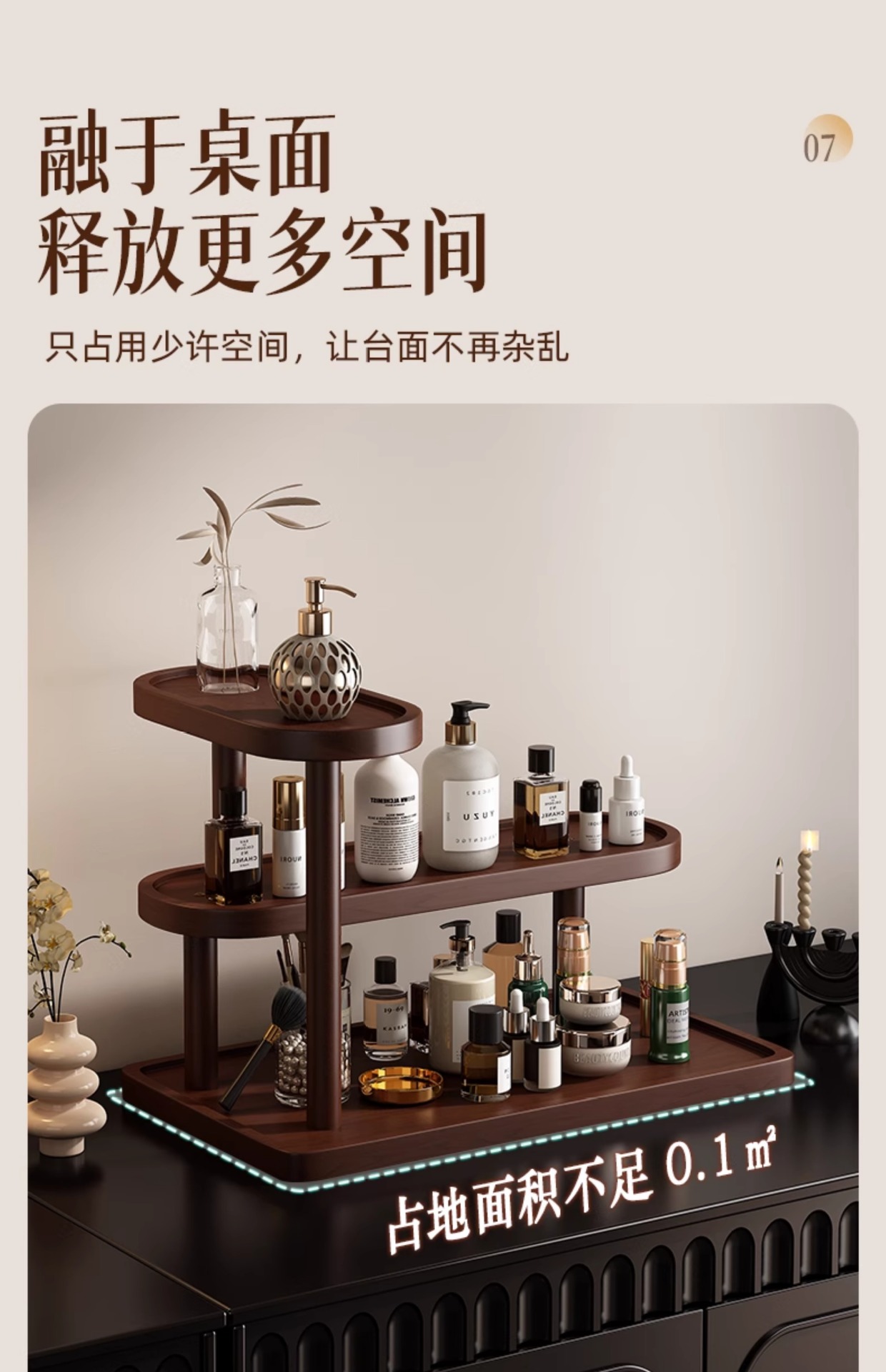 復古實木桌面梳妝台護膚品置物架多層口紅香水化妝品收納整理架