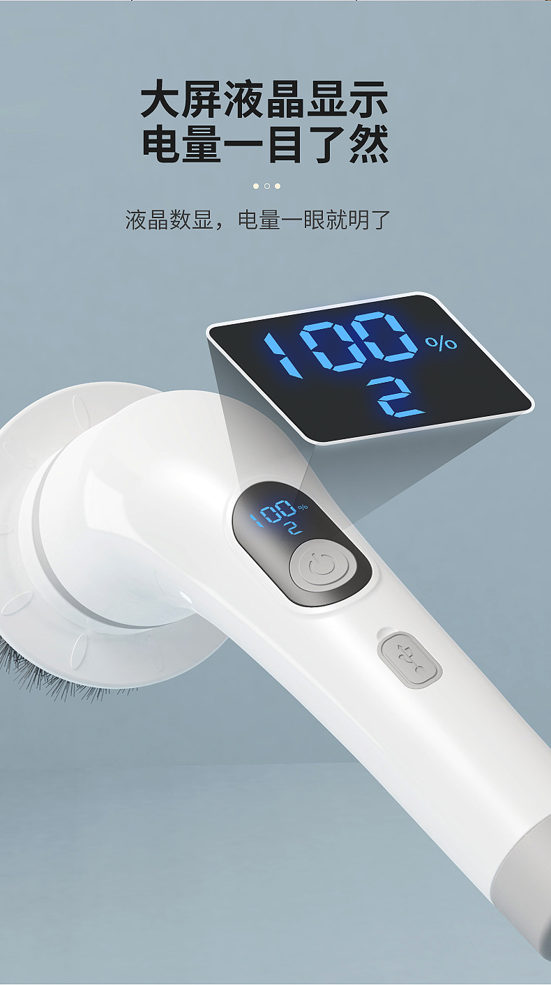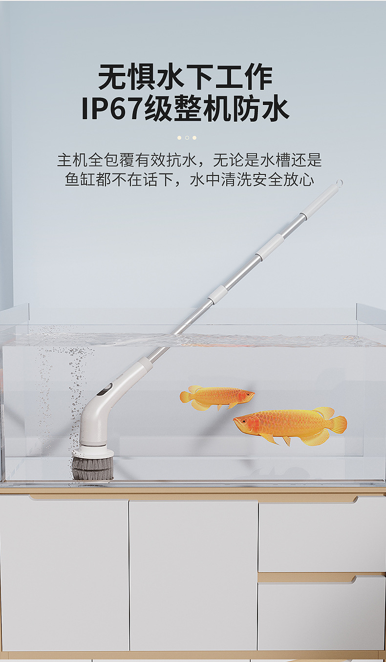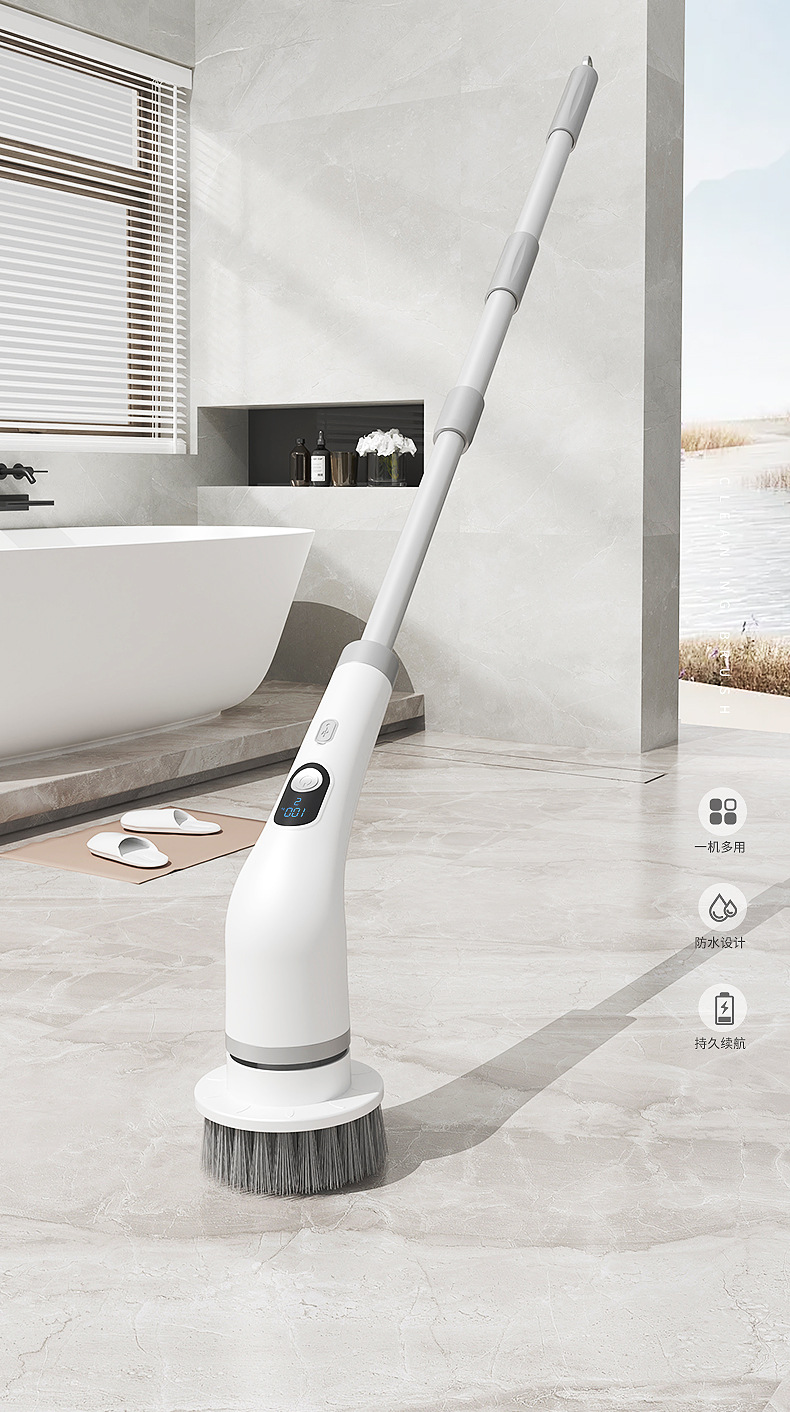 新品電動魚缸刷家用多功能液晶可伸縮長柄清潔刷廚房浴室清潔神器