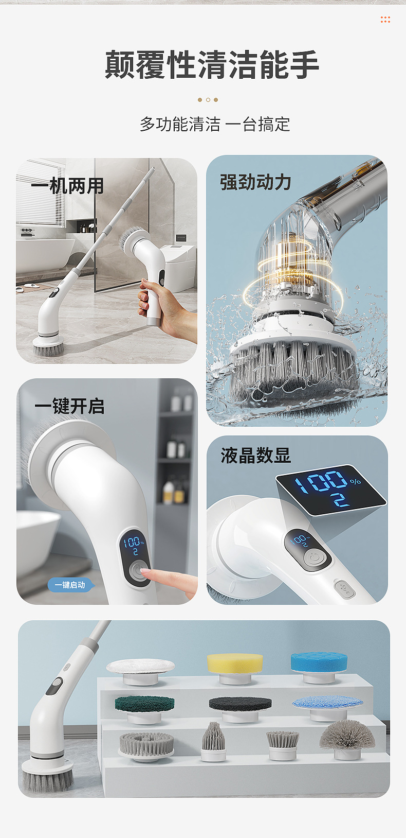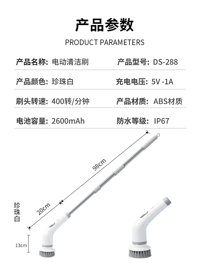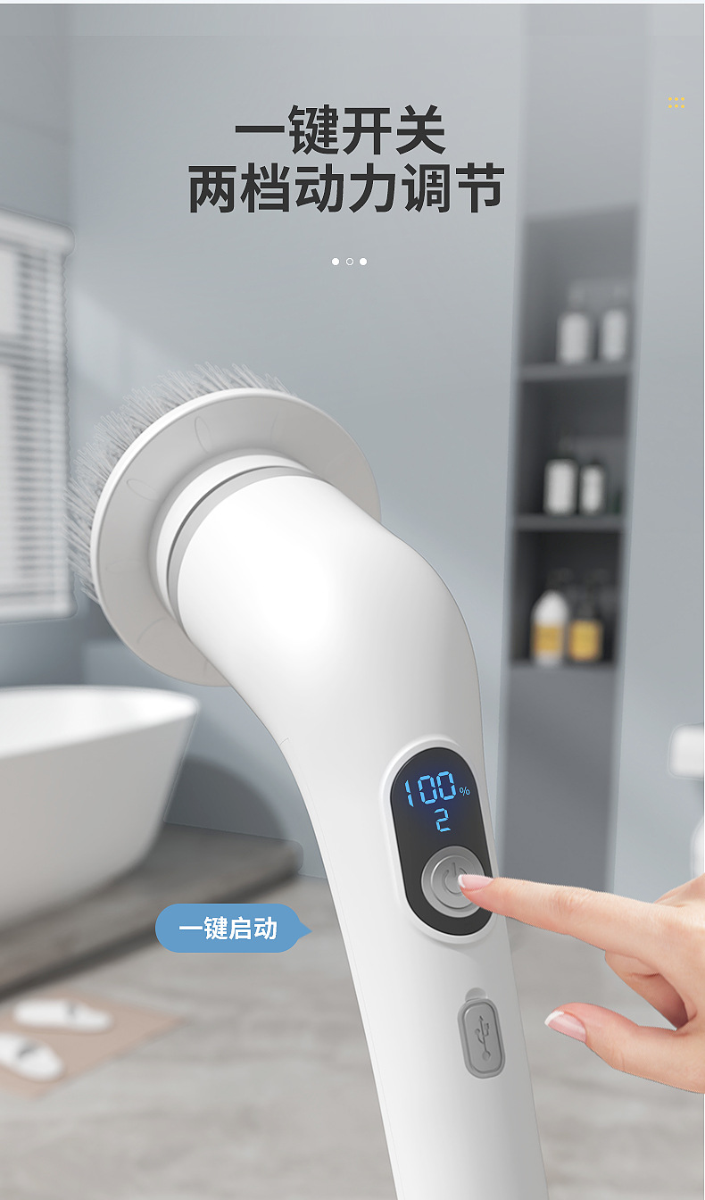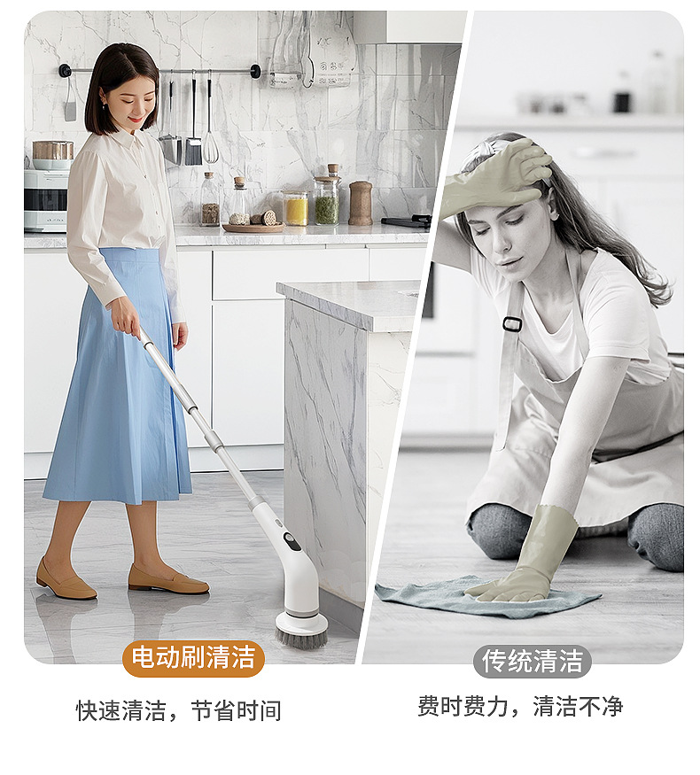 新品電動魚缸刷家用多功能液晶可伸縮長柄清潔刷廚房浴室清潔神器