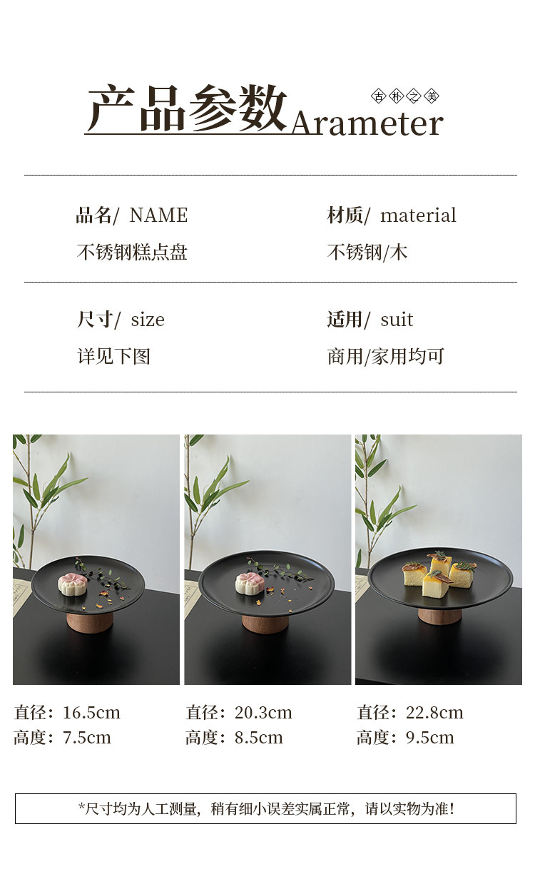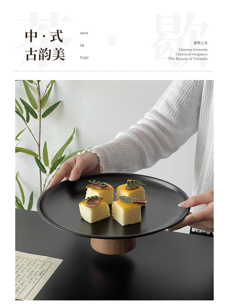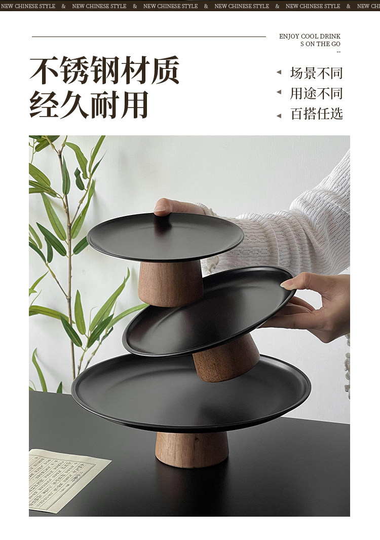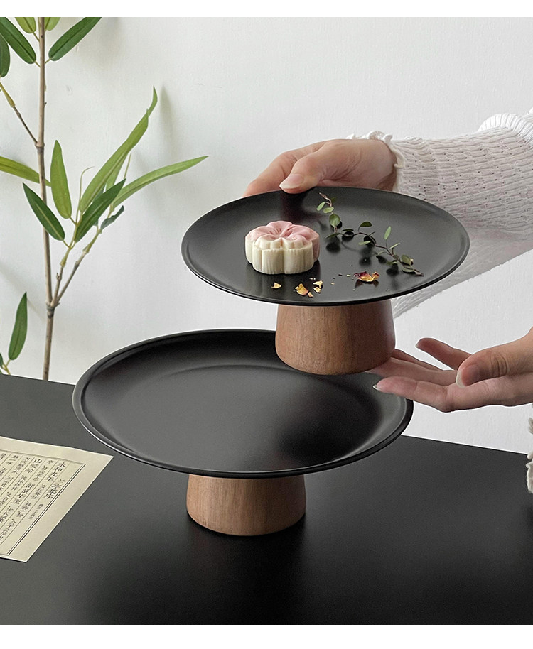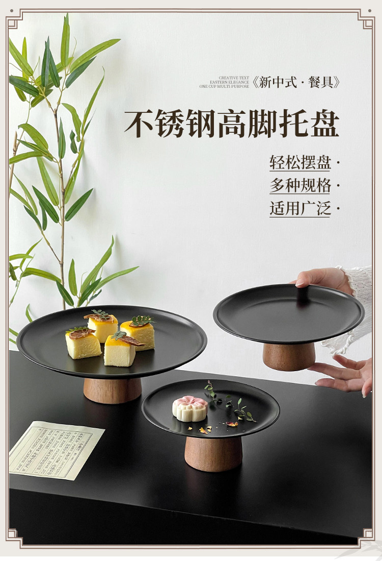 黑色高腳茶點盤茶幾零食擺放盤高級感鏽鋼果盤點心糖果盤甜盤