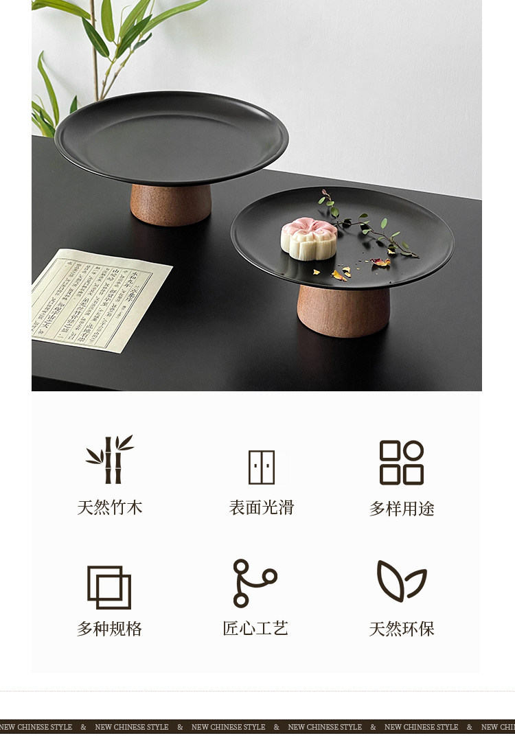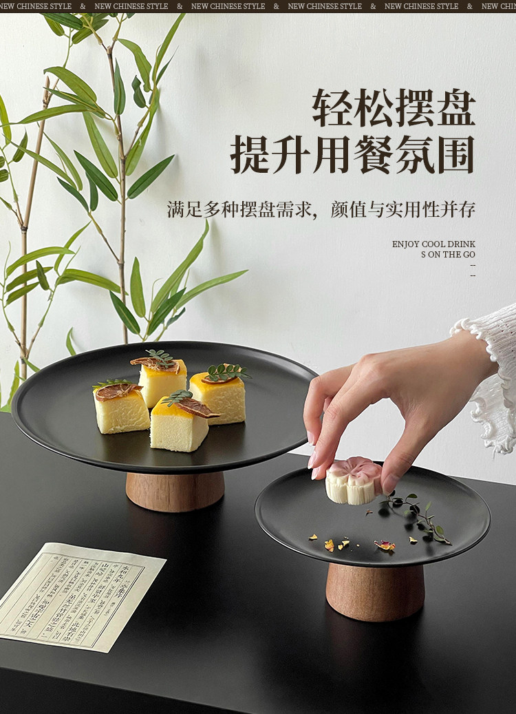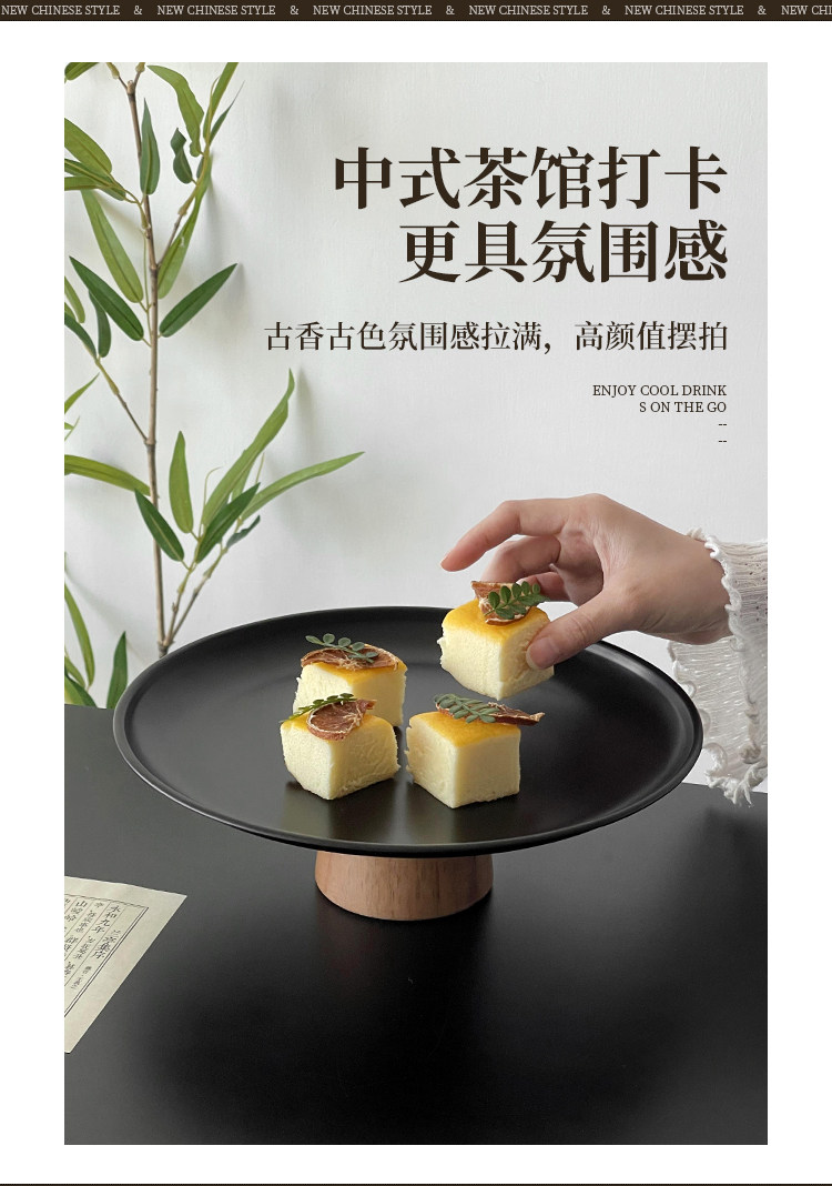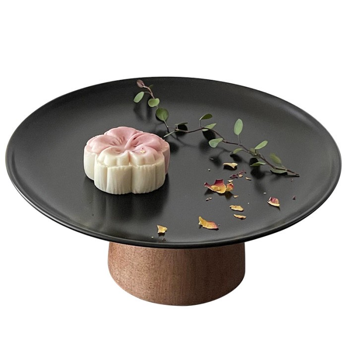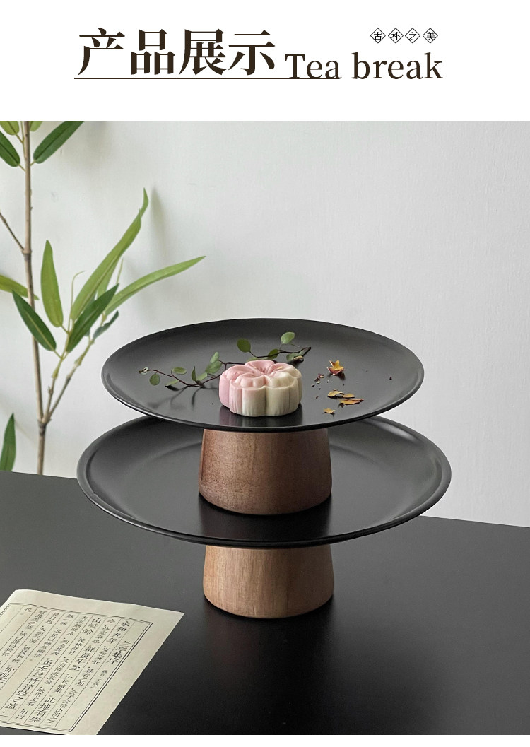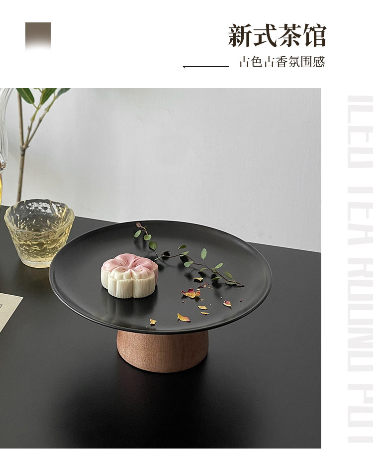 黑色高腳茶點盤茶幾零食擺放盤高級感鏽鋼果盤點心糖果盤甜盤