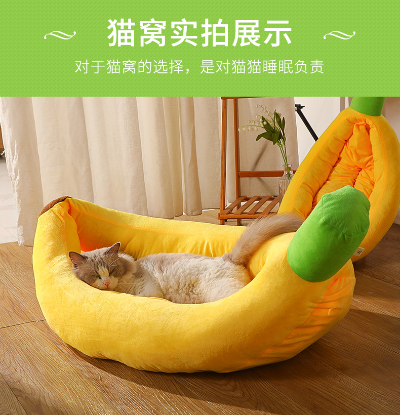秋冬季可拆洗四季加厚香蕉貓窩寵物床貓窩保暖中小型貓窩