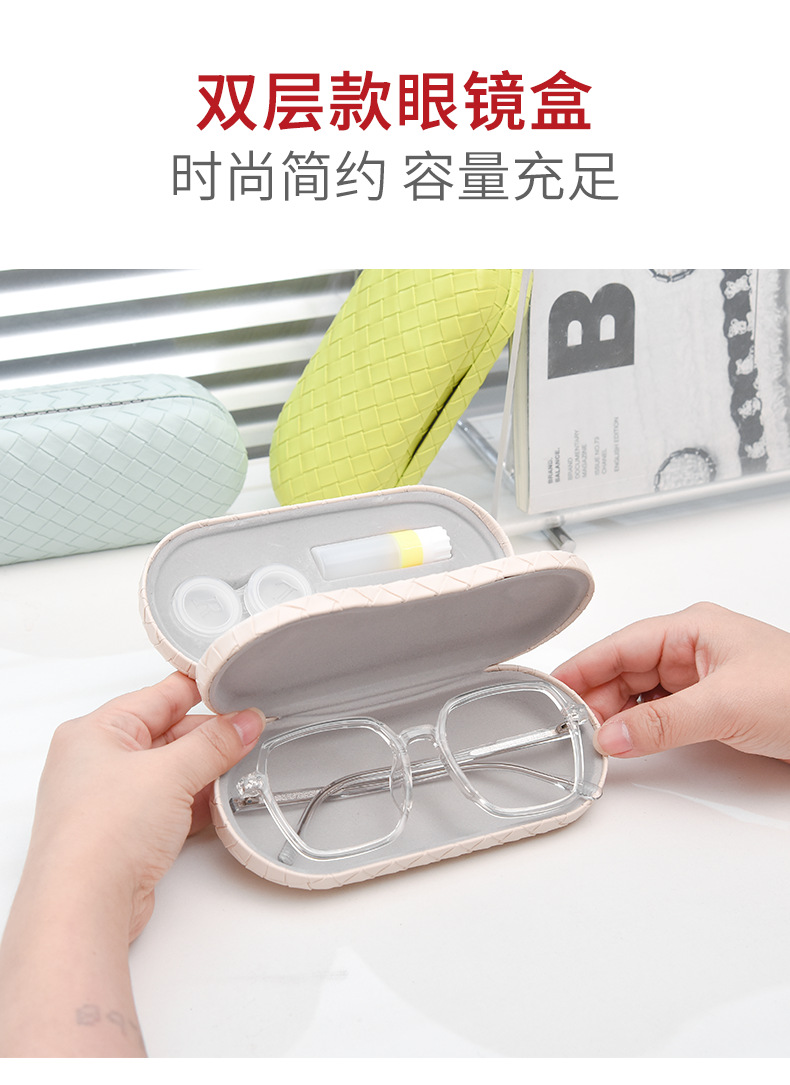 雙層兩用眼鏡盒隱形雙副美瞳近視鏡架通用皮質雙聯盒收納