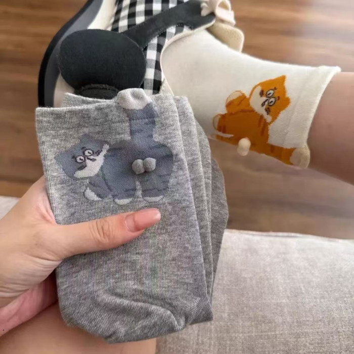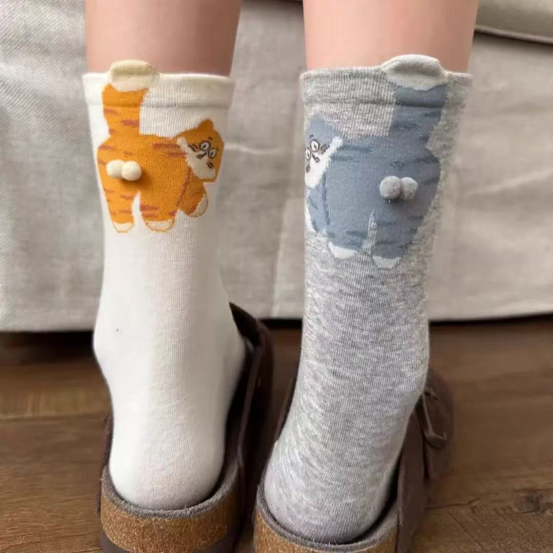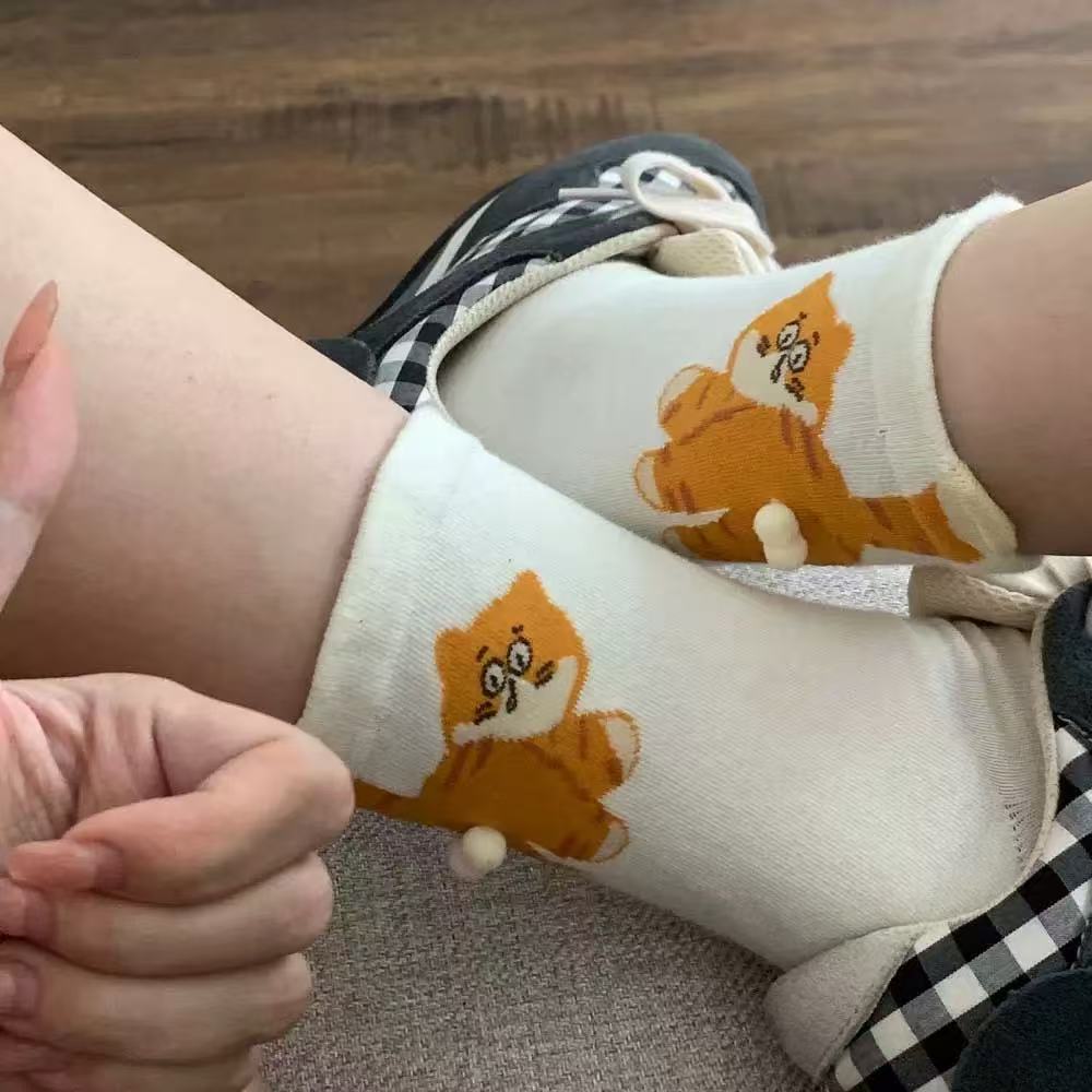 搞蛋可愛手工蛋蛋貓咪長襪女小紅書爆款抽象立體貓貓蛋襪子搞怪襪