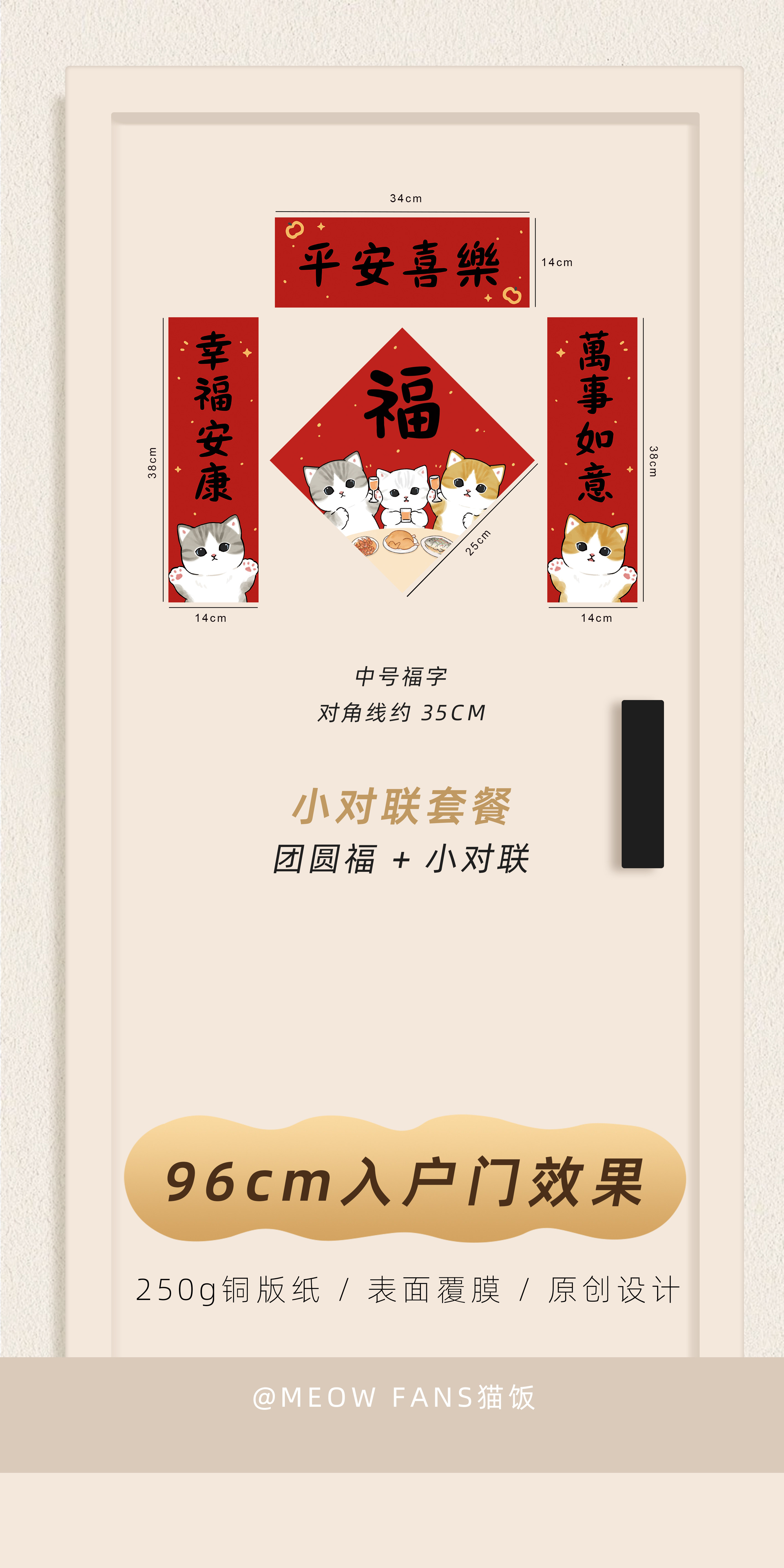 貓飯 2026新年揮春福字貓咪春節裝飾門貼入戶門mofusand港版春聯