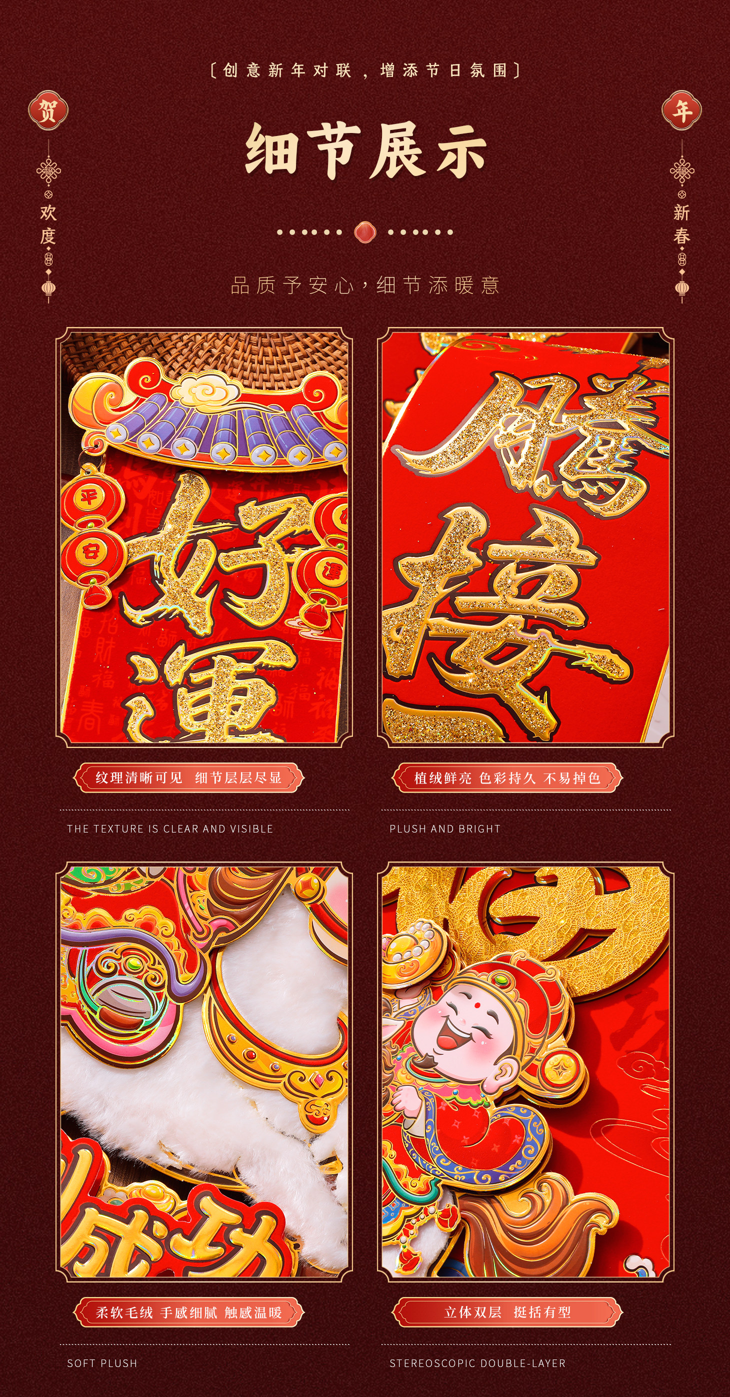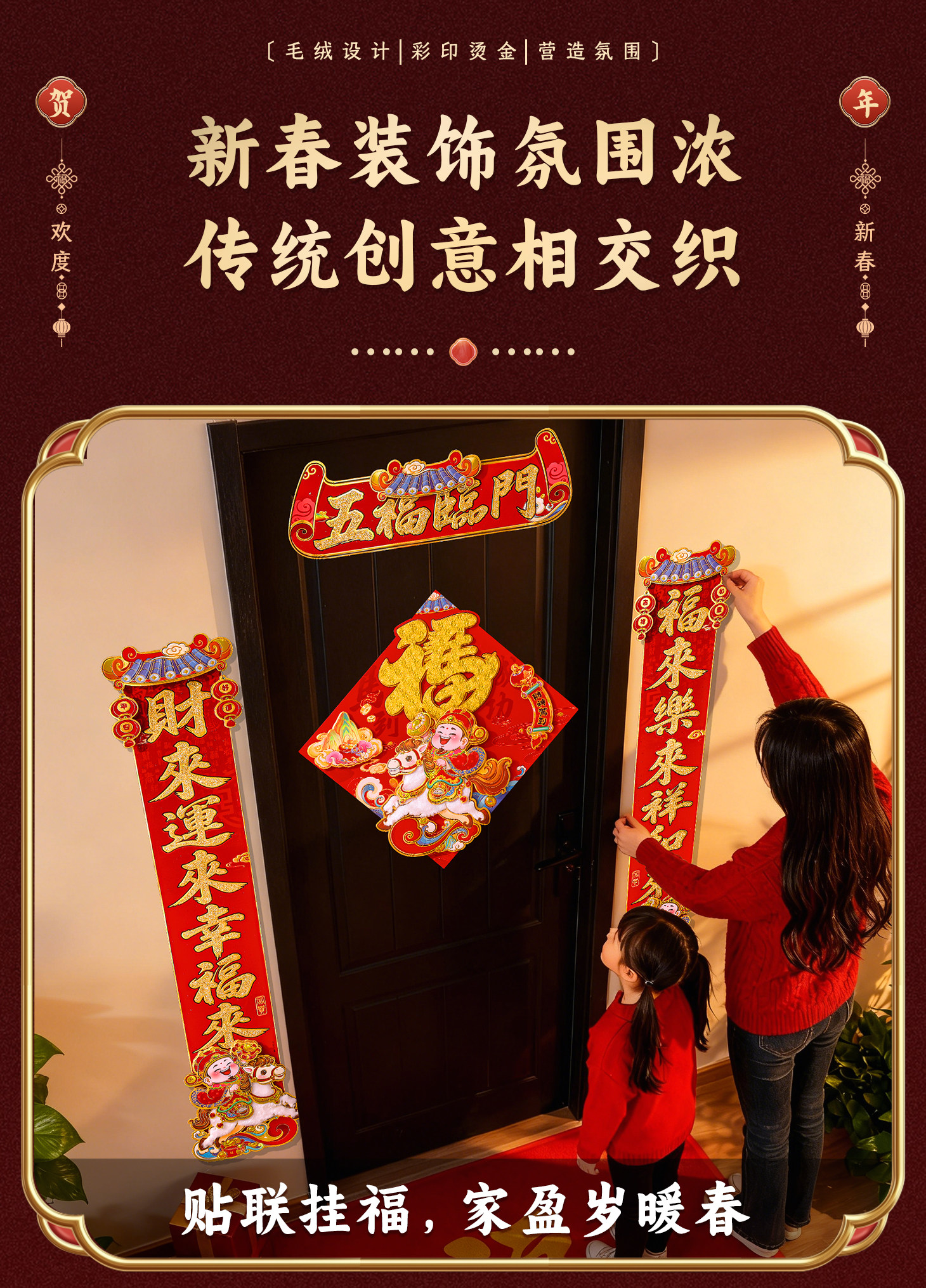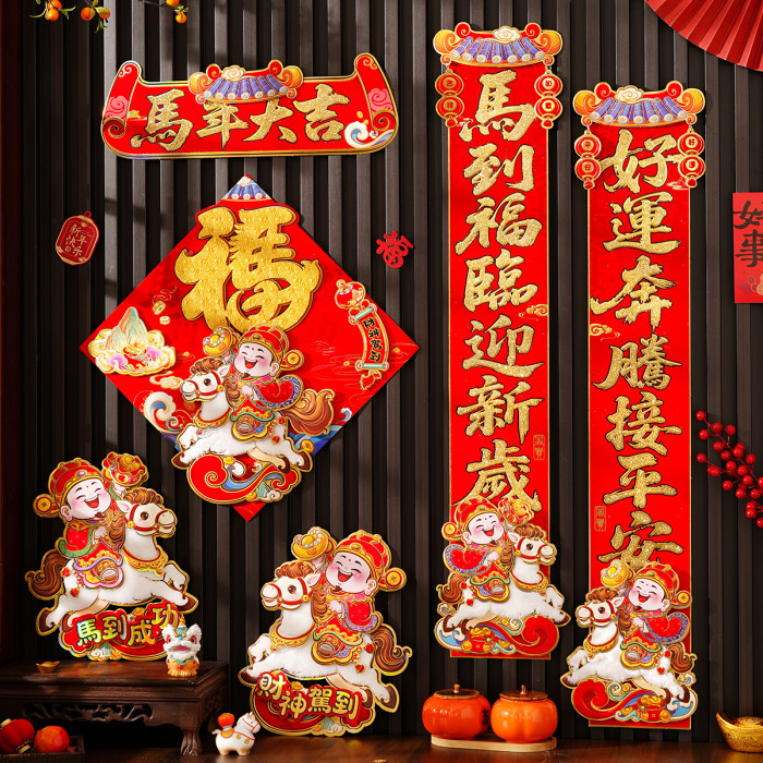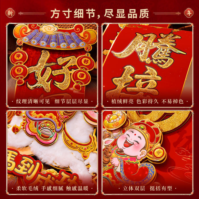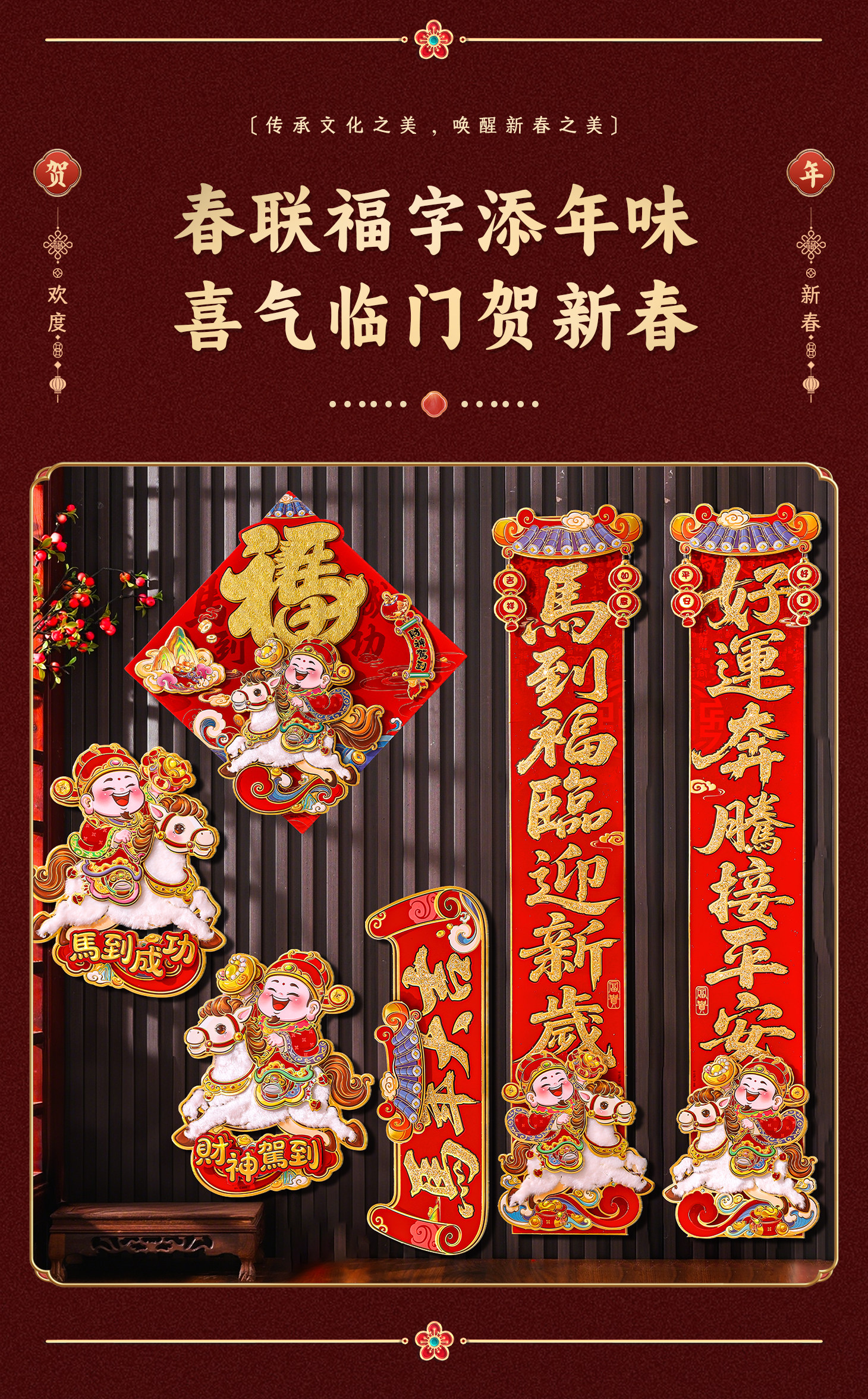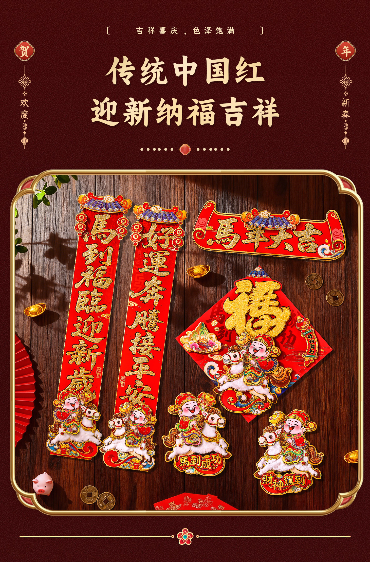 對聯2026馬年植絨春聯過年卡通福字立體毛絨馬上發財家用門貼布置