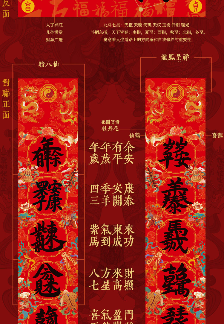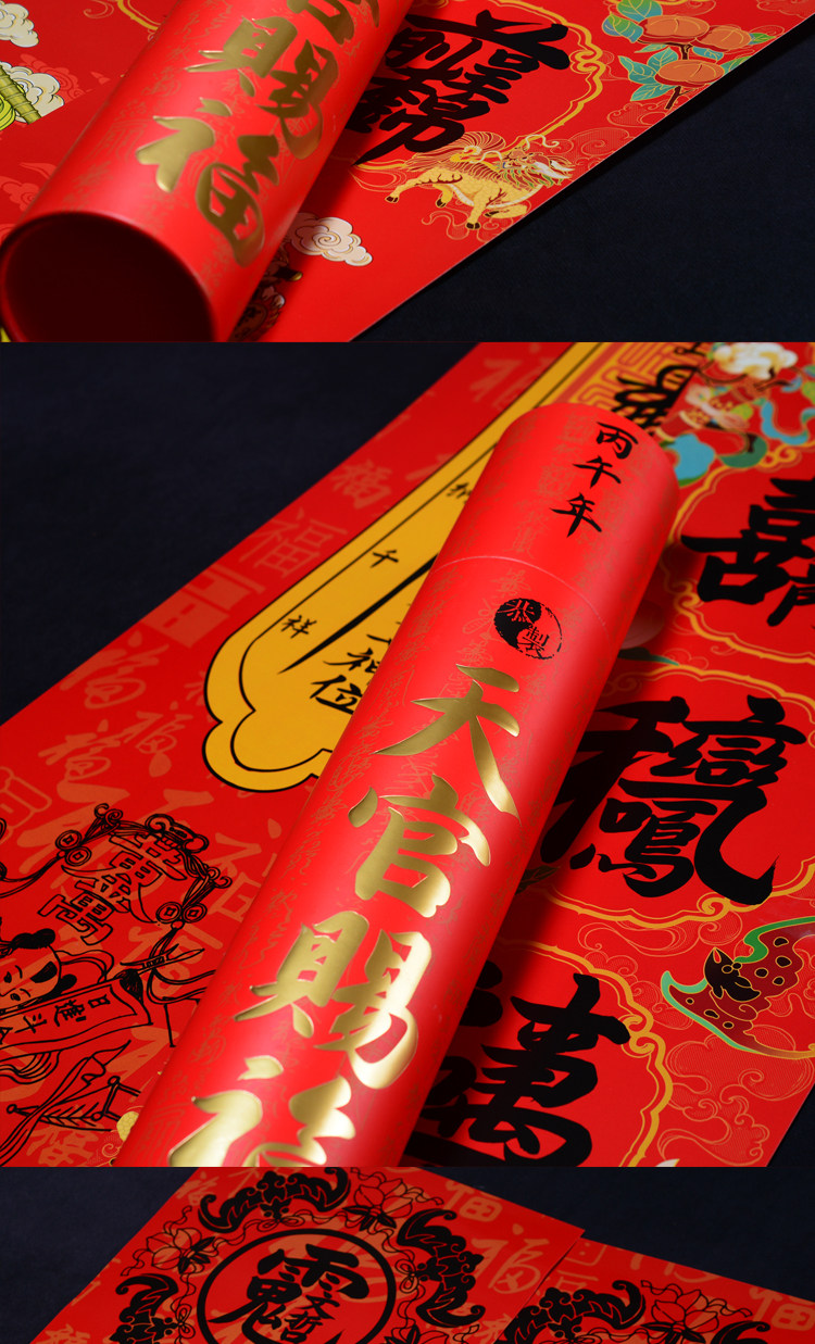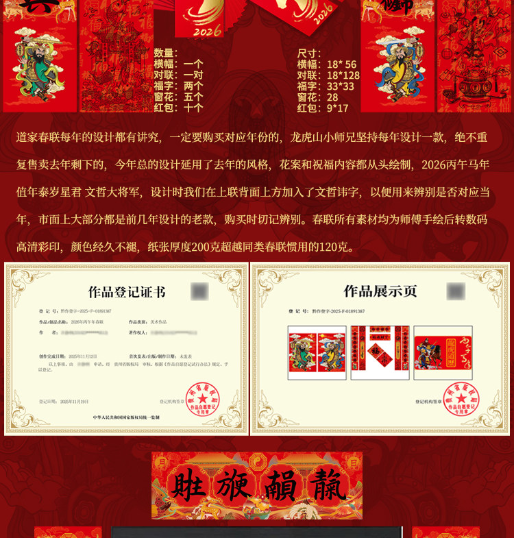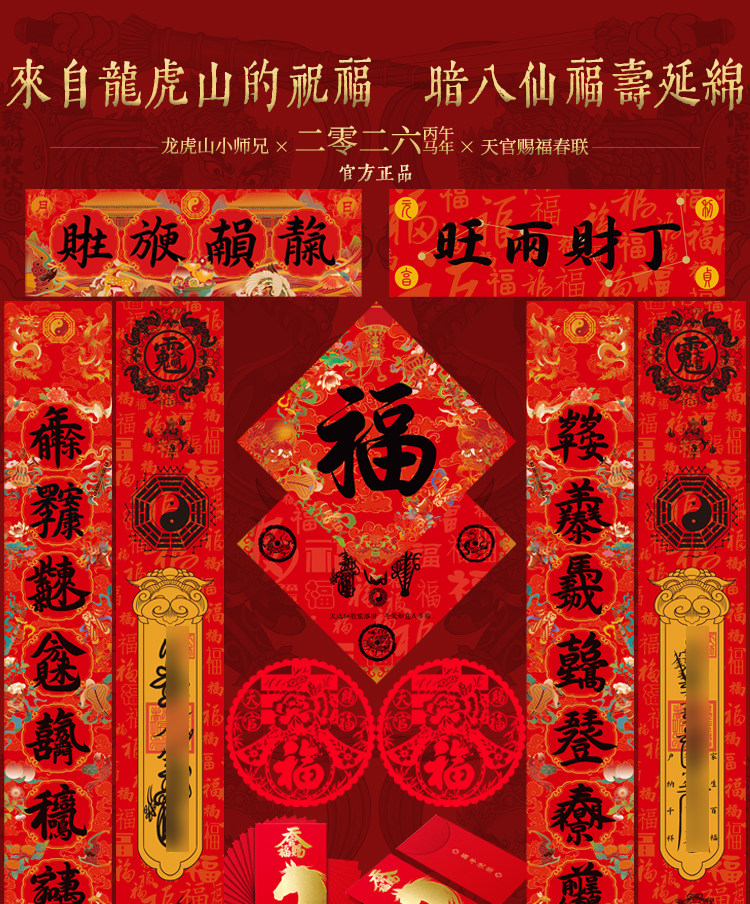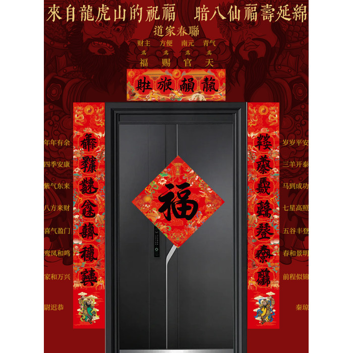 龍虎山春聯直髮2026丙午年吉祥春聯正面福字背面太極八卦圖