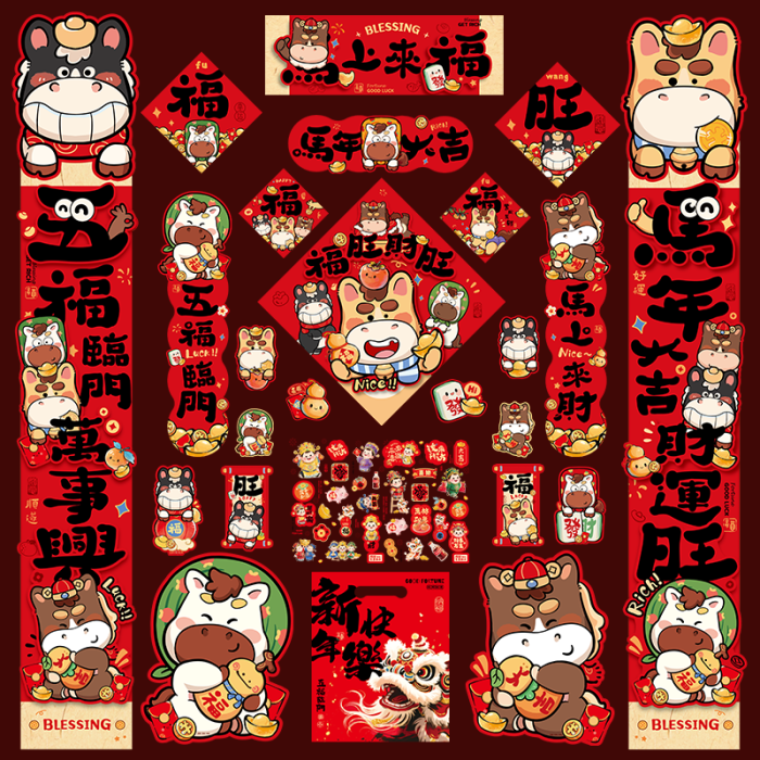 2026新款馬年春節對聯福字禮包卡通家用新大門貼春聯入戶門貼過年