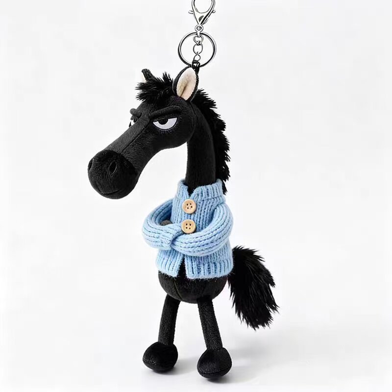 小拽馬黑馬毛絨掛件2026馬年吉祥物公仔鑰匙釦包掛飾玩偶禮物