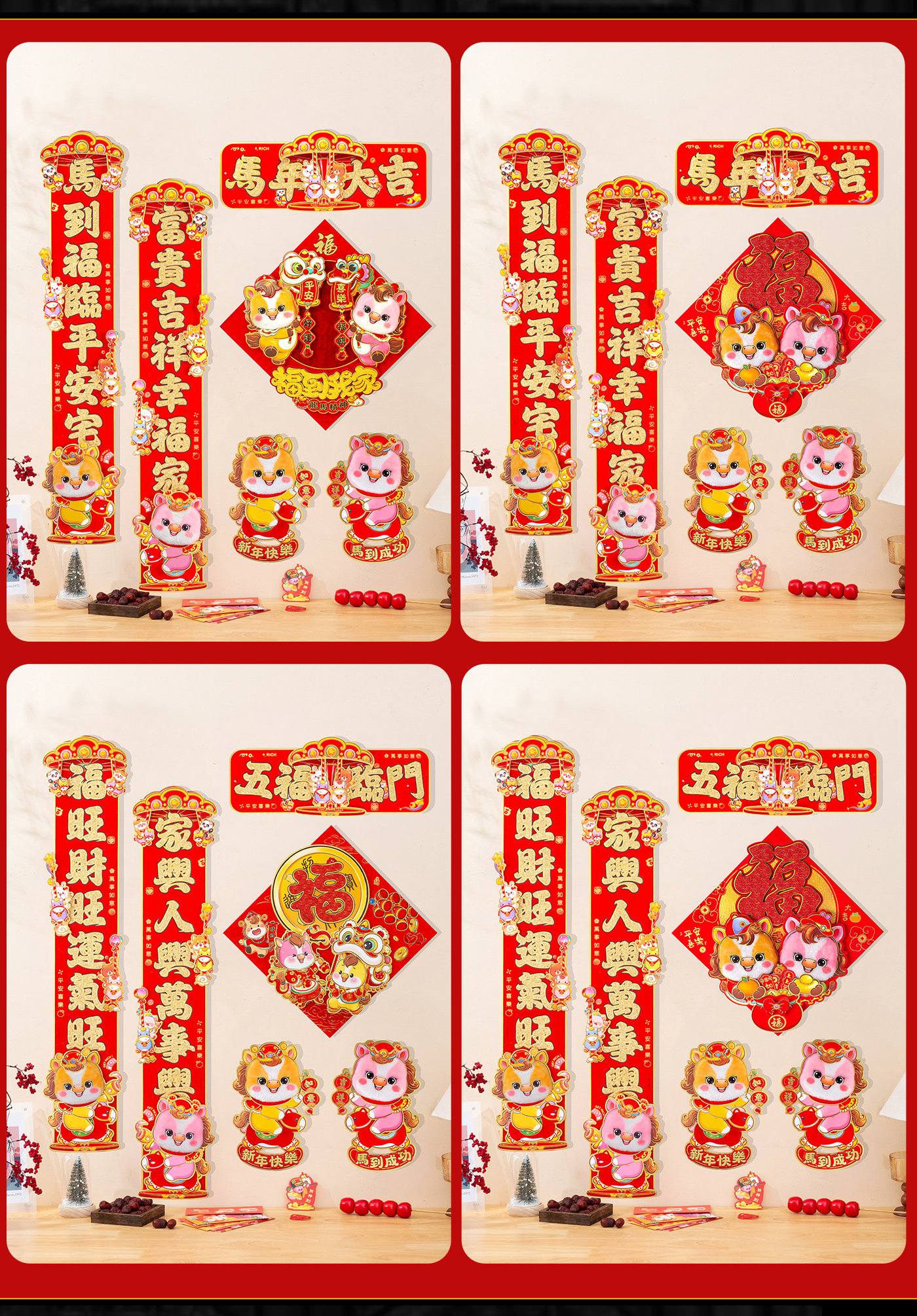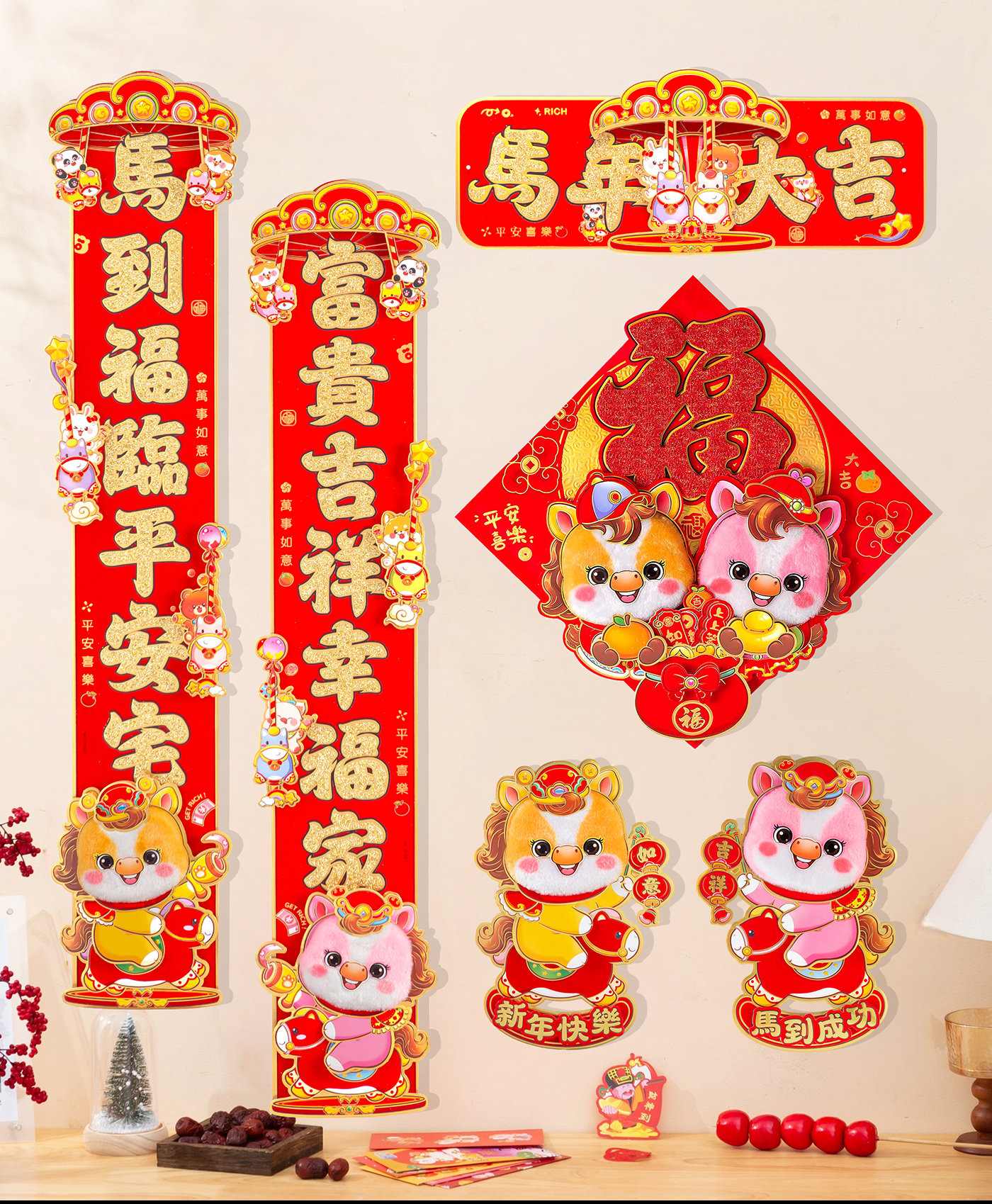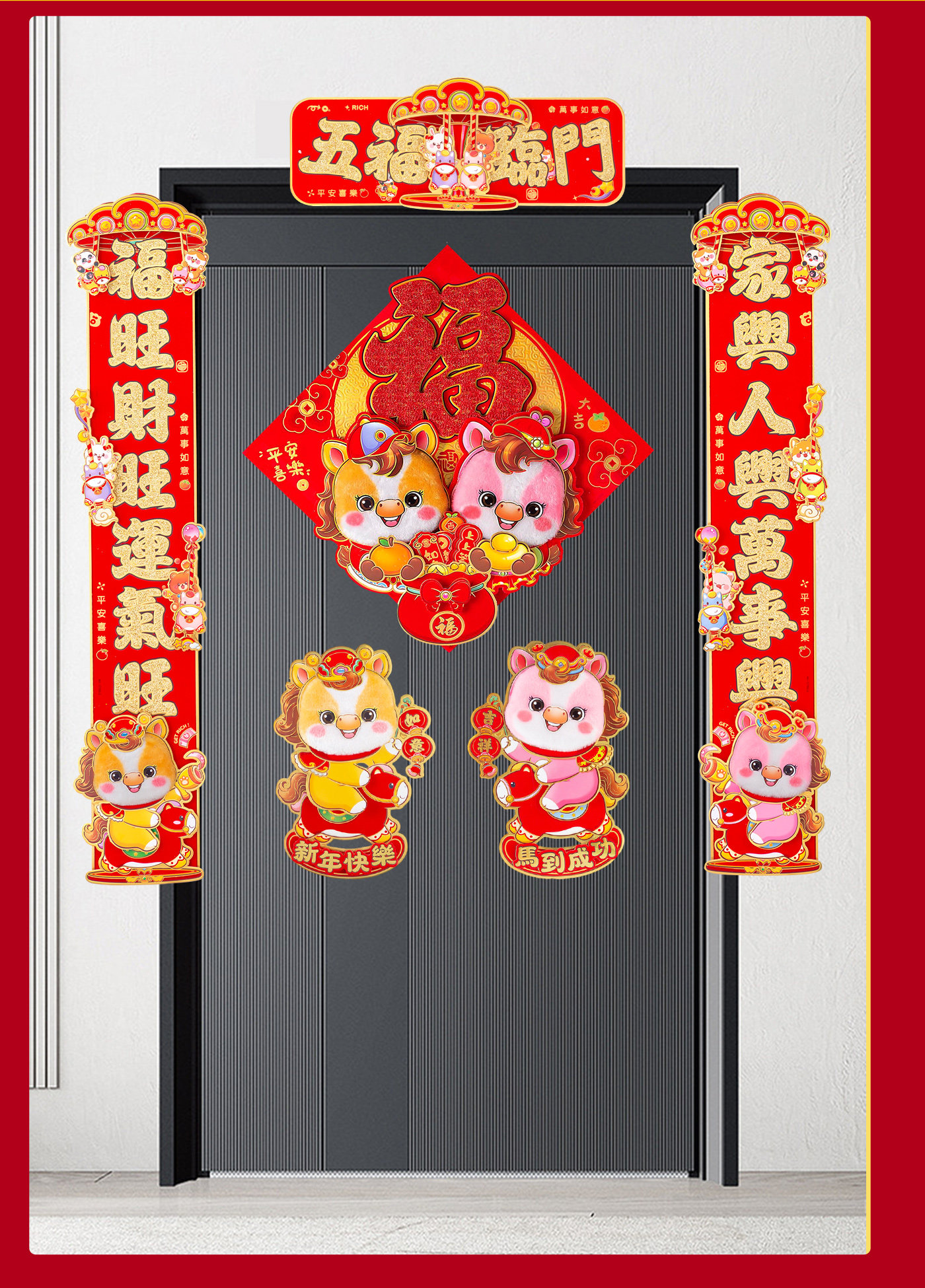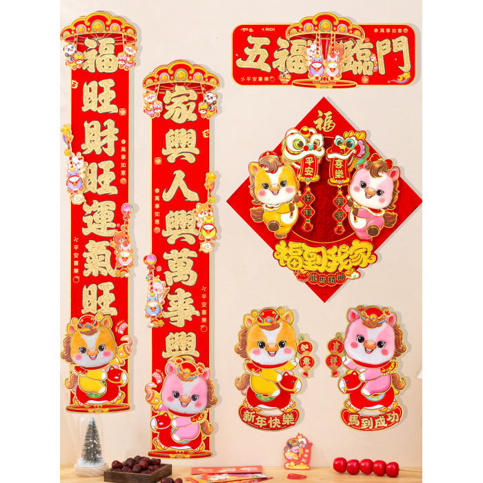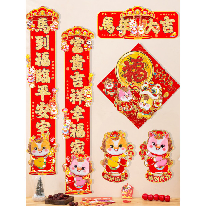 對聯立體新年福字春節門貼過年大門毛絨生肖自粘2026馬年裝飾春聯