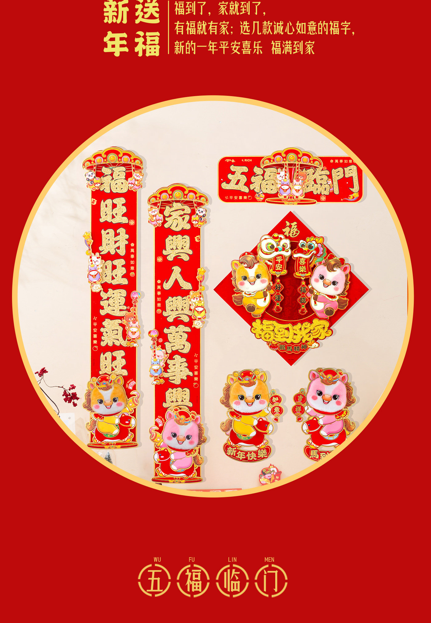 | 對聯內容 | 五福臨門 |