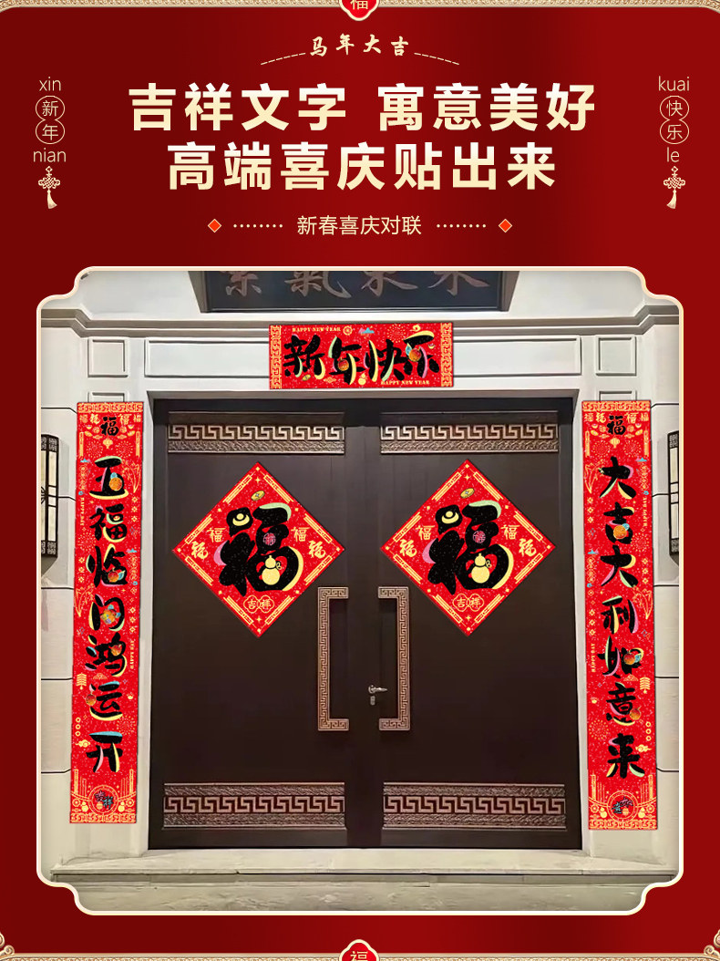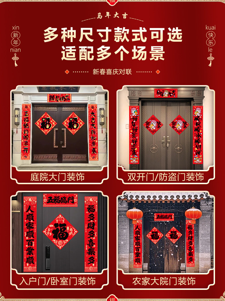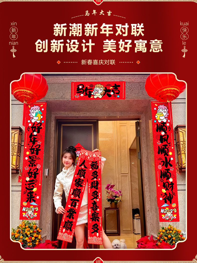 馬年2026新款對聯春節新年防水春聯新春庭院別墅大門過年喜慶裝飾