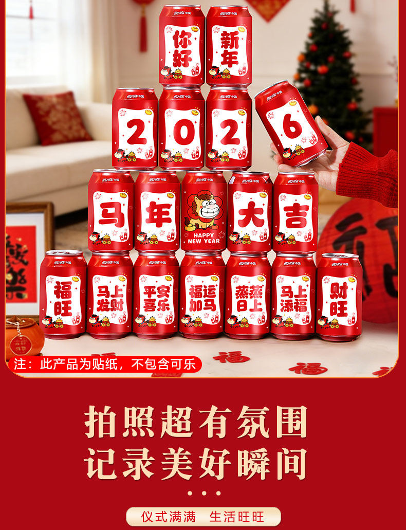 2026新年可樂貼紙馬年年會年夜飯飲料貼春節氛圍裝飾布置用品