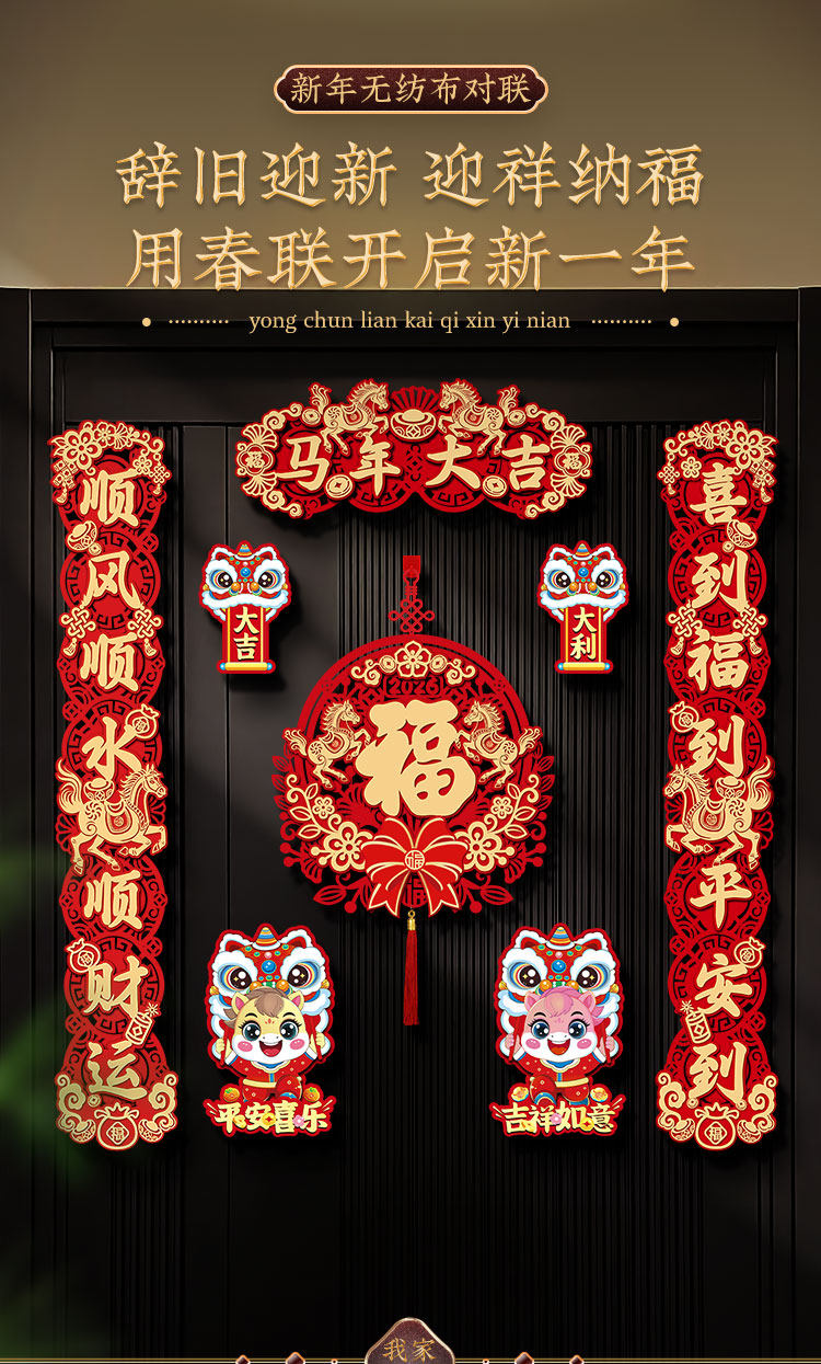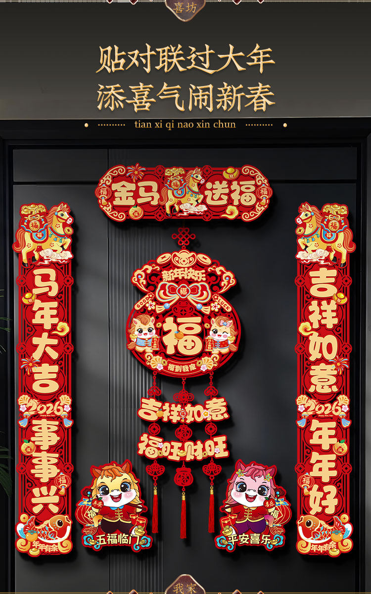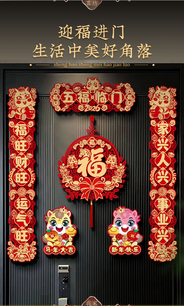 2026新款春節馬年磁吸對聯入戶大門貼福字過年春聯新年門聯裝飾品