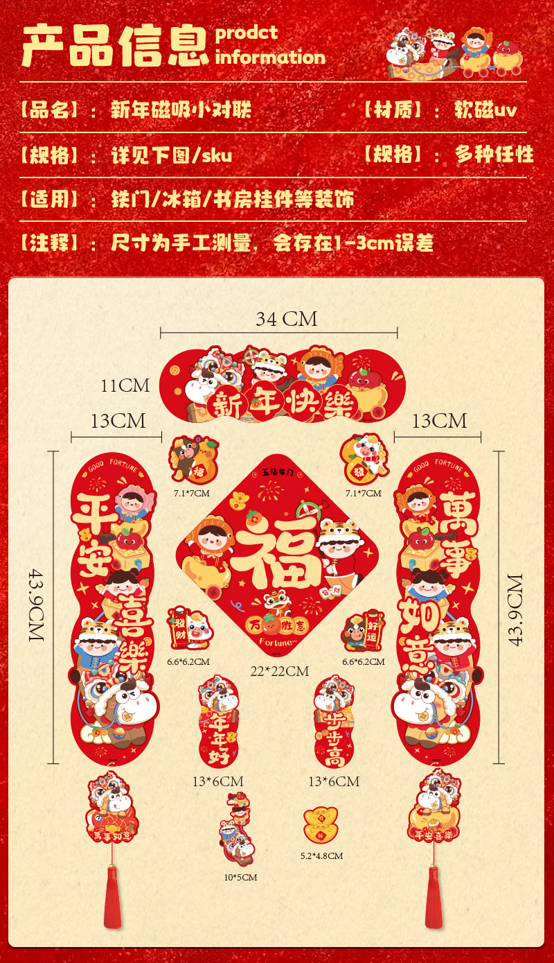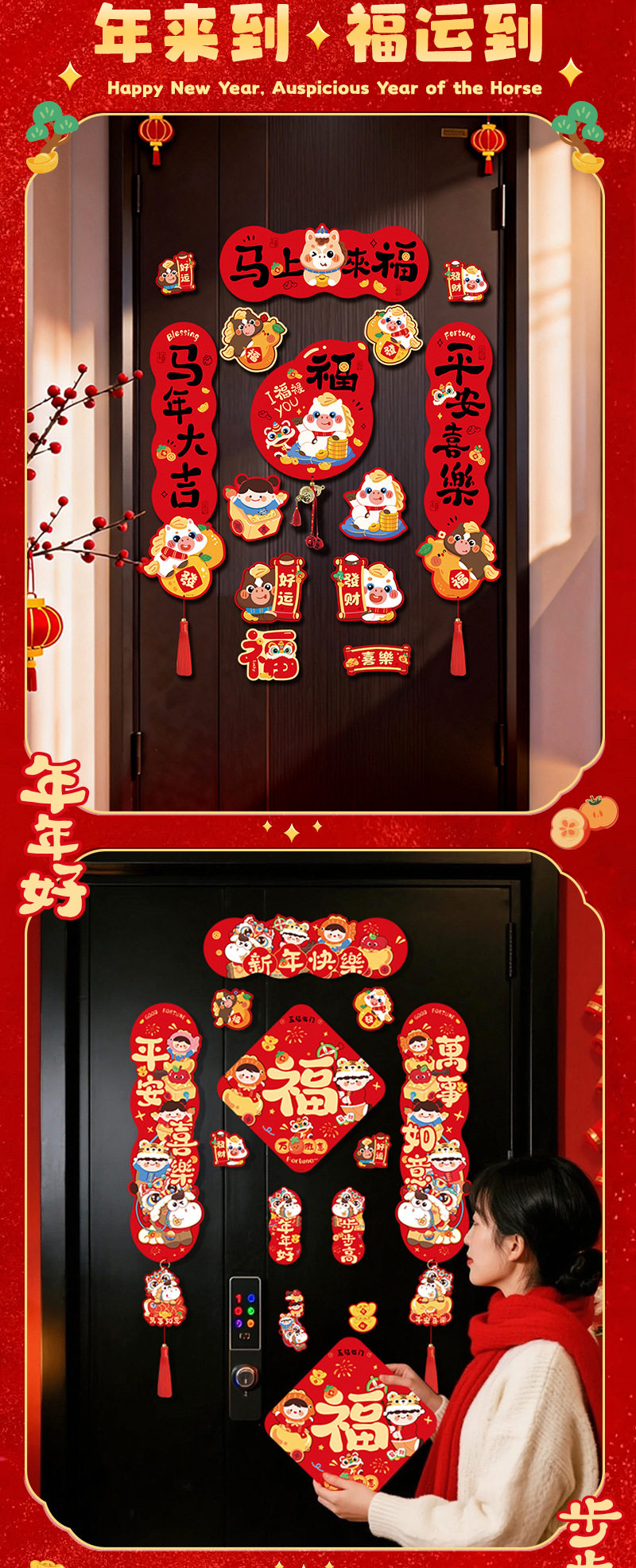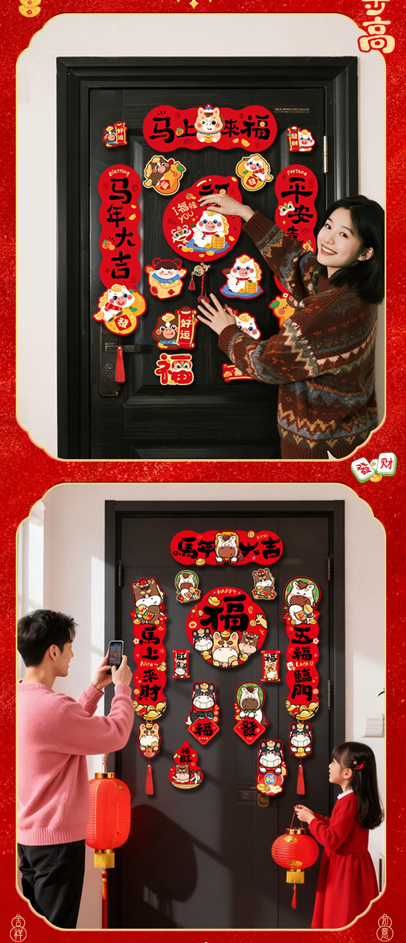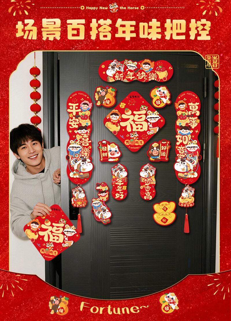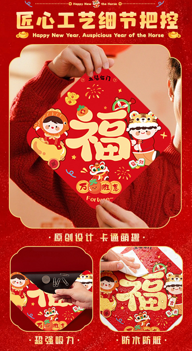 2026馬年新款四字磁吸對聯春節春聯新年福字門貼過年布置門聯裝飾
