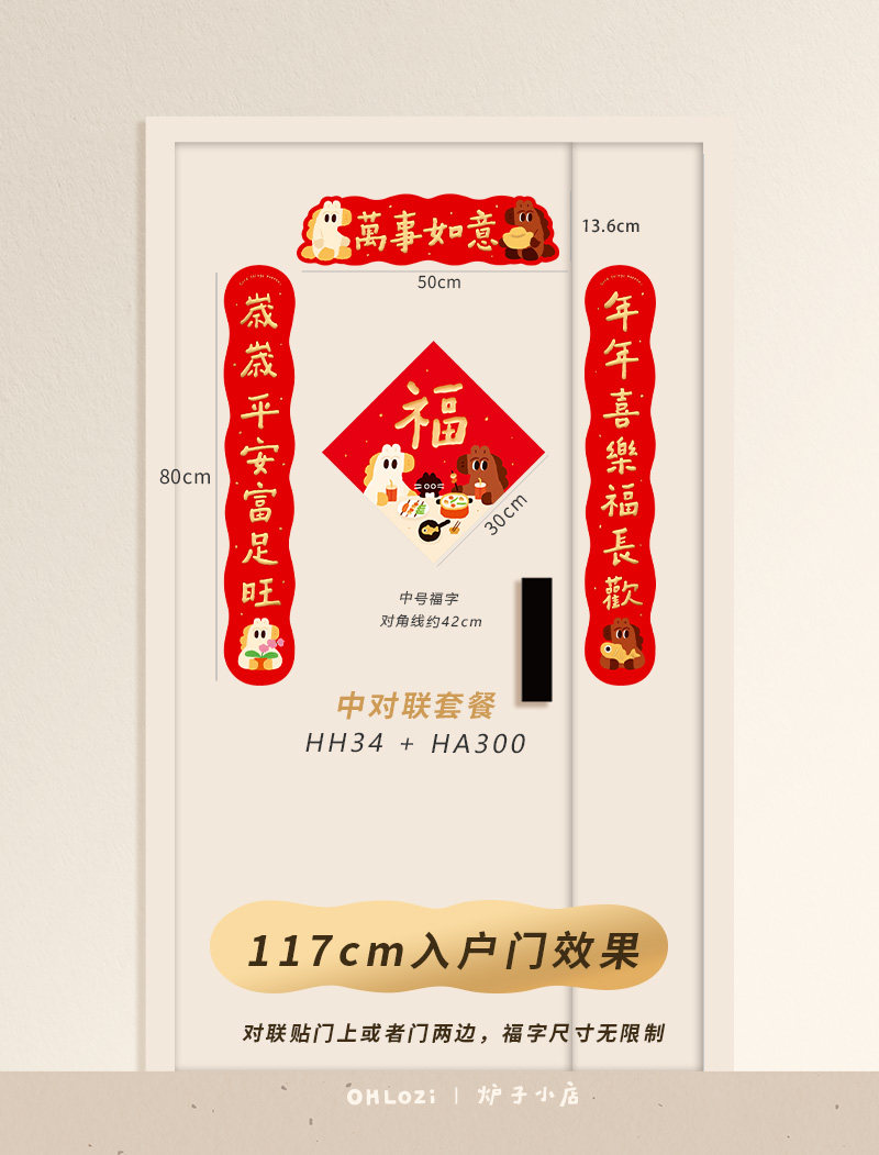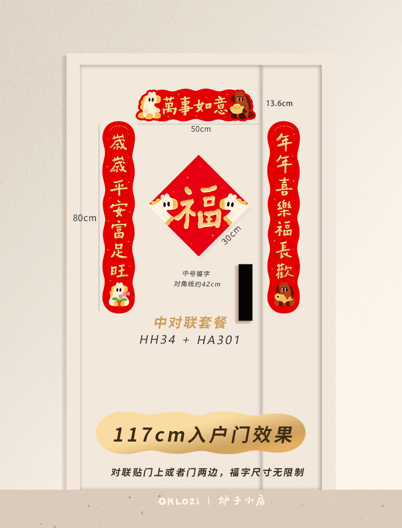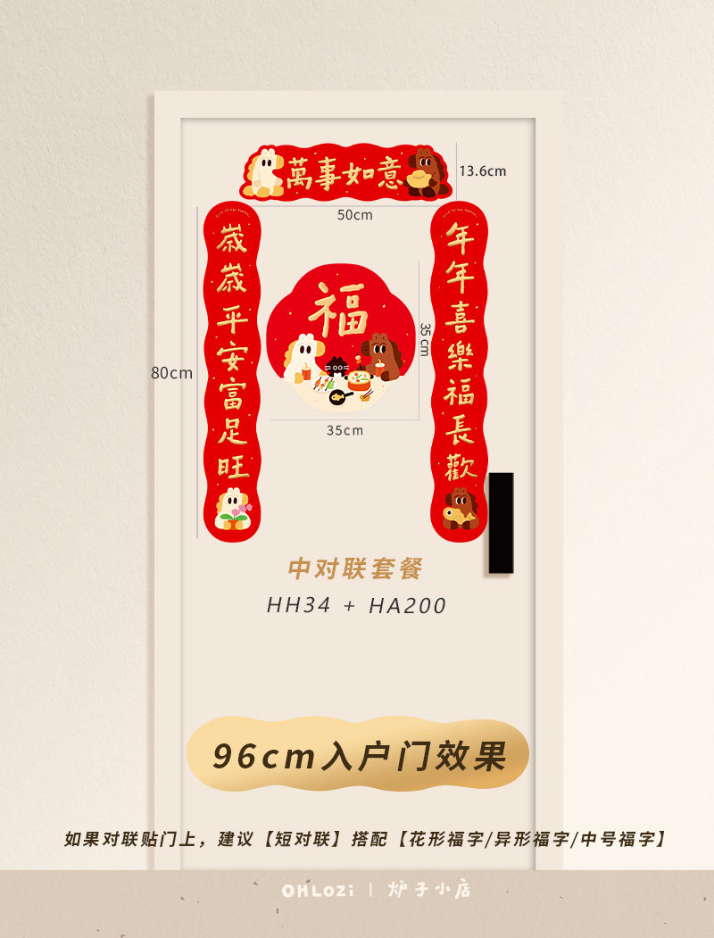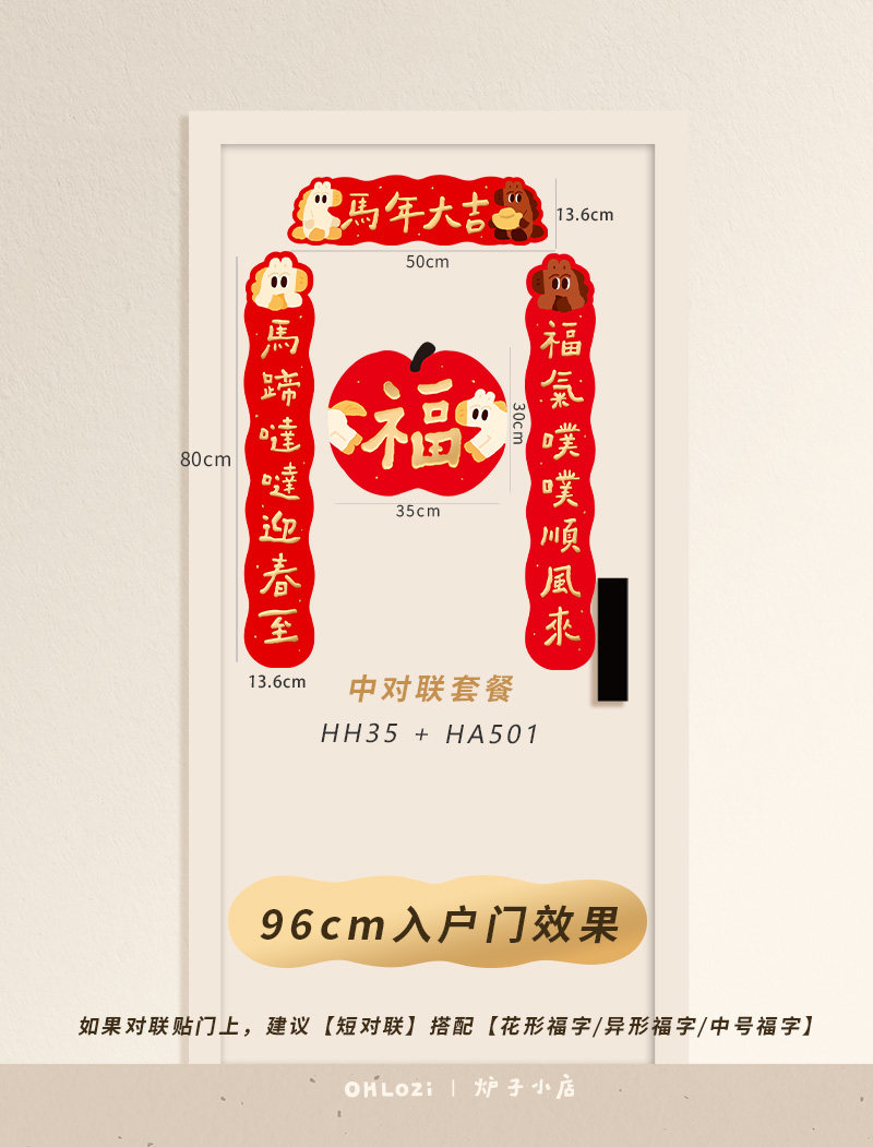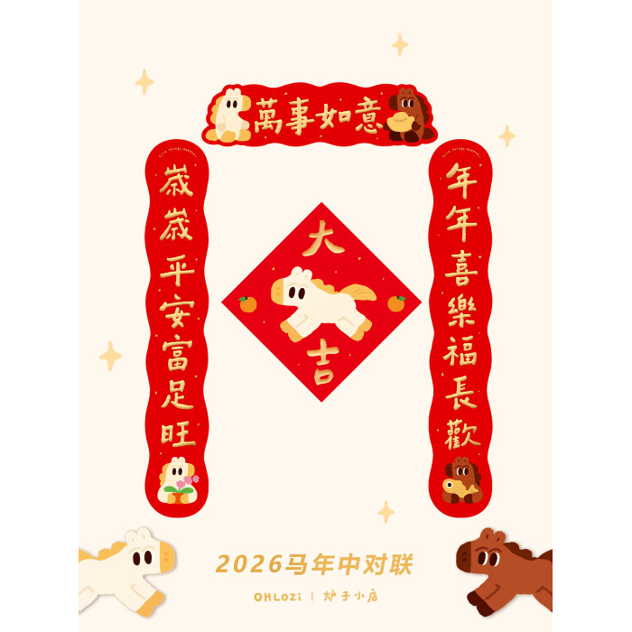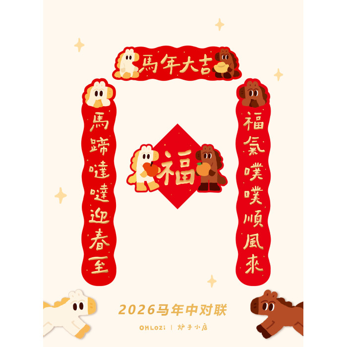 【中對聯0.8米】爐子小店2026年馬年可愛喜慶書法原創中對聯3
