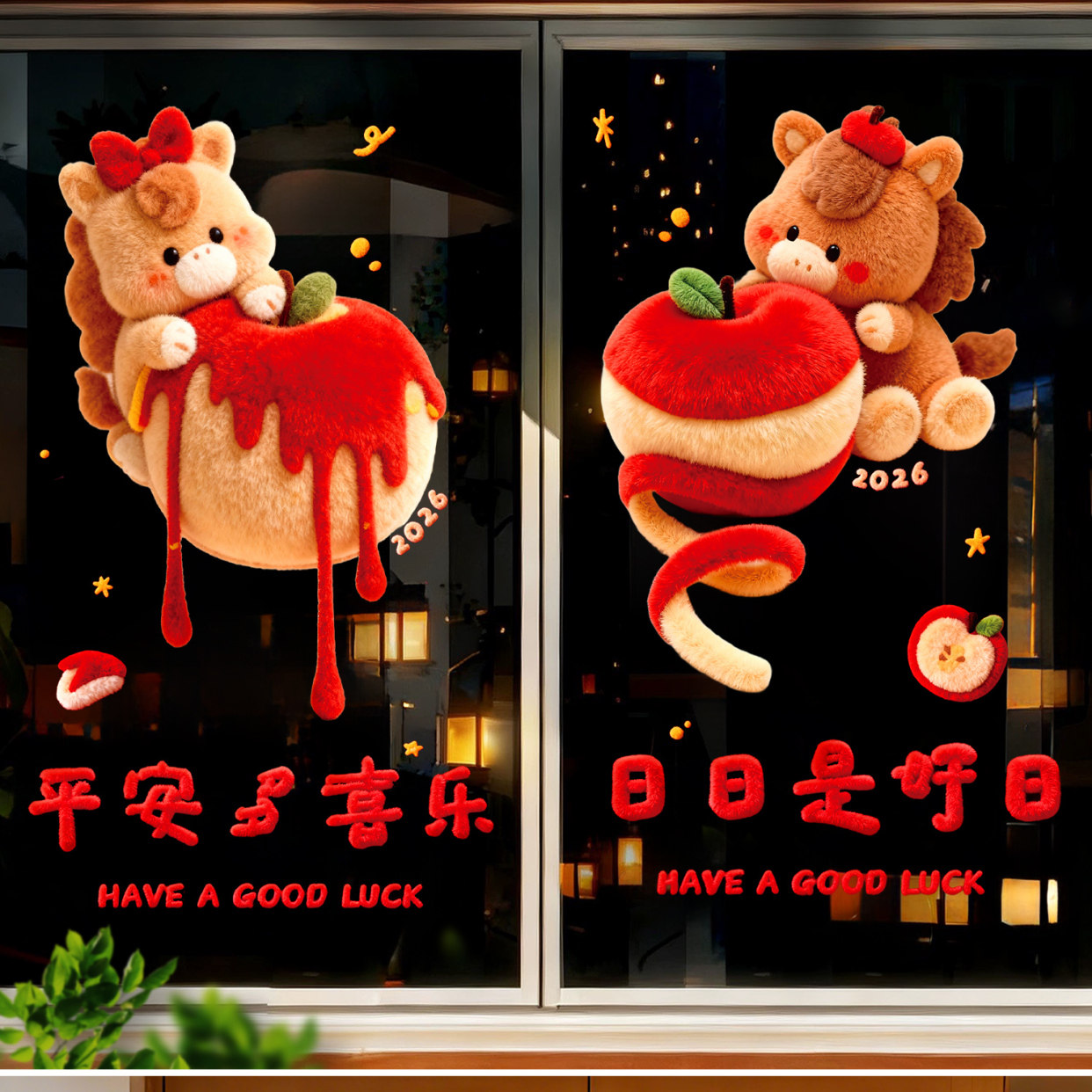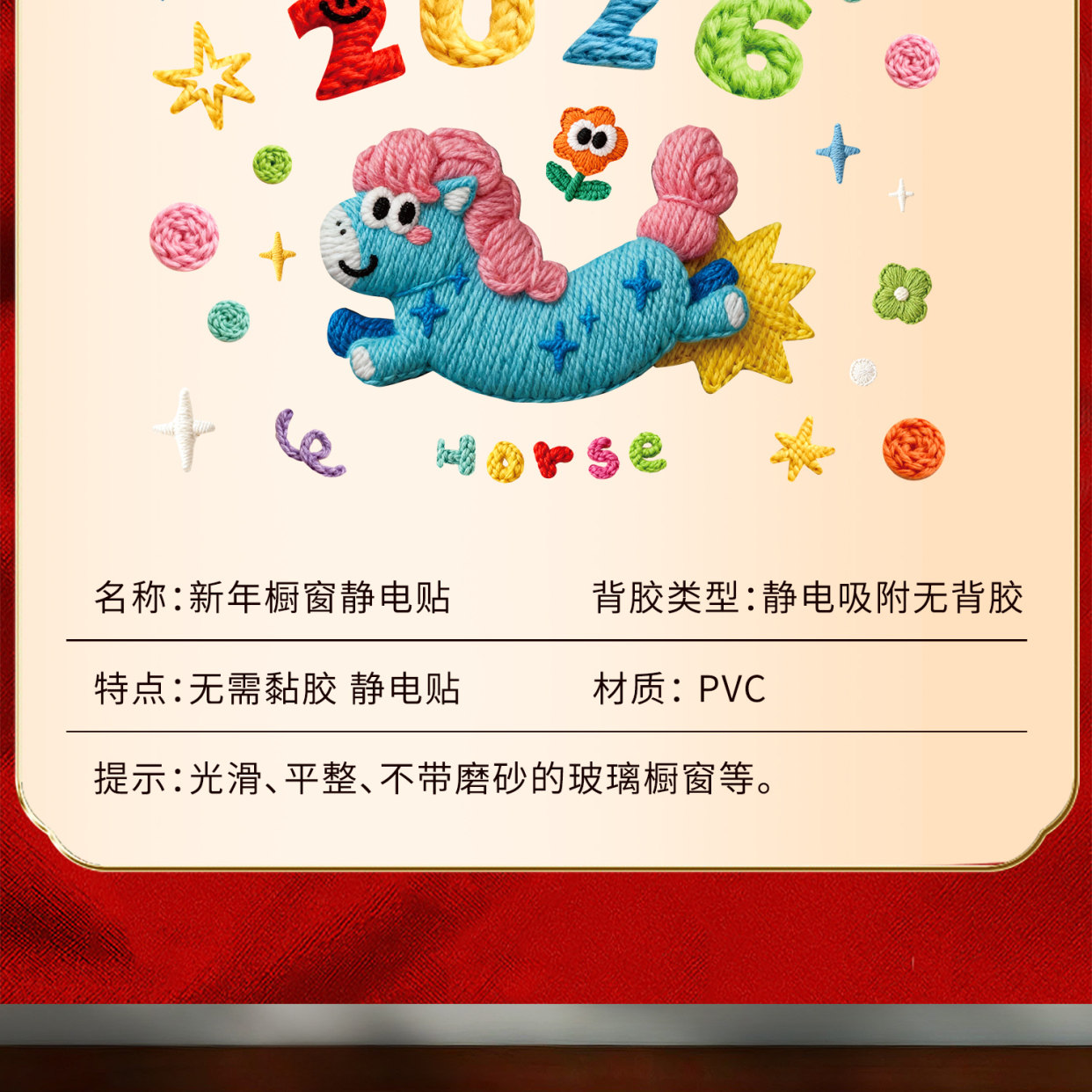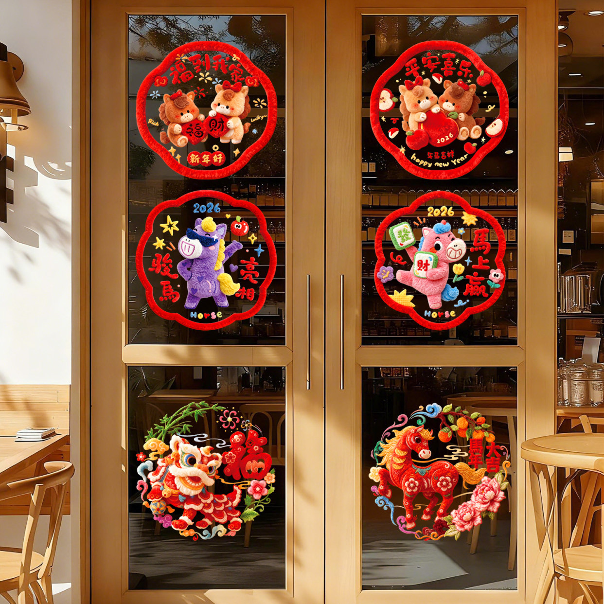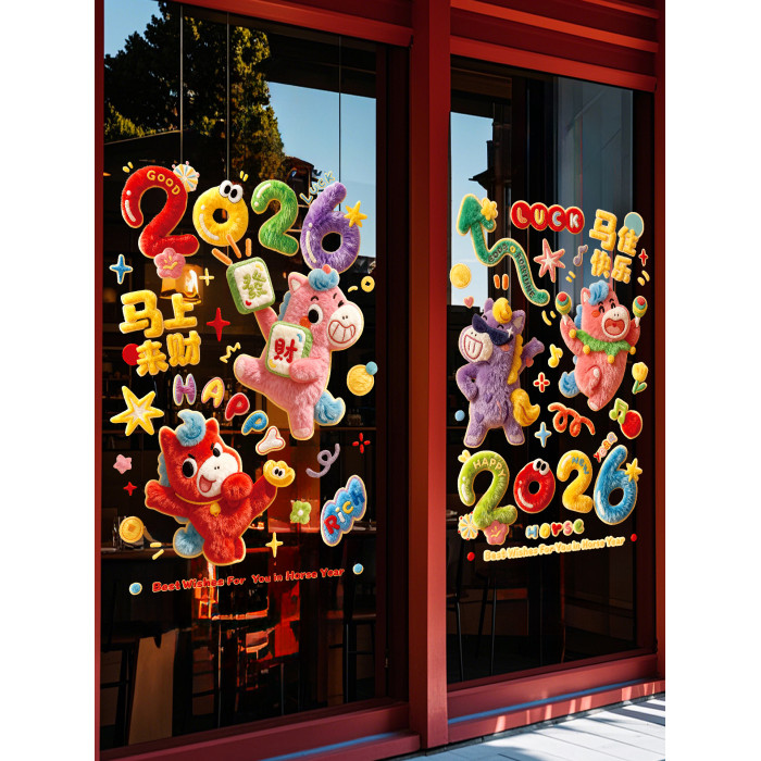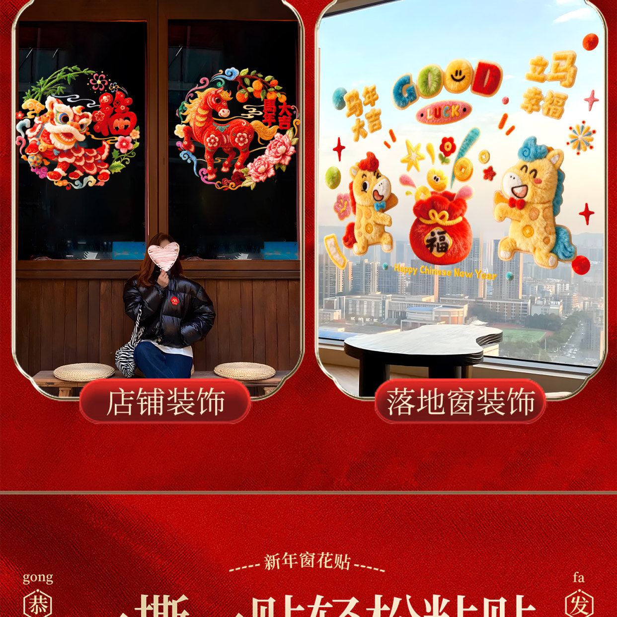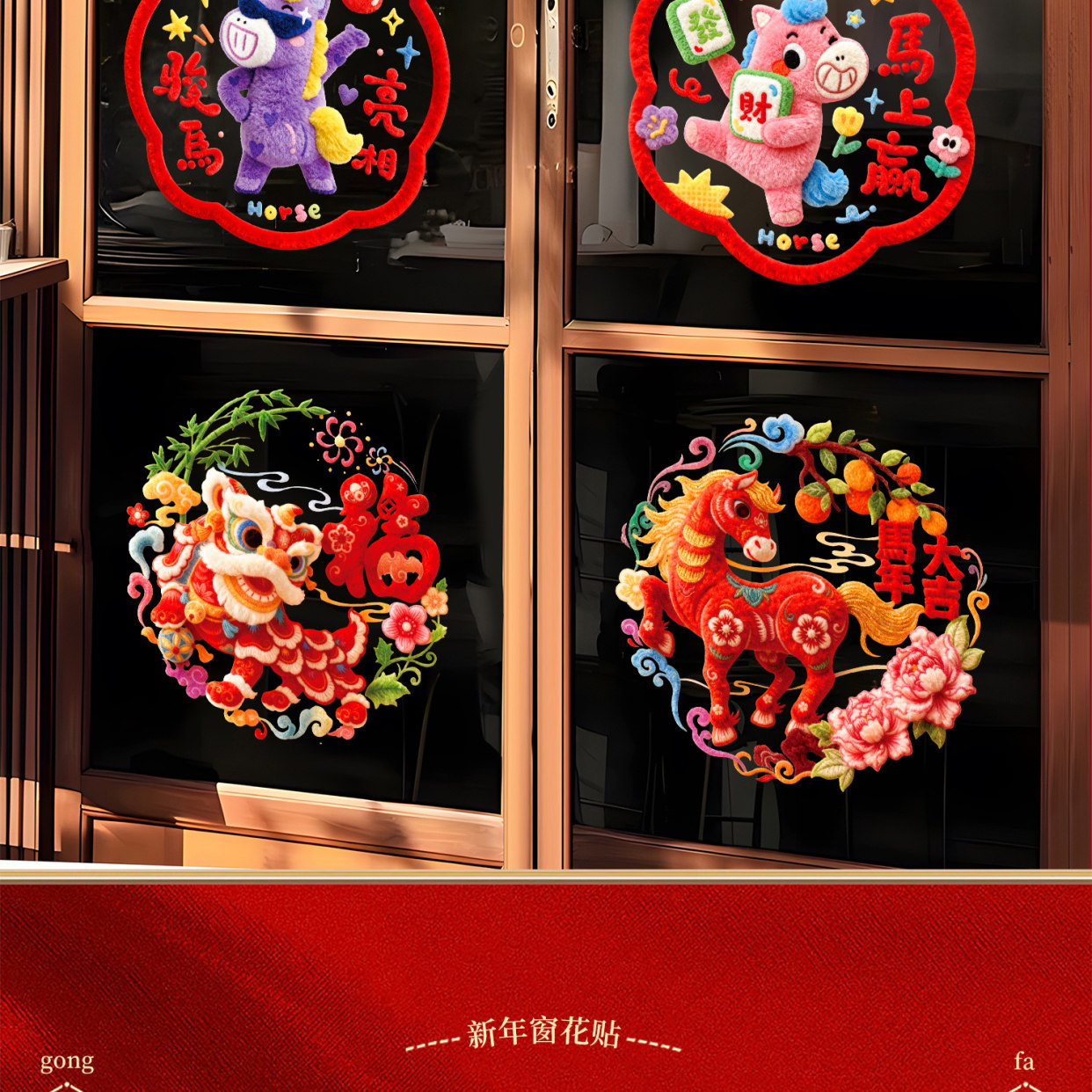 2026新款馬年窗花玻璃門貼紙春節過年櫥窗靜電貼新年場景裝飾