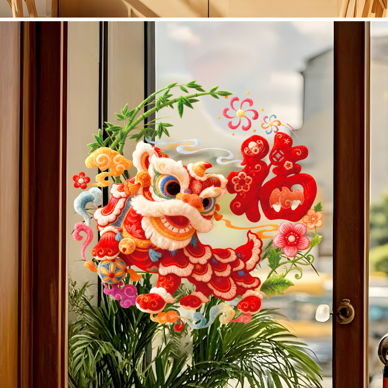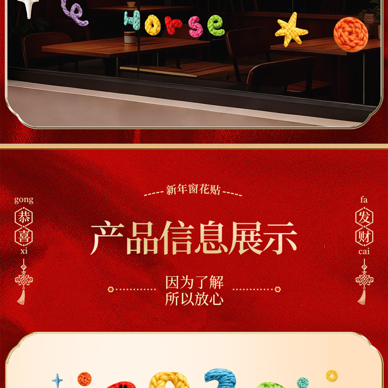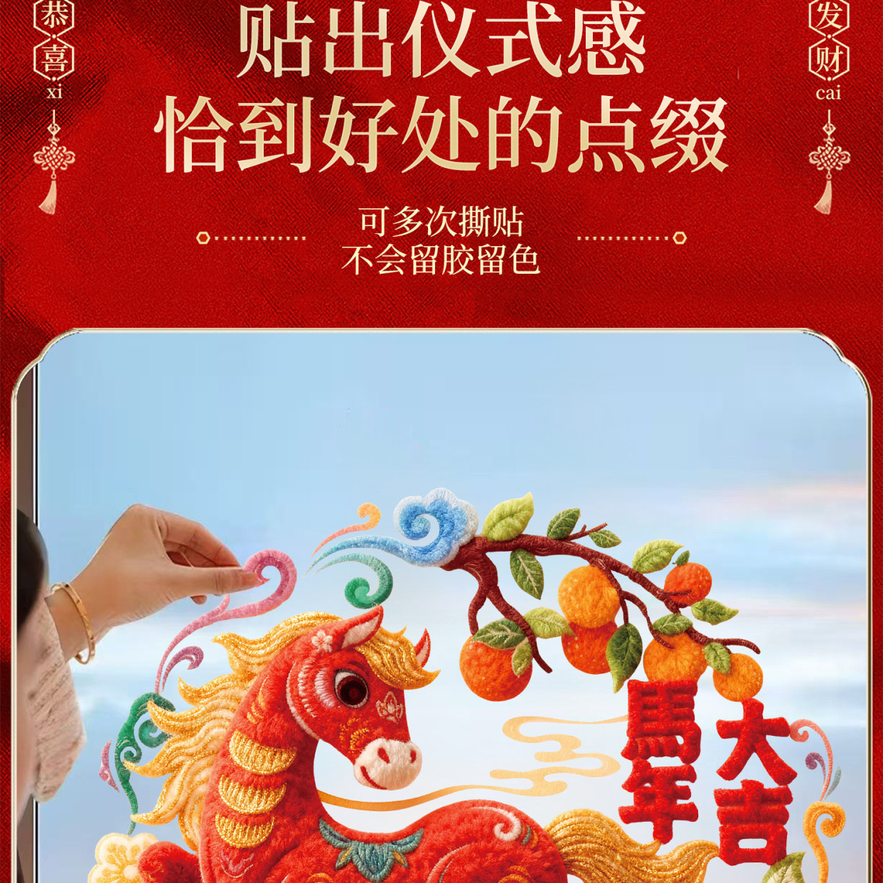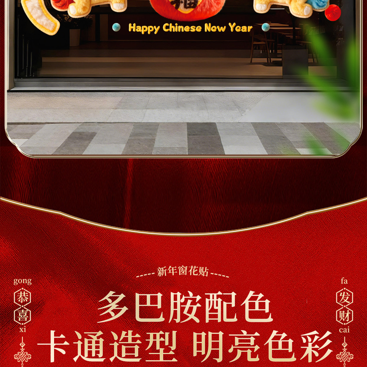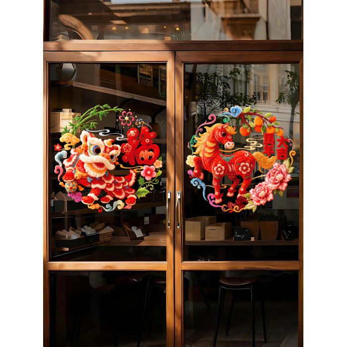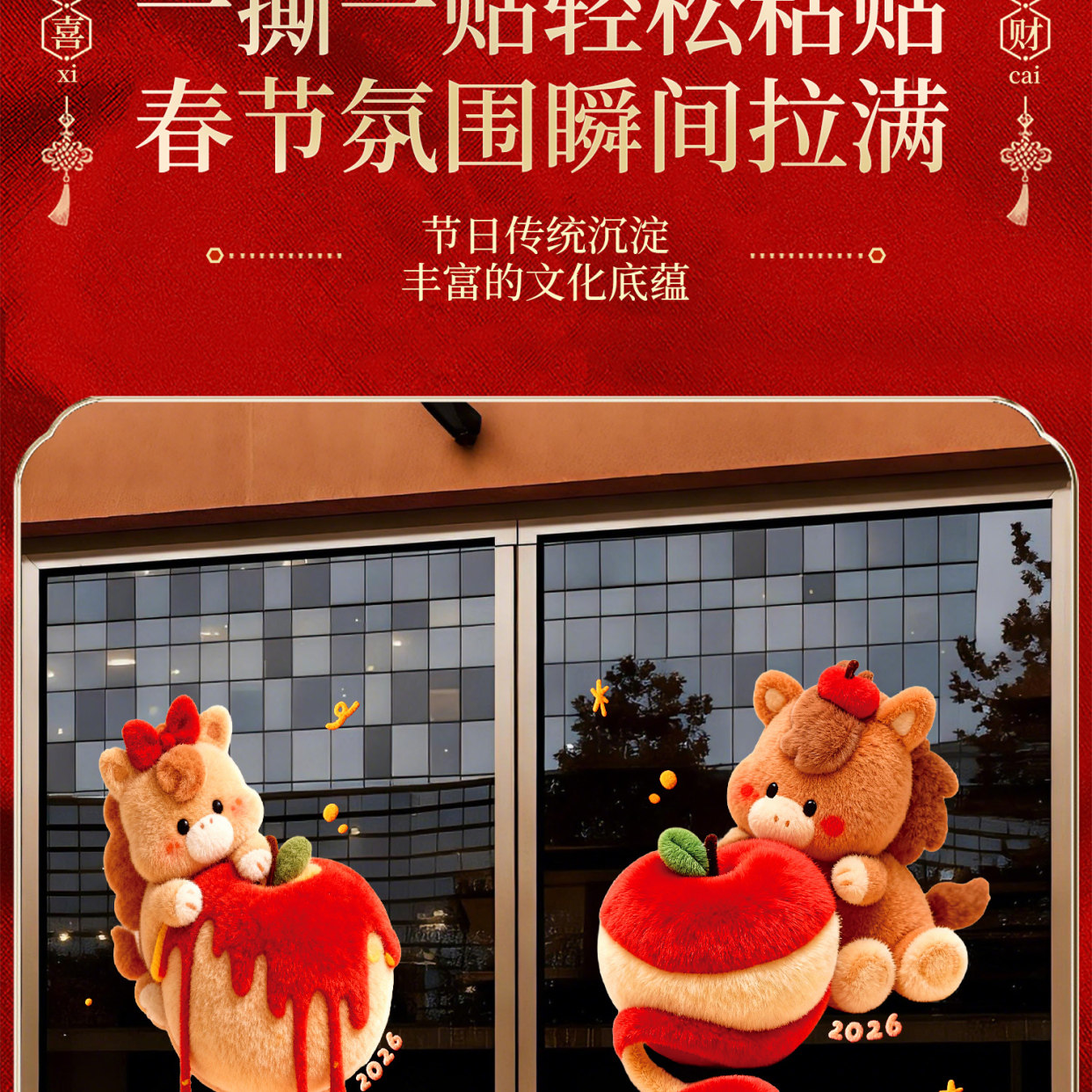 2026新款馬年窗花玻璃門貼紙春節過年櫥窗靜電貼新年場景裝飾