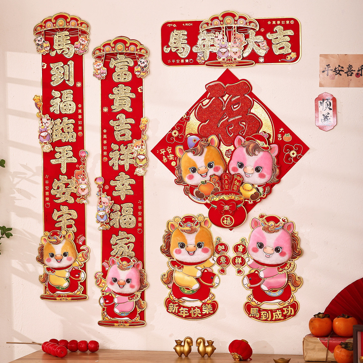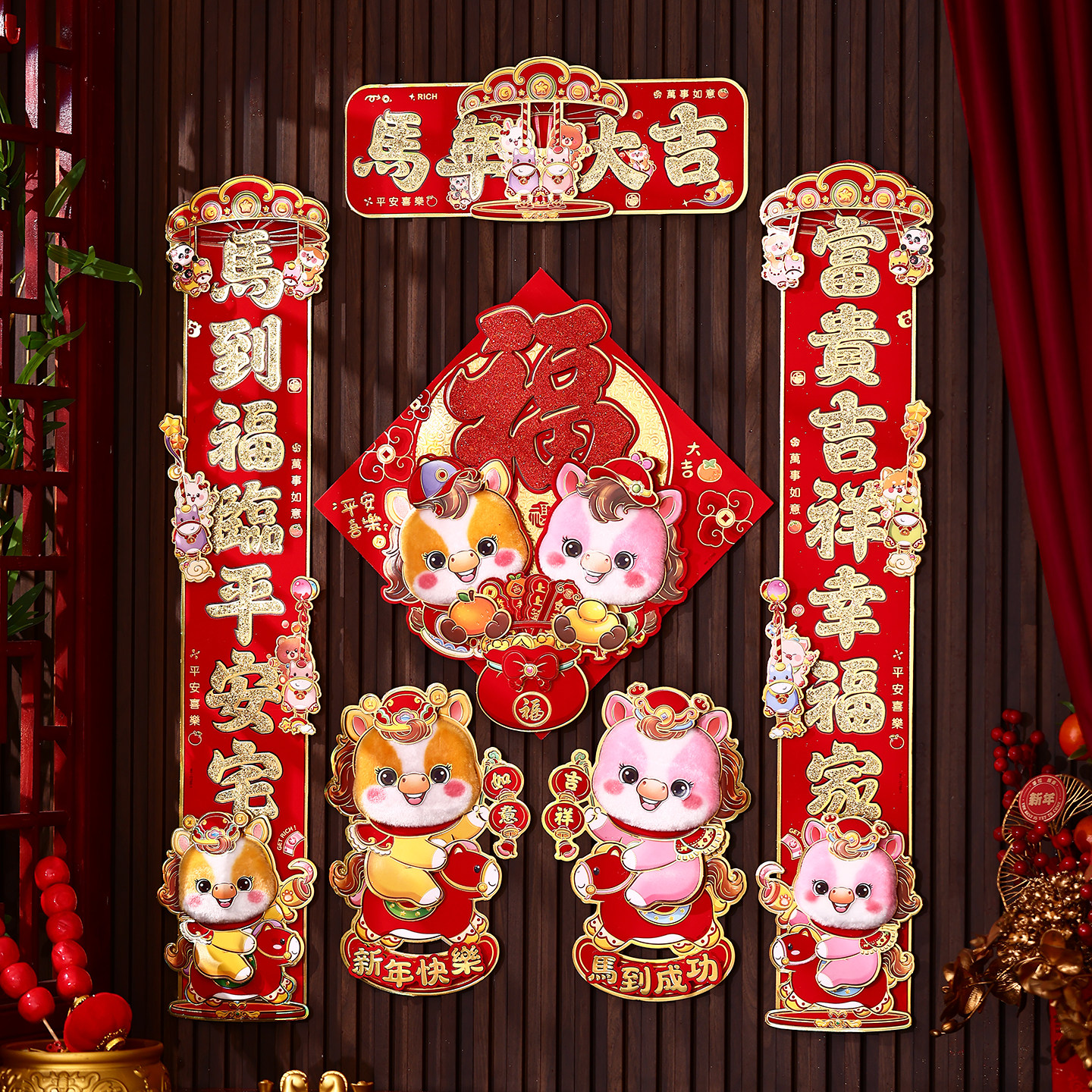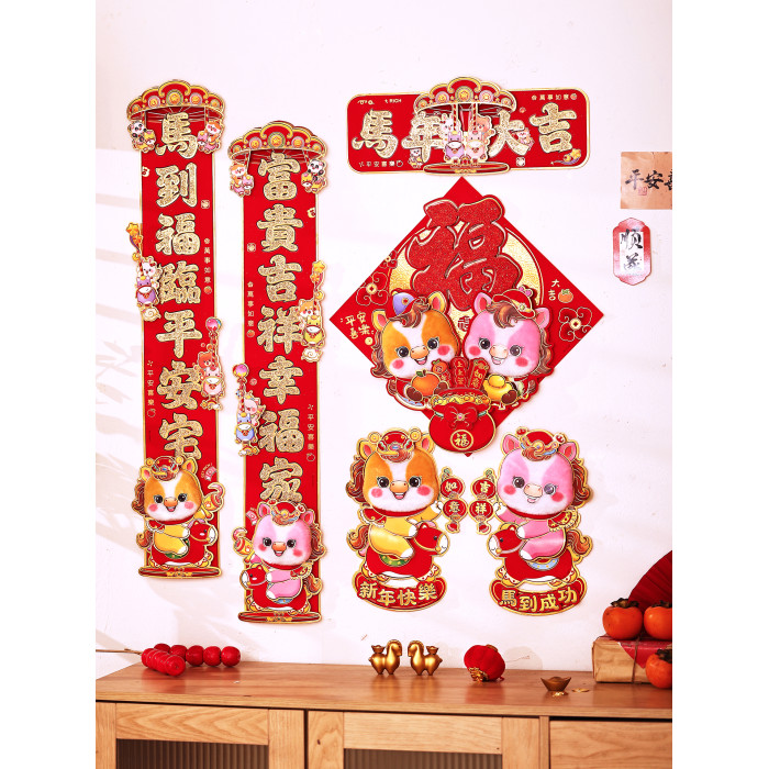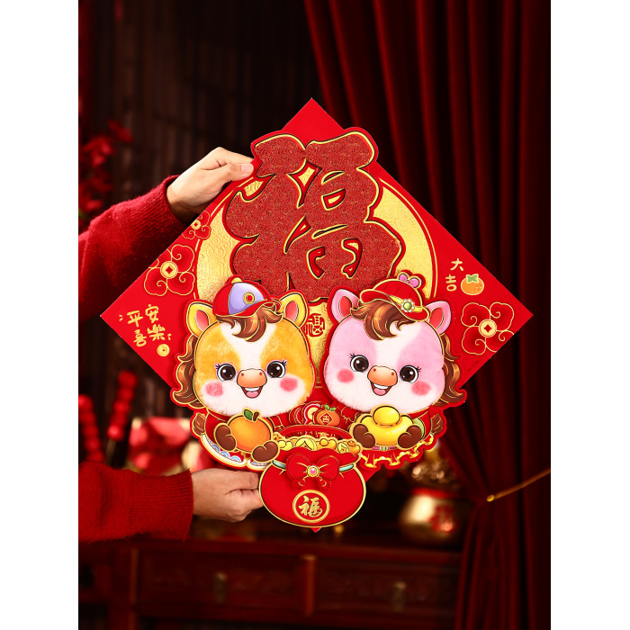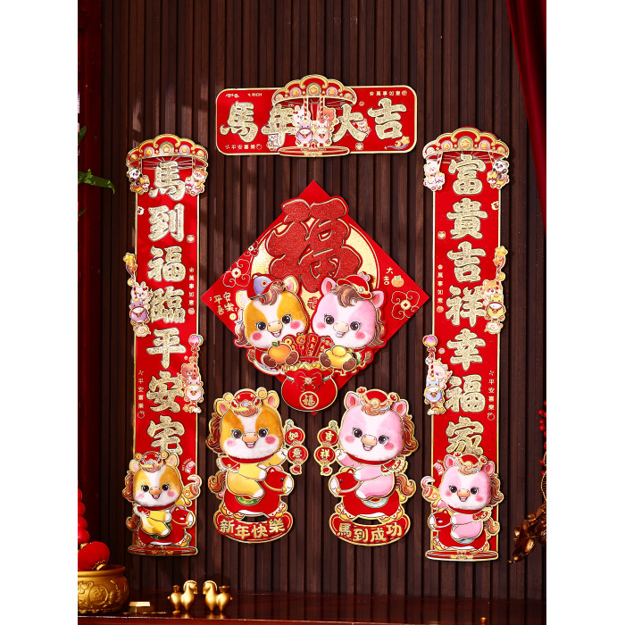 2026年馬年春節對聯春聯新年裝飾布置立體生肖福字門貼大門貼紙