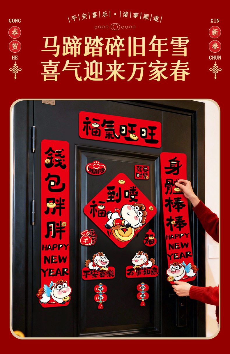2026新款磁吸對聯馬年春聯福字貼過年春節新年門聯入戶門裝飾布置