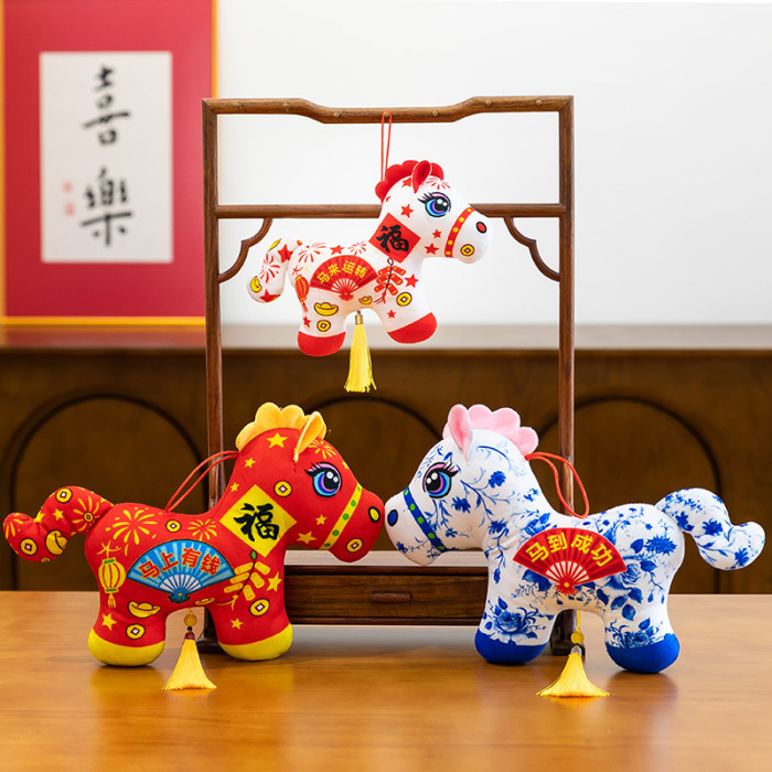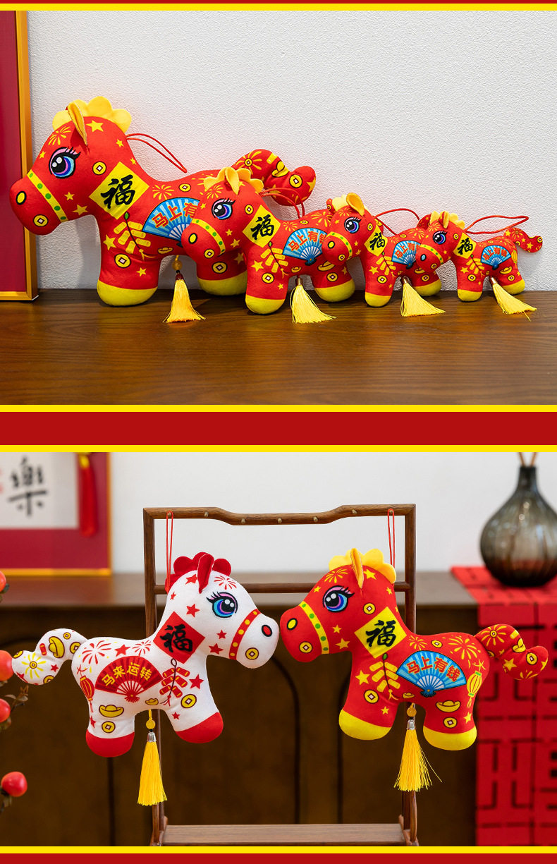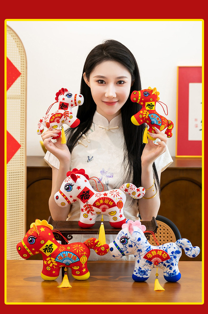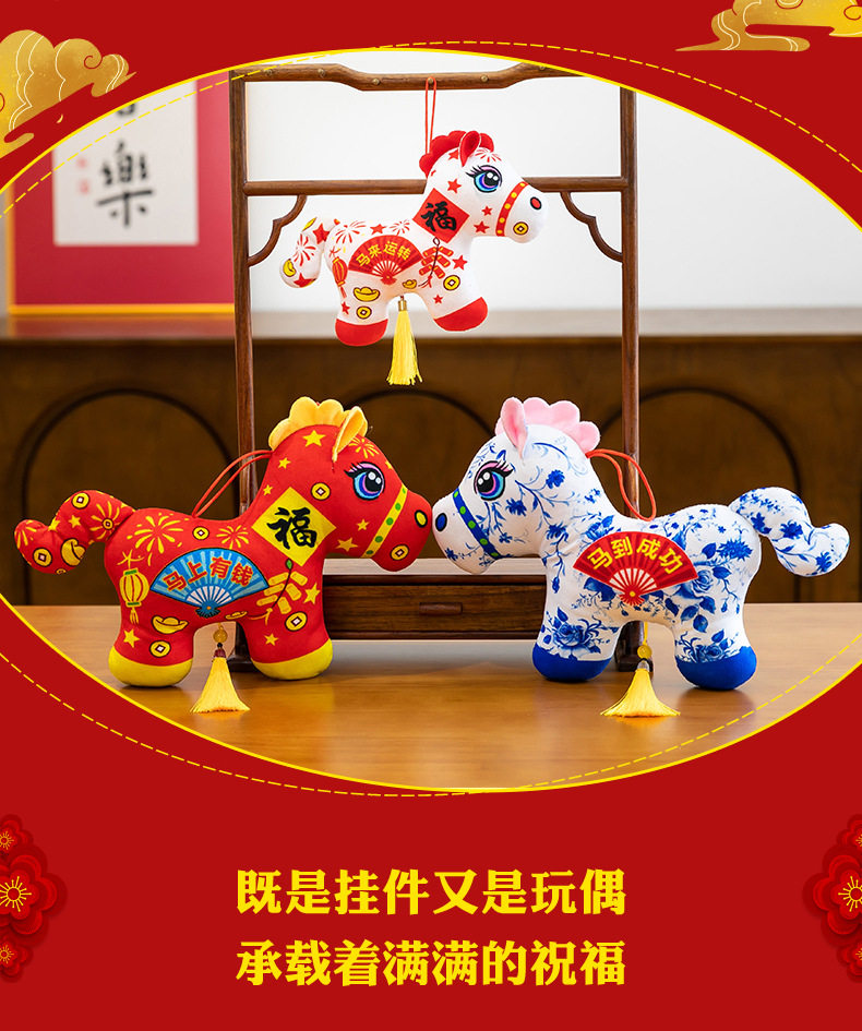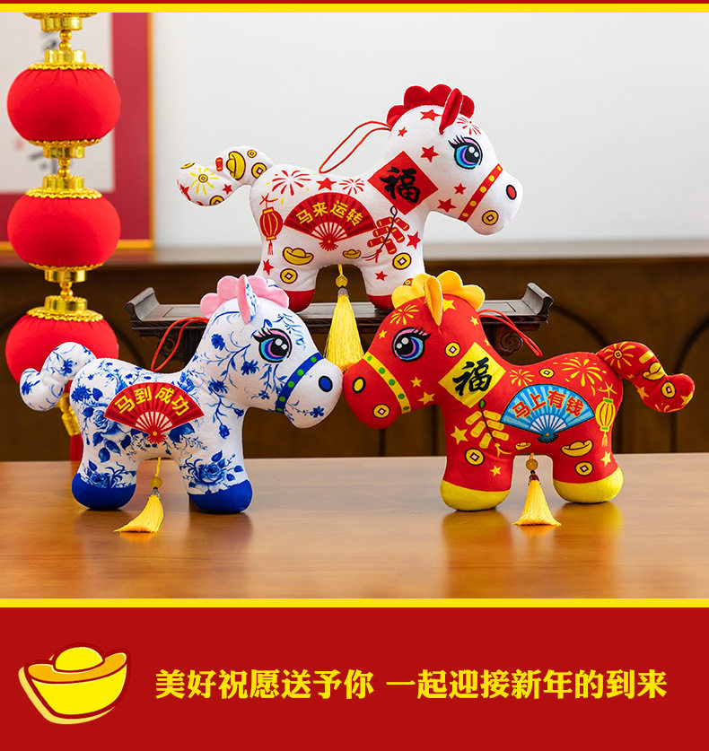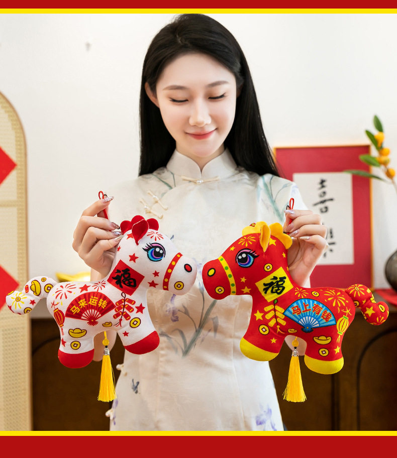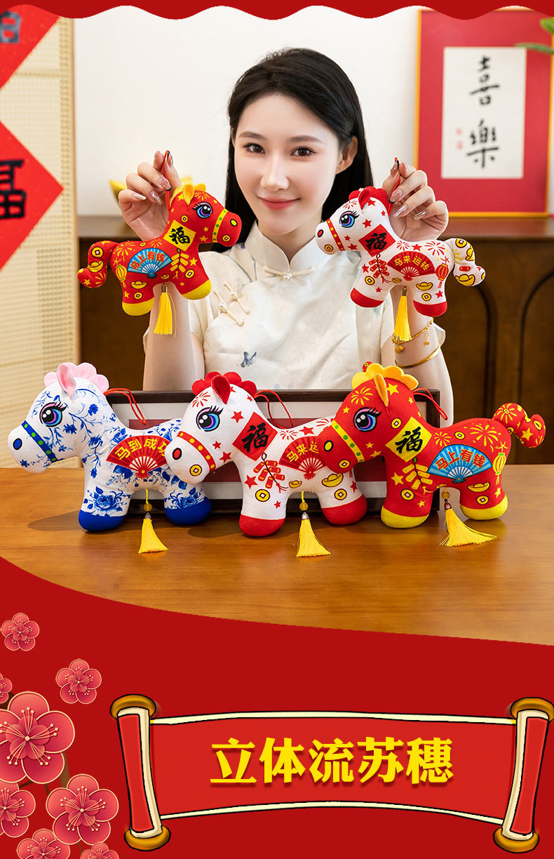 2026馬年吉祥物毛絨玩具生肖剪紙小馬公仔玩偶年會活動開門紅擺件