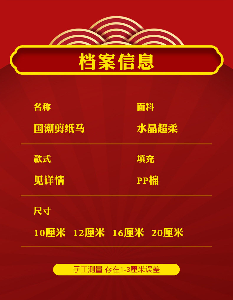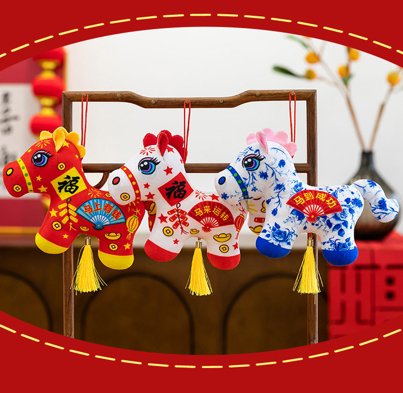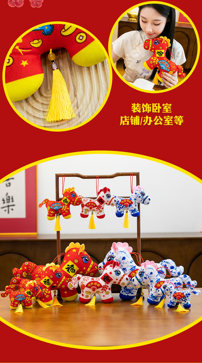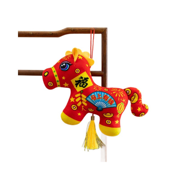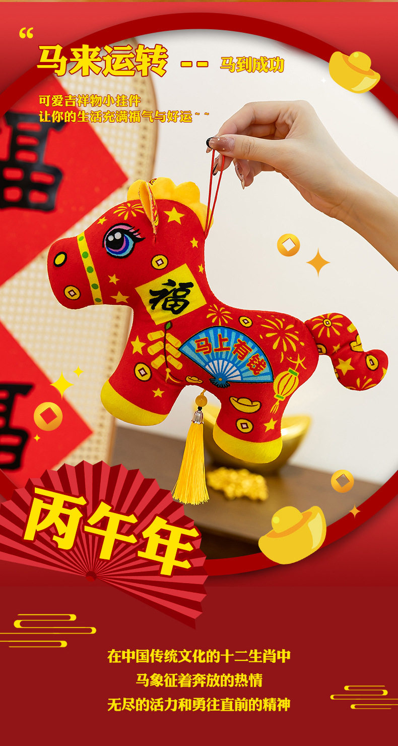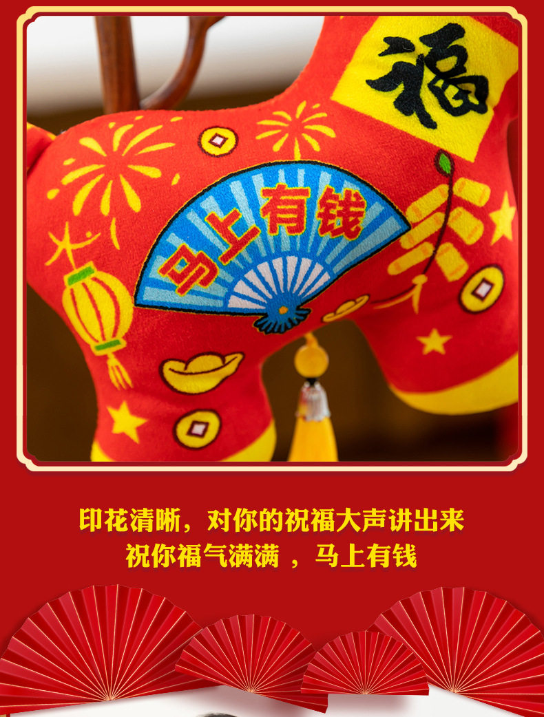 2026馬年吉祥物毛絨玩具生肖剪紙小馬公仔玩偶年會活動開門紅擺件