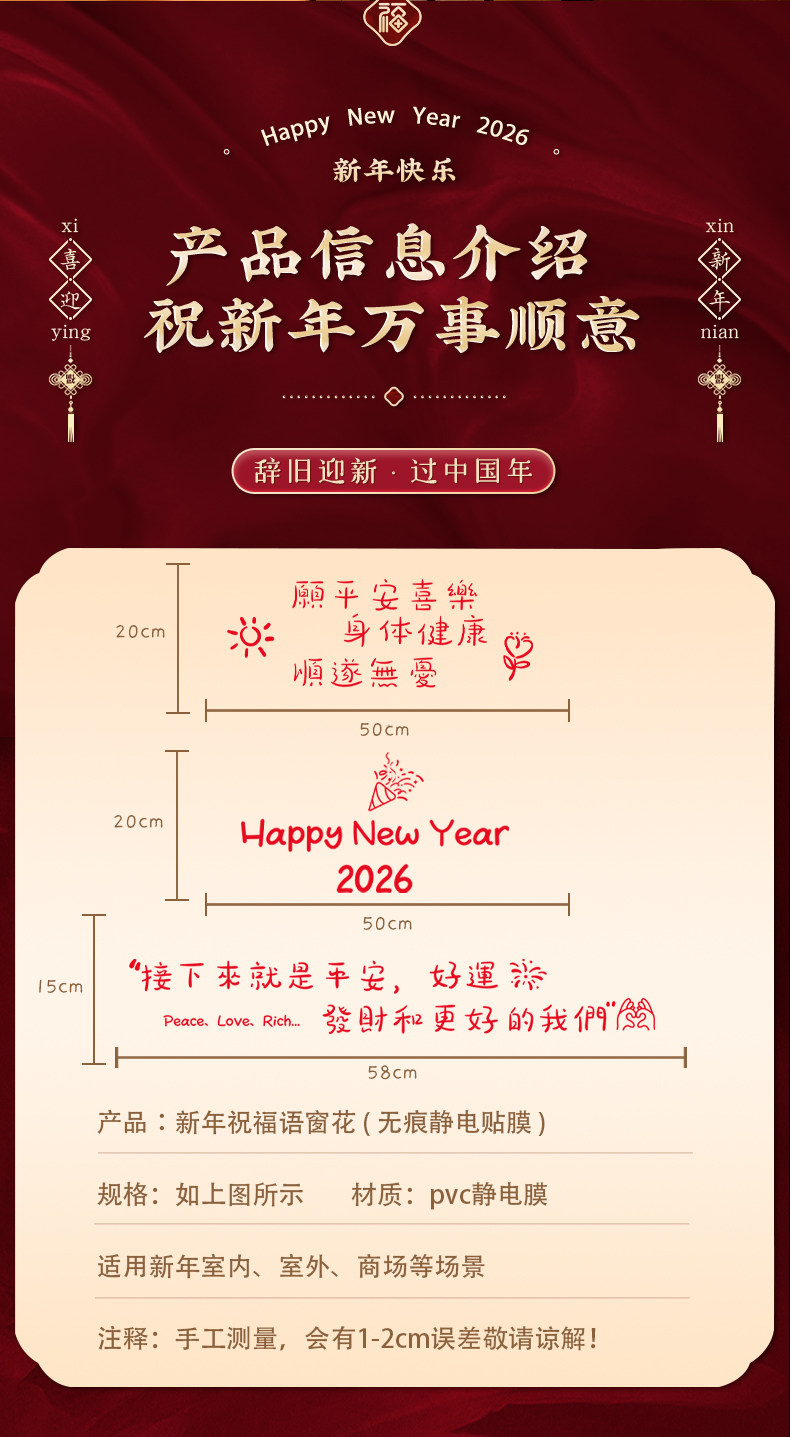 新款過年窗花福字門貼靜電玻璃貼2026新年裝飾品馬年春節氛圍貼紙