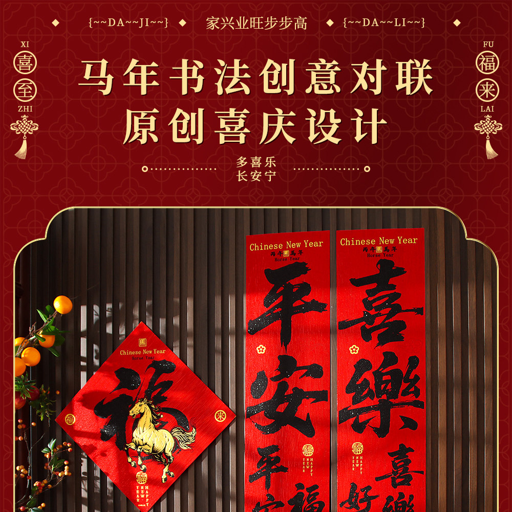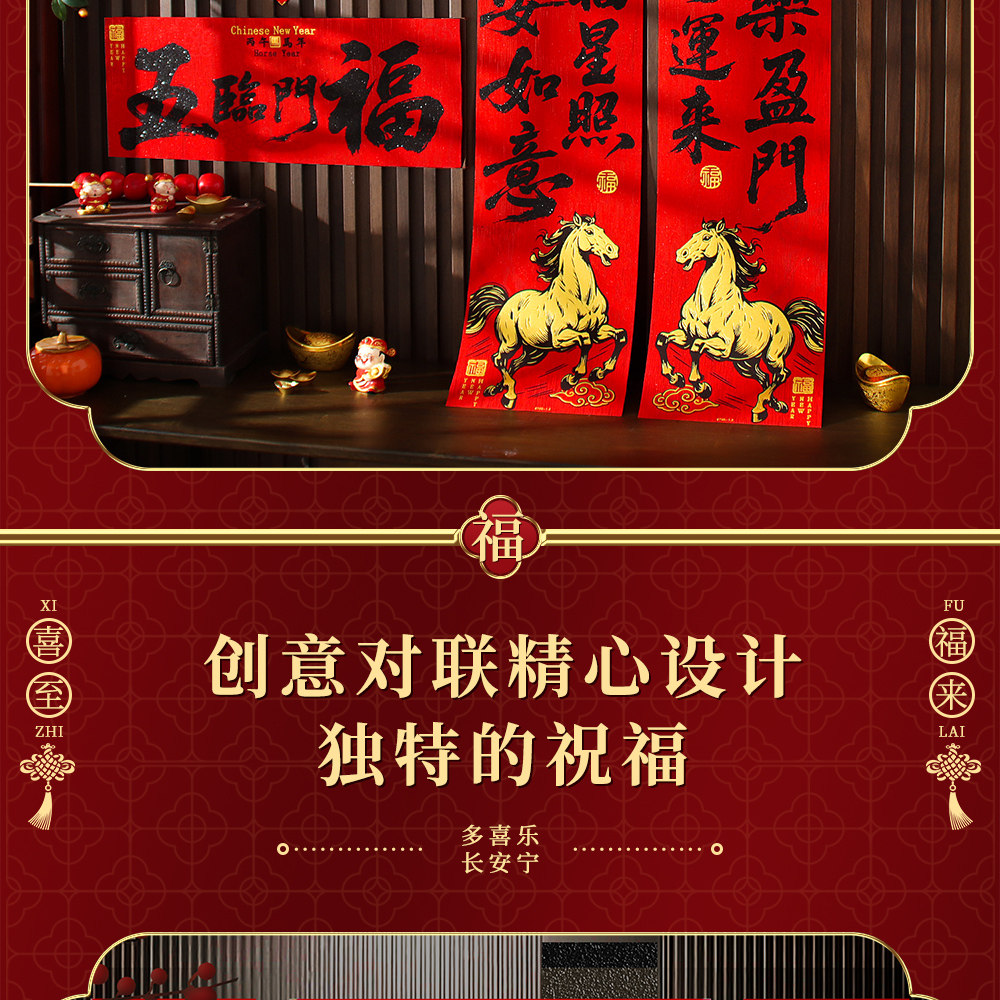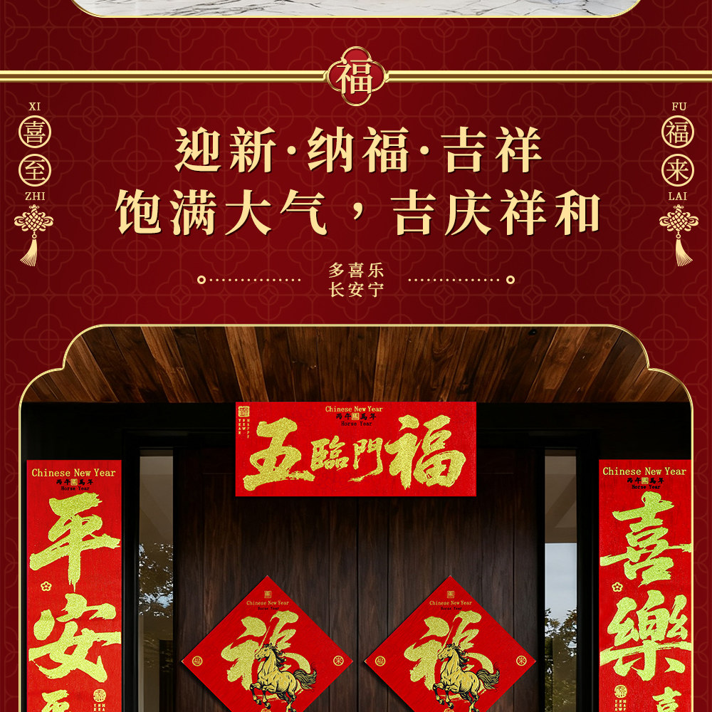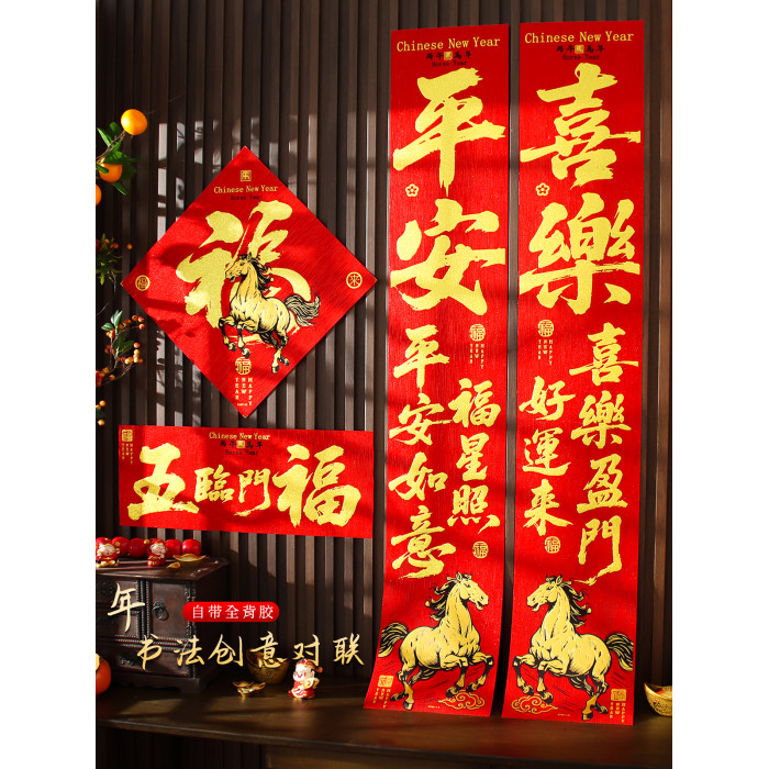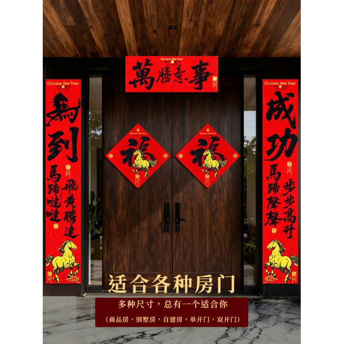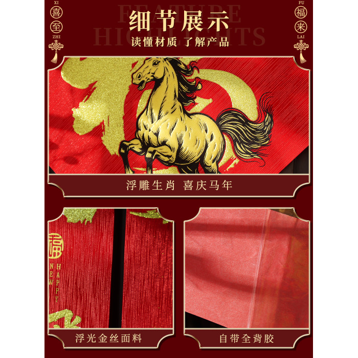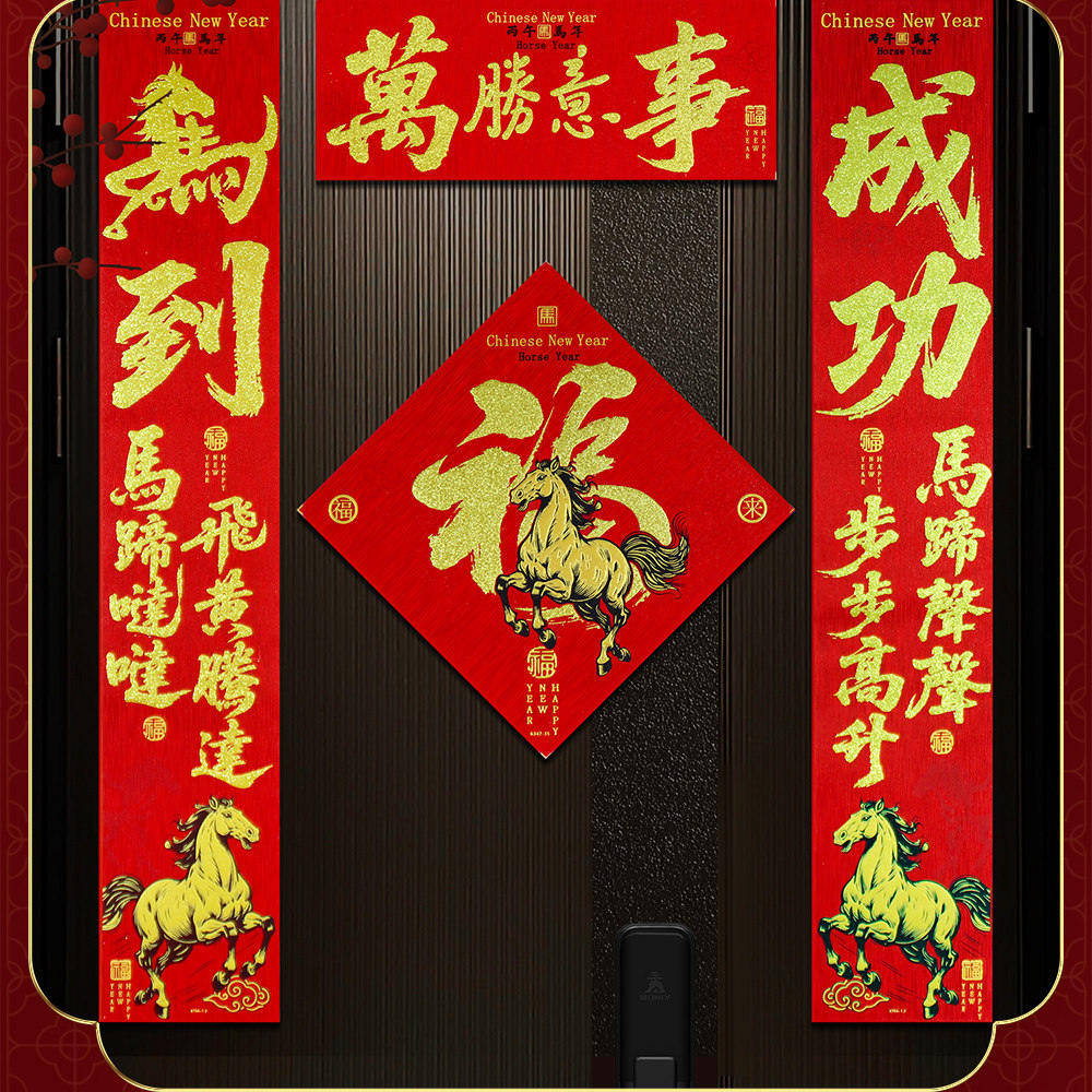 絨布對聯2026馬年新款創意過年入戶大門裝飾布置高檔絨布背膠門聯