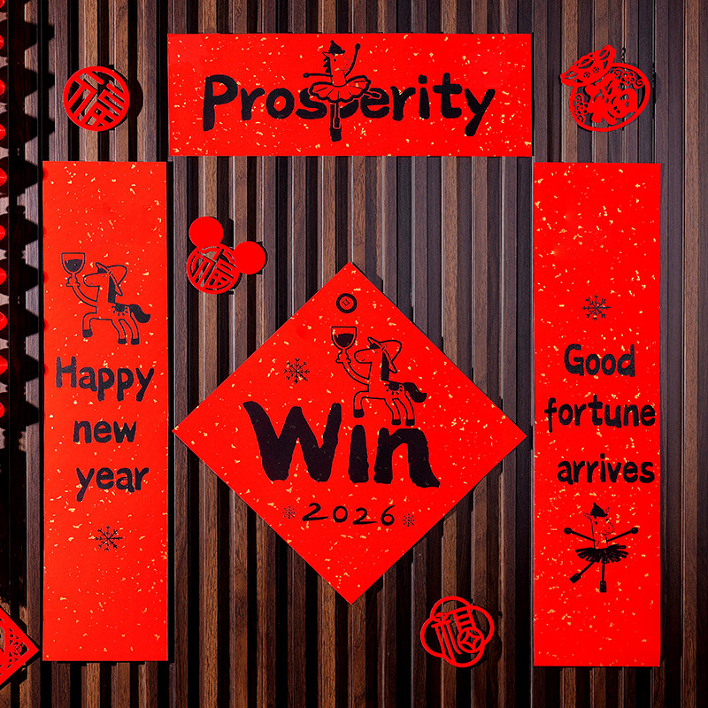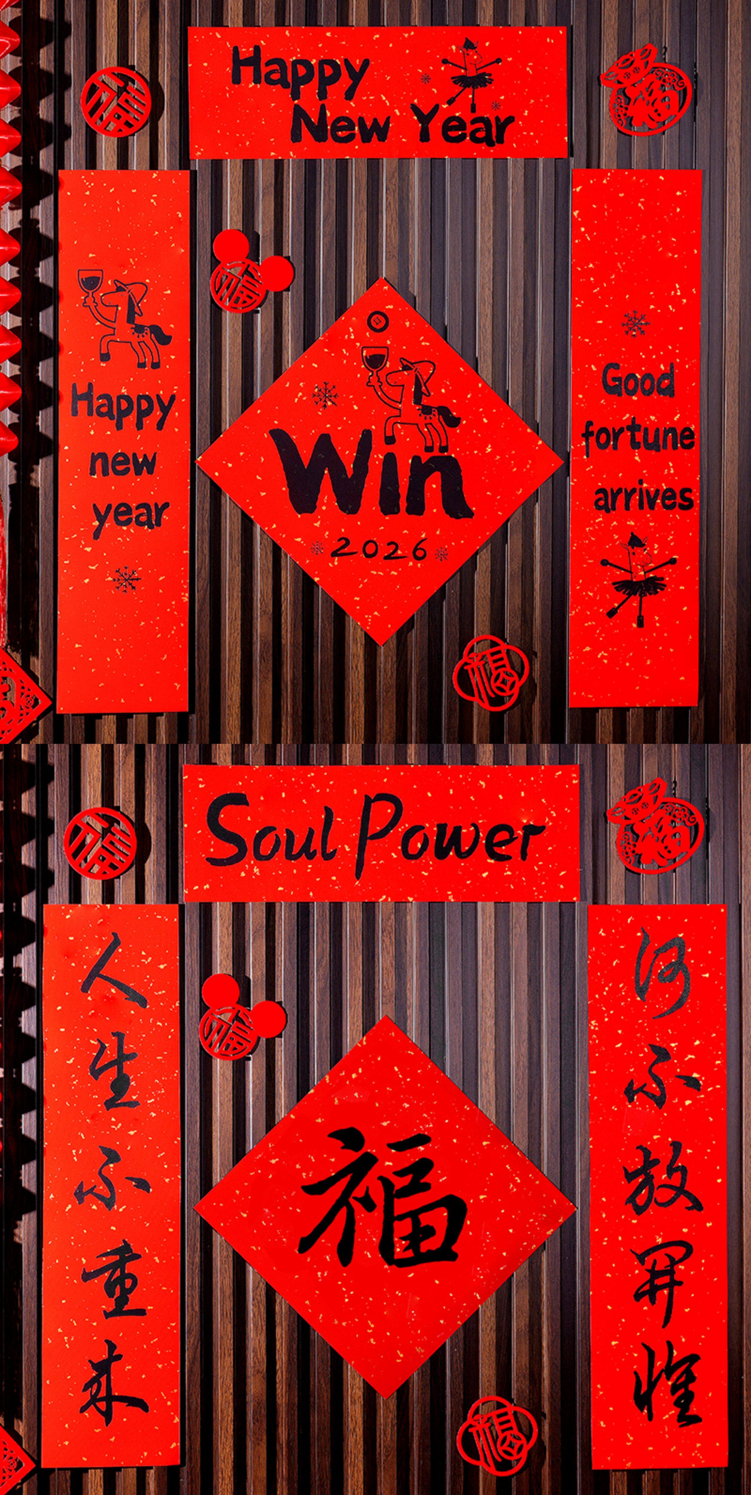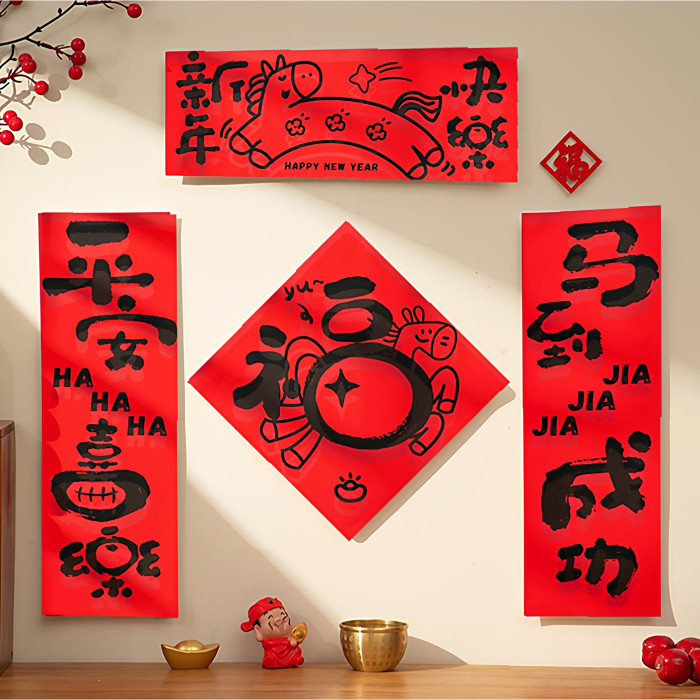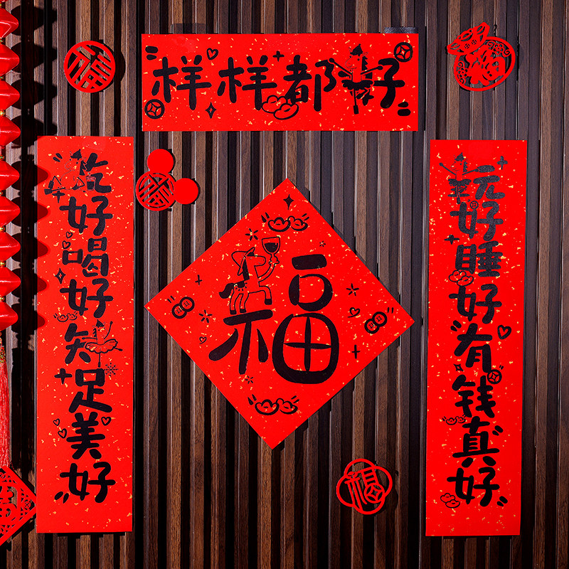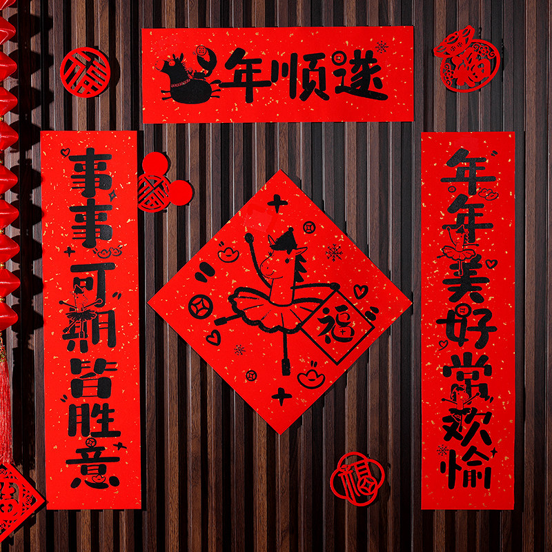 2026新馬年福字對聯入戶門貼裝飾道具新年元旦小紅書同款氛圍布置