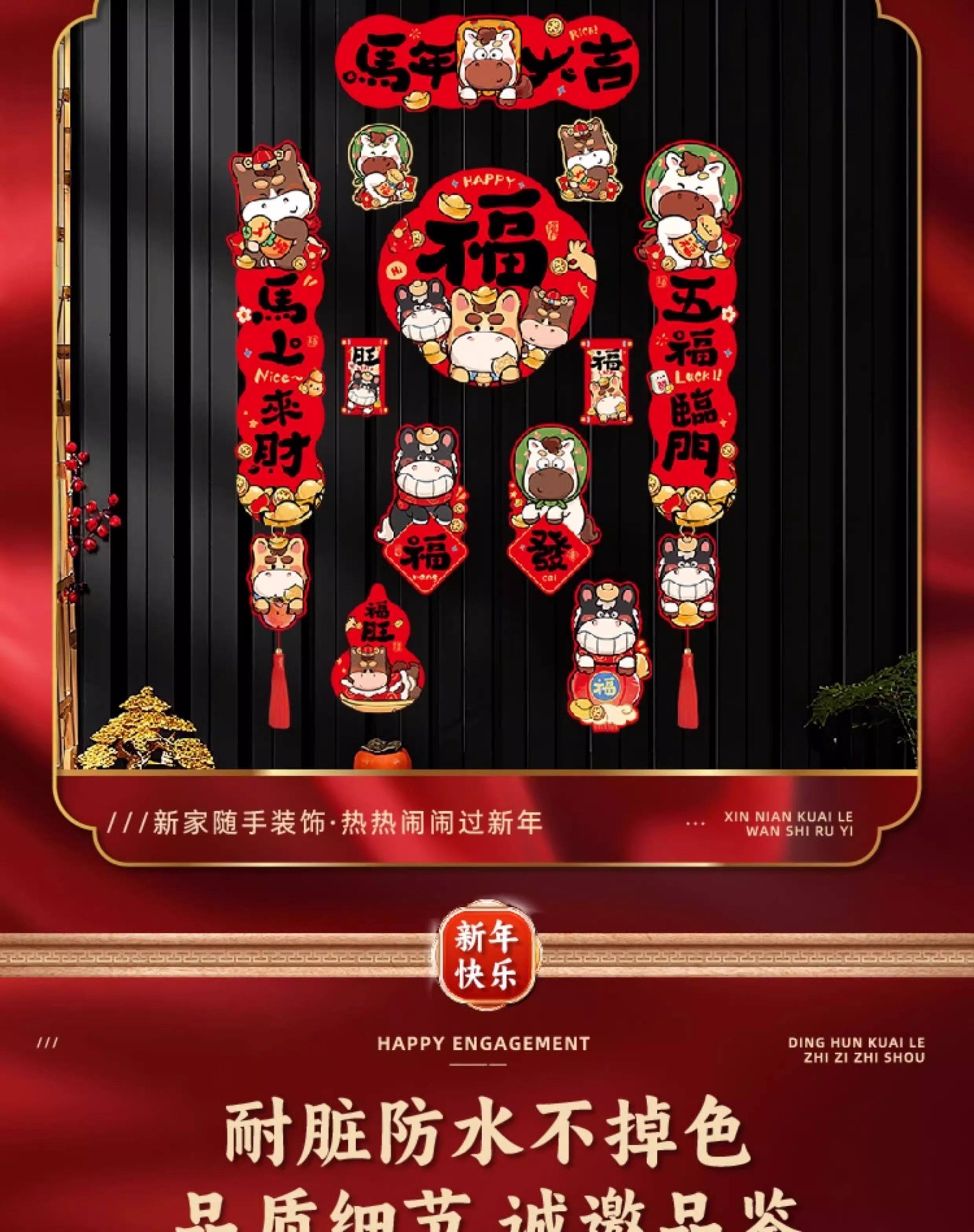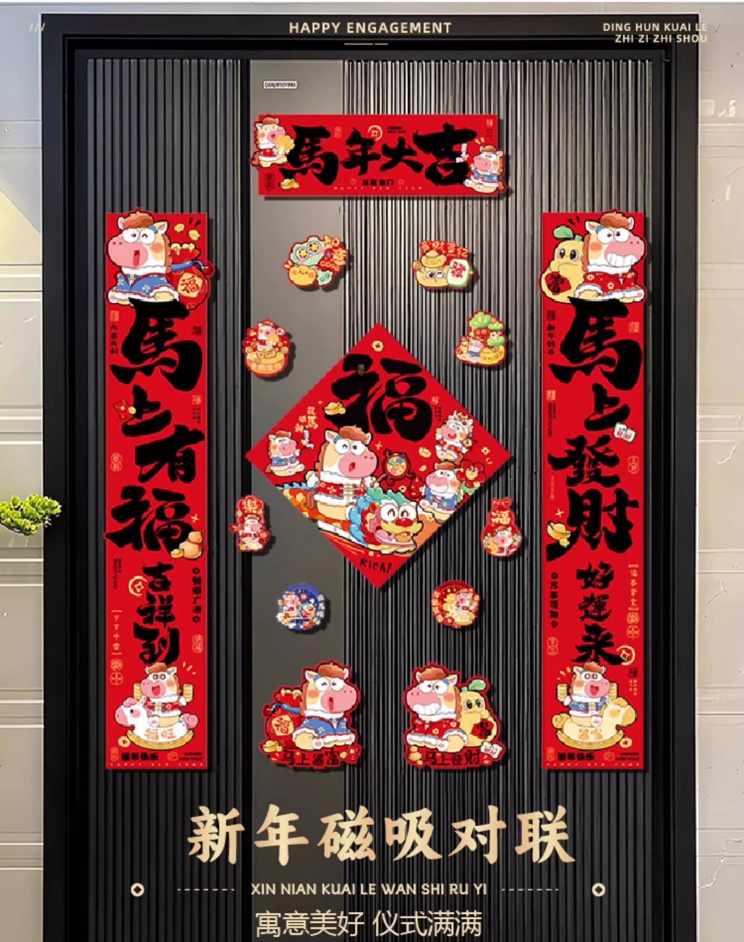 2026馬年新款磁吸對聯生肖春聯福字貼過新年氛圍裝飾春節布置門貼
